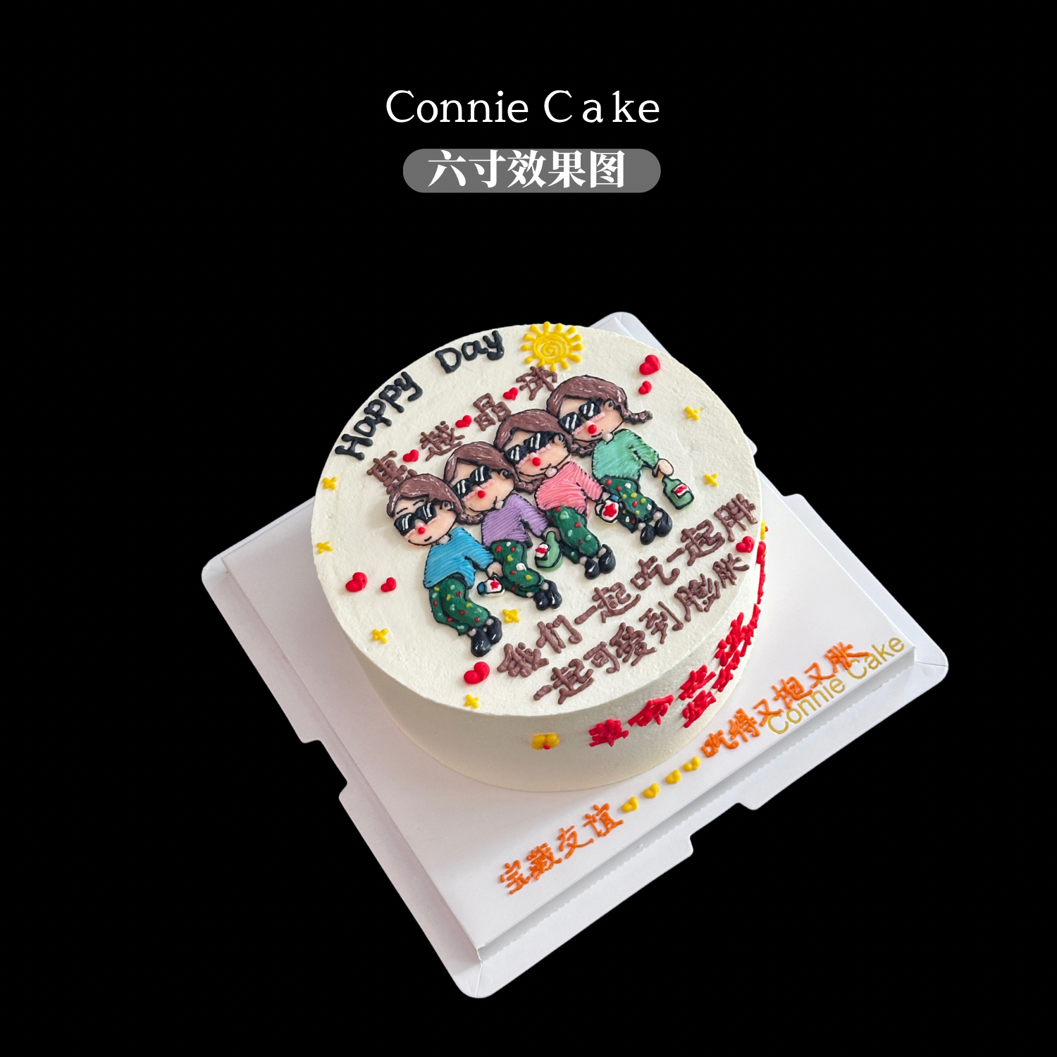 “闺蜜膨胀”手绘纪念蛋糕