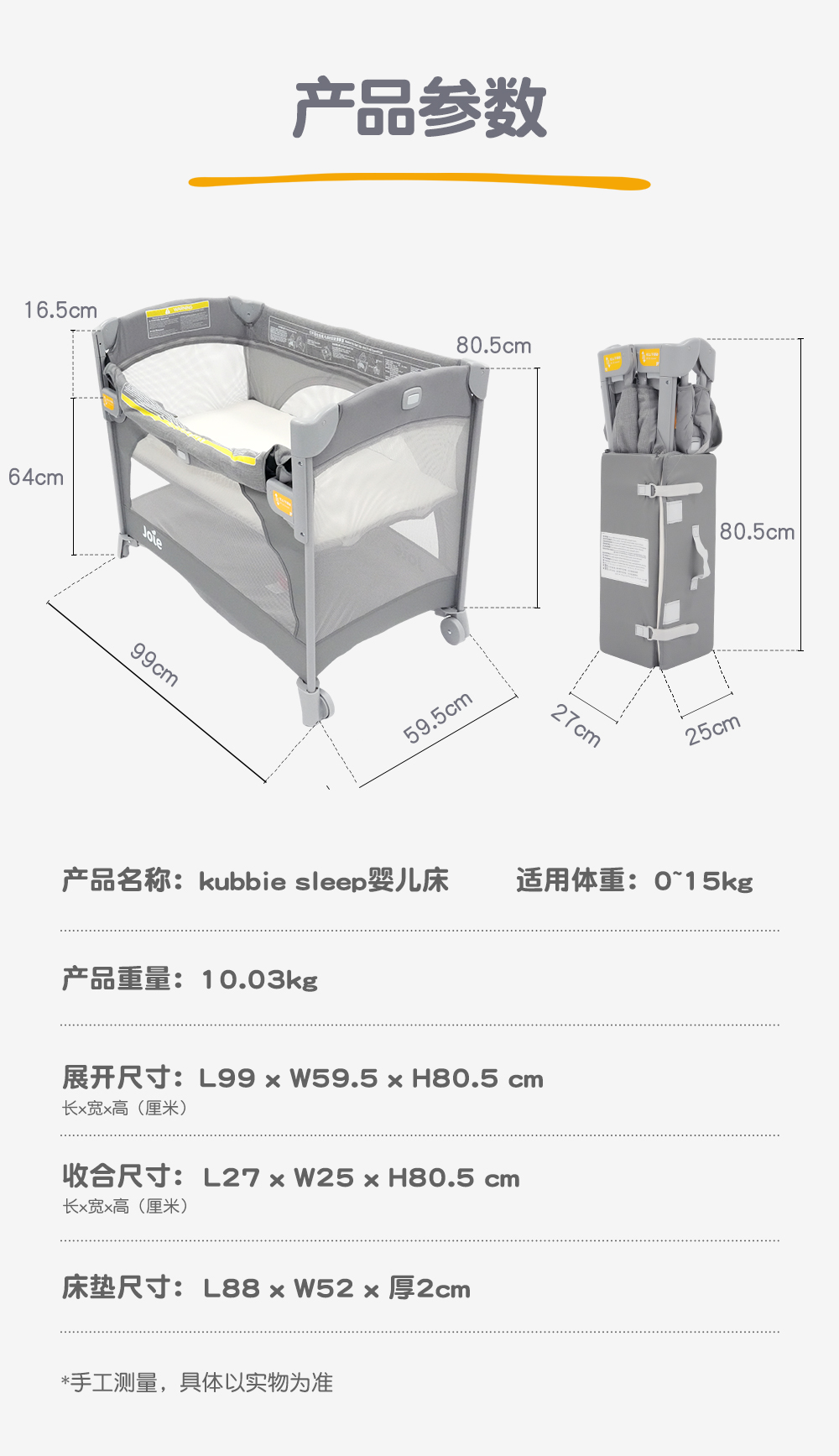 joie巧儿宜婴儿床可移动折叠便携式宝宝床边床kubbie sleep