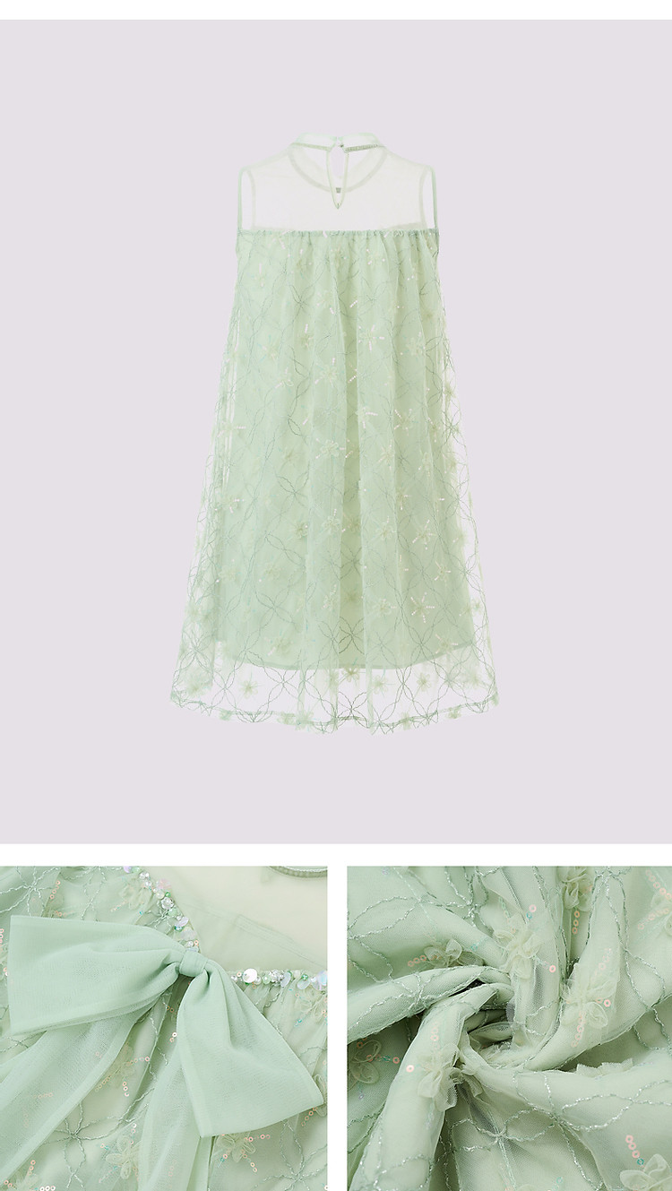 薄荷绿网纱仙美娃娃连衣裙(货号:MS85DR065G1001)