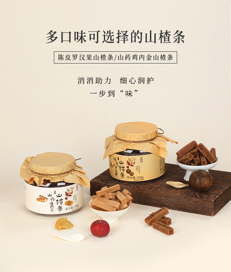 正安 陈皮罗汉果/山药鸡内金山楂条 酸甜开胃 饭后可吃 原果打浆 健康零食 250g/罐