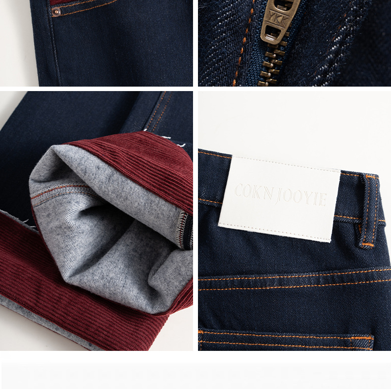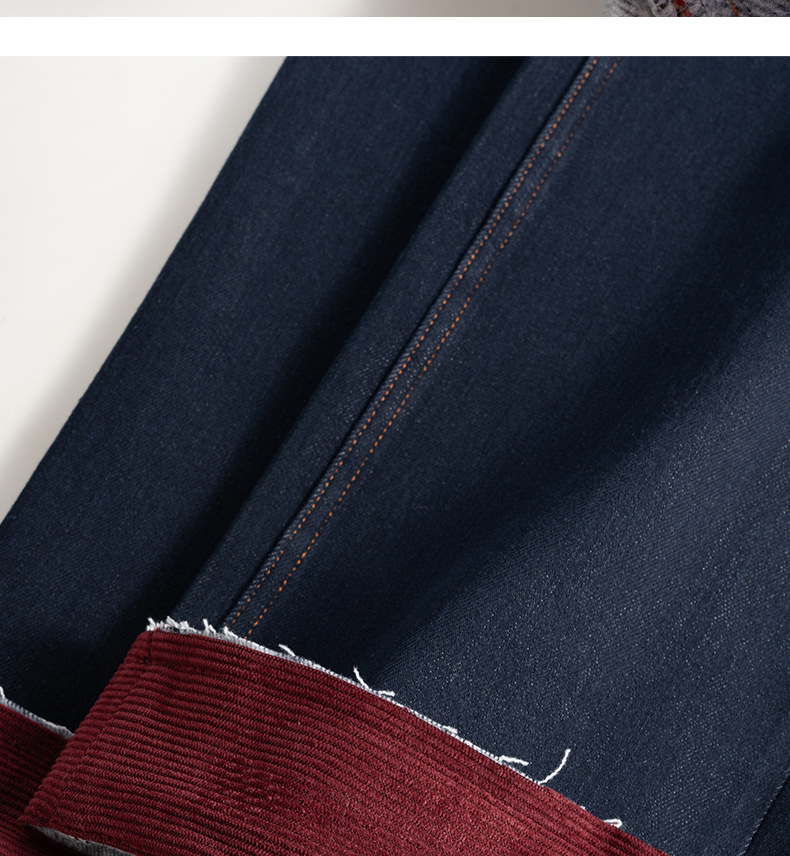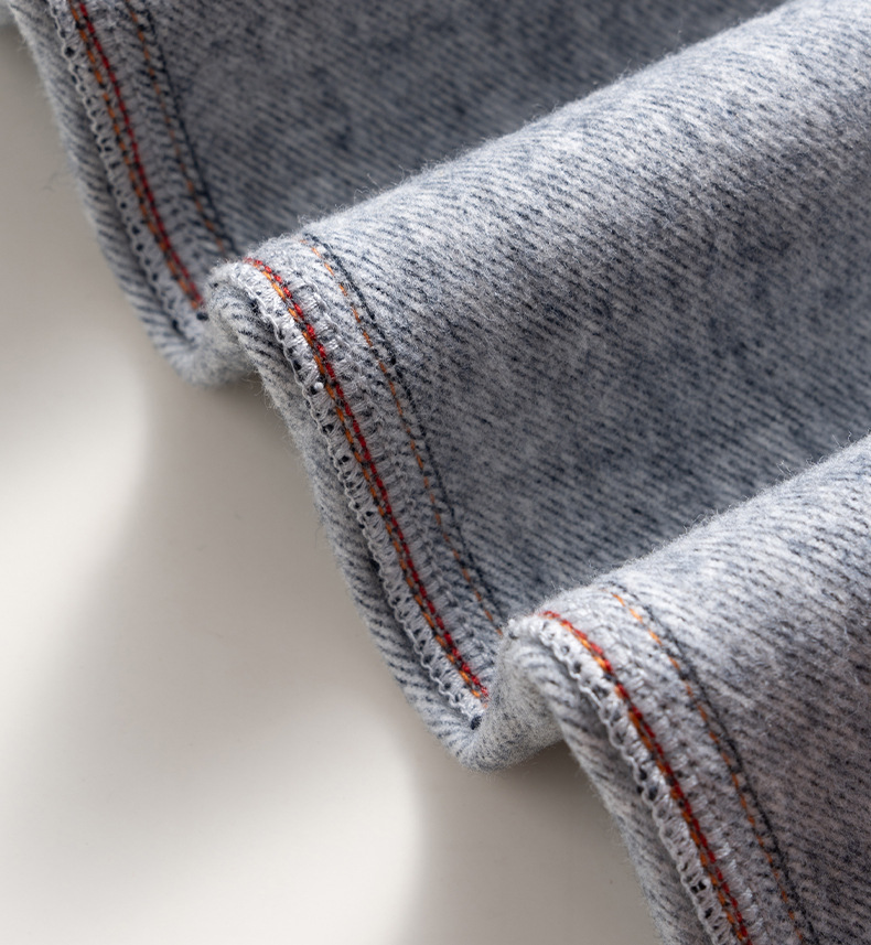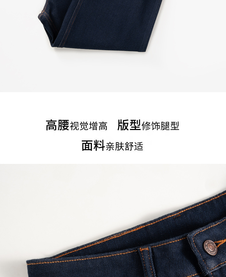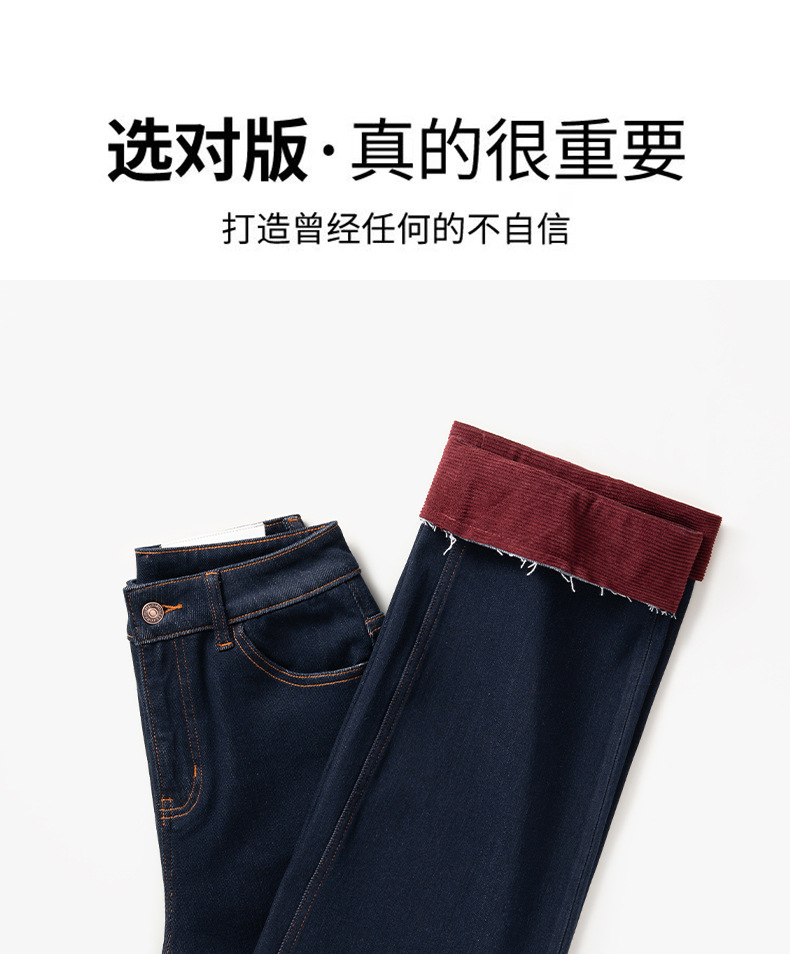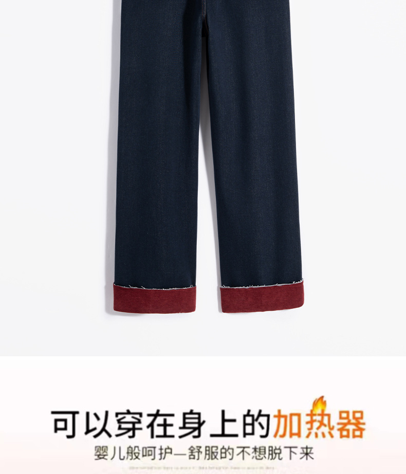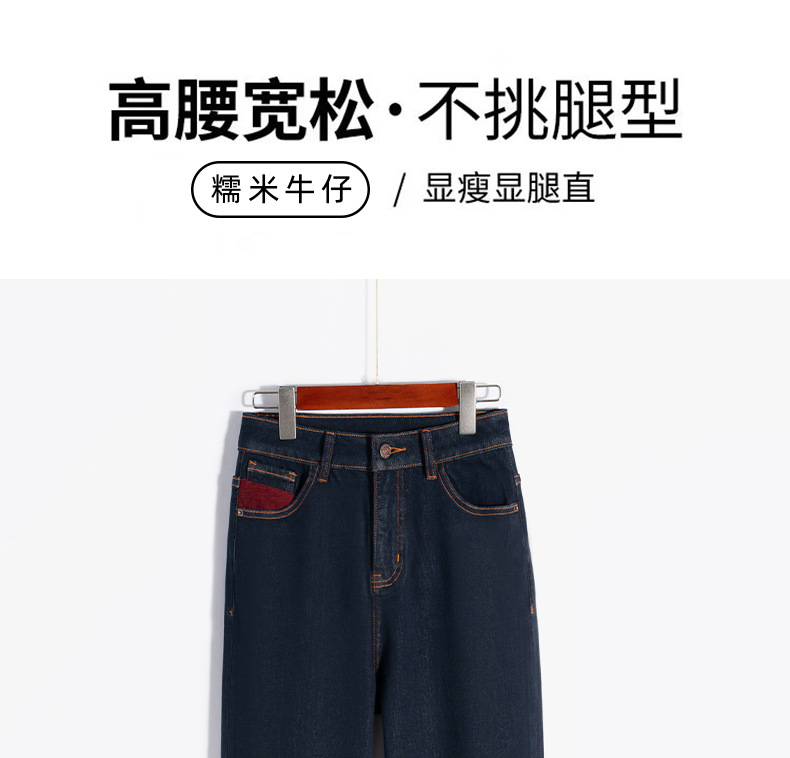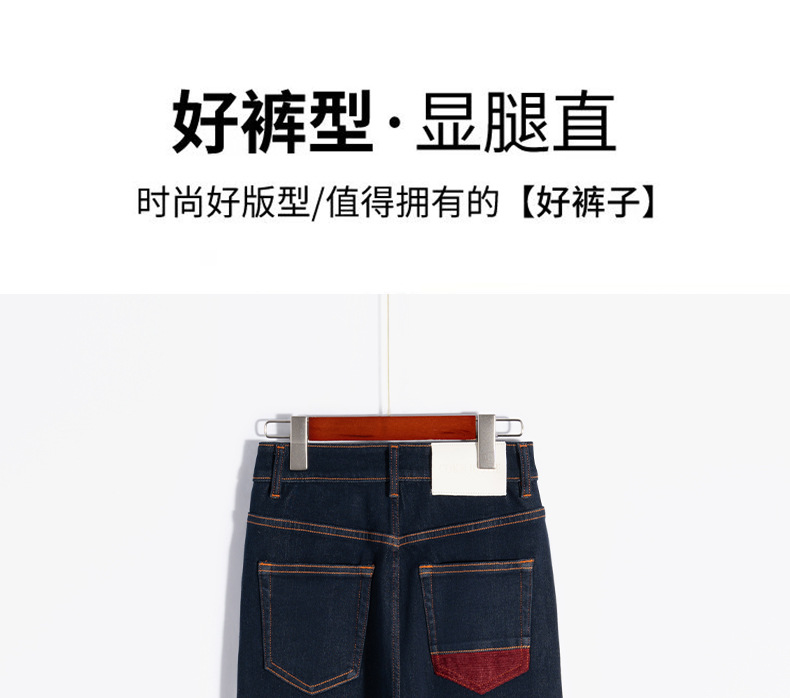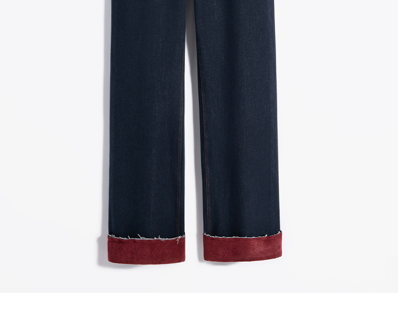 【自】全新升级【铂金会员183/天猫239/差价56】(13159) 洛诗琳撞色加绒直筒牛仔裤2024秋冬显瘦小个子窄版阔腿裤