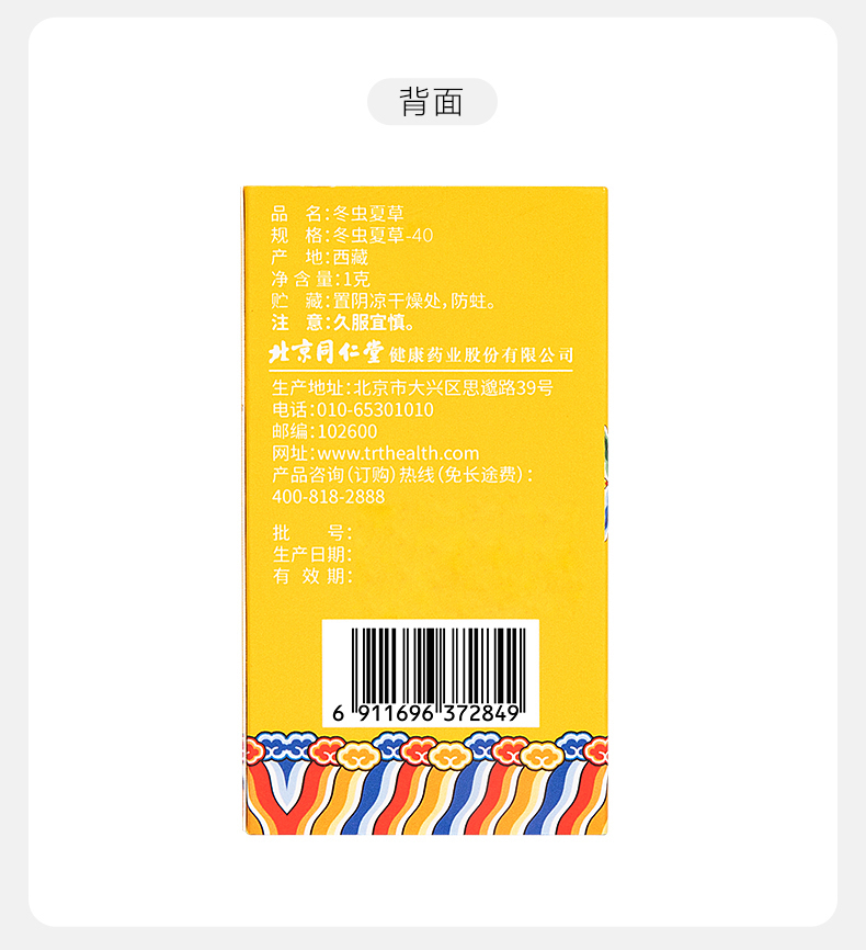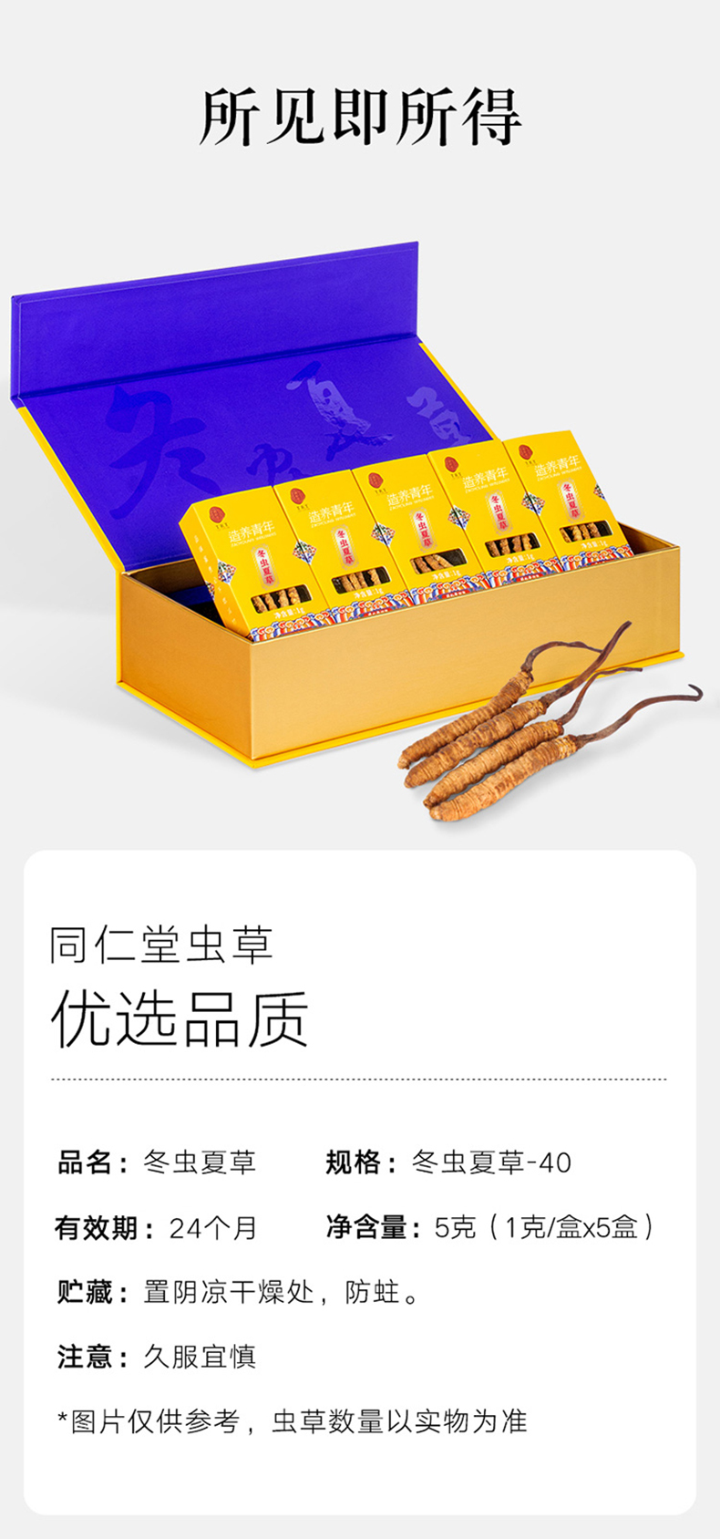 【正宗同仁堂品牌】北京同仁堂 冬虫夏草-40/5克(1克/盒x5盒) 西藏虫草 高品质精选虫草礼盒 5g SY