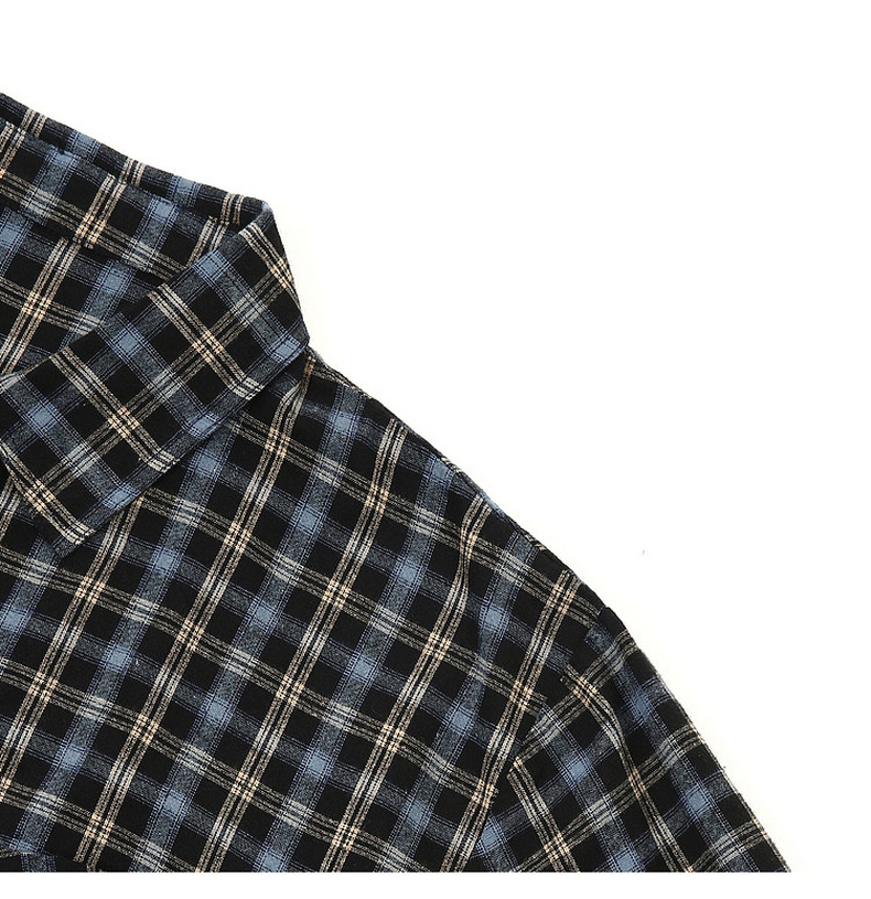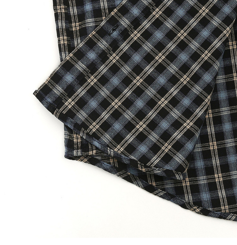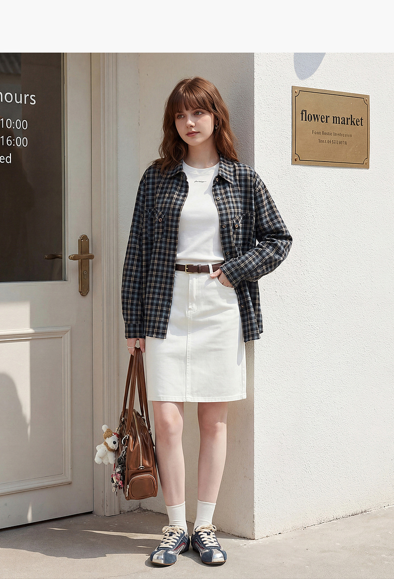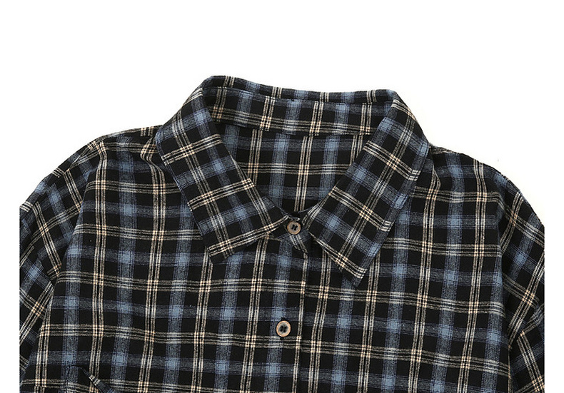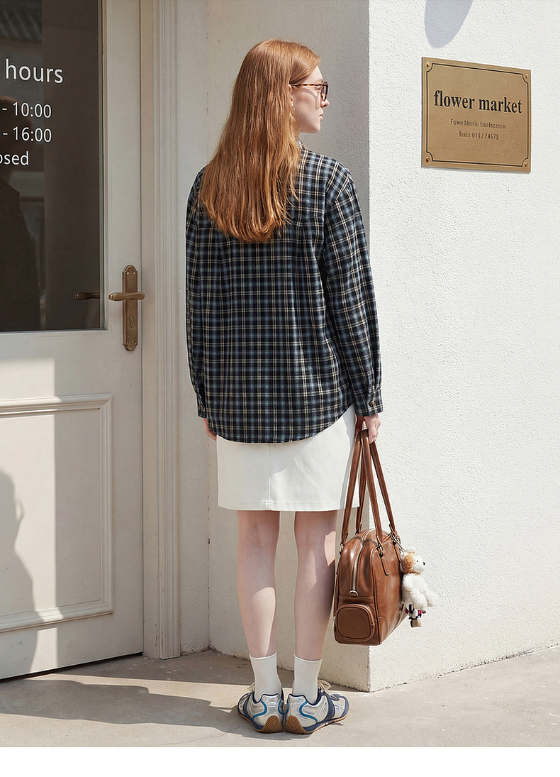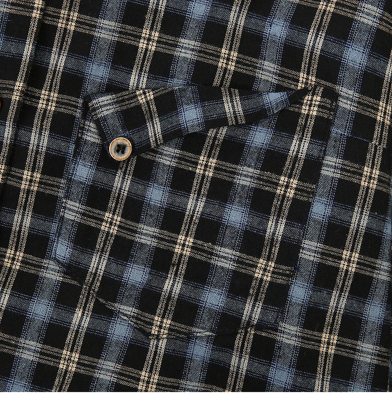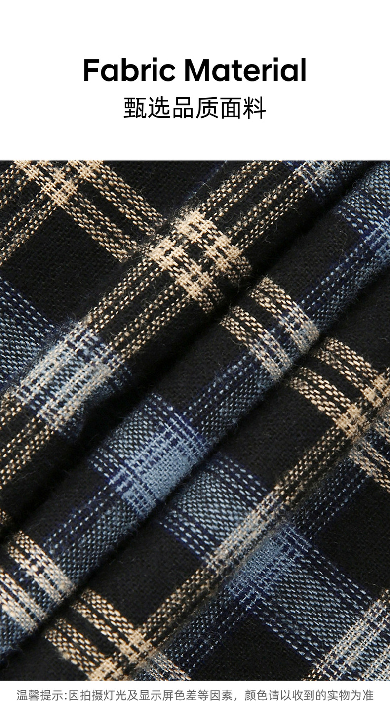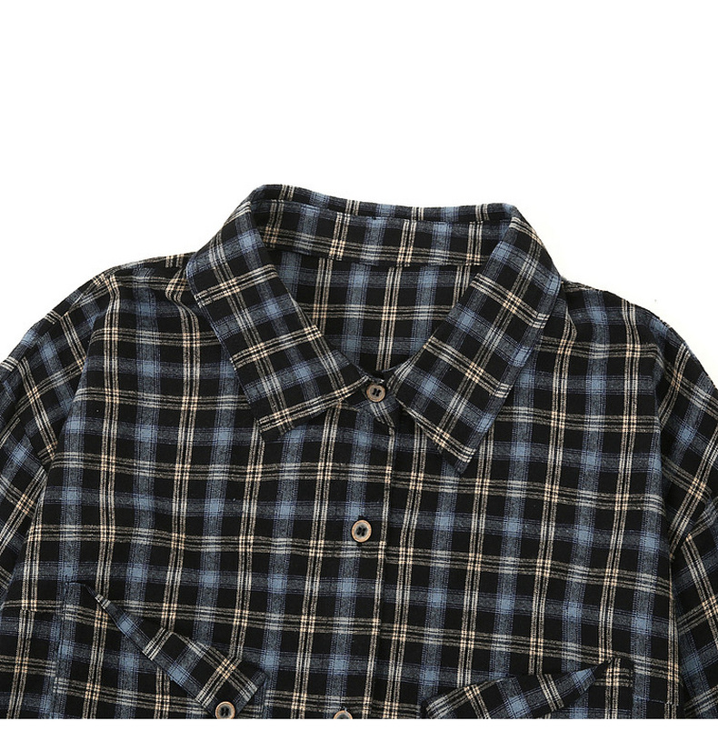 天猫同步【复古格子衬衫】拉夏贝尔/La Chapelle翻领口袋排扣长袖衬衫宽松防晒百搭叠穿上衣女