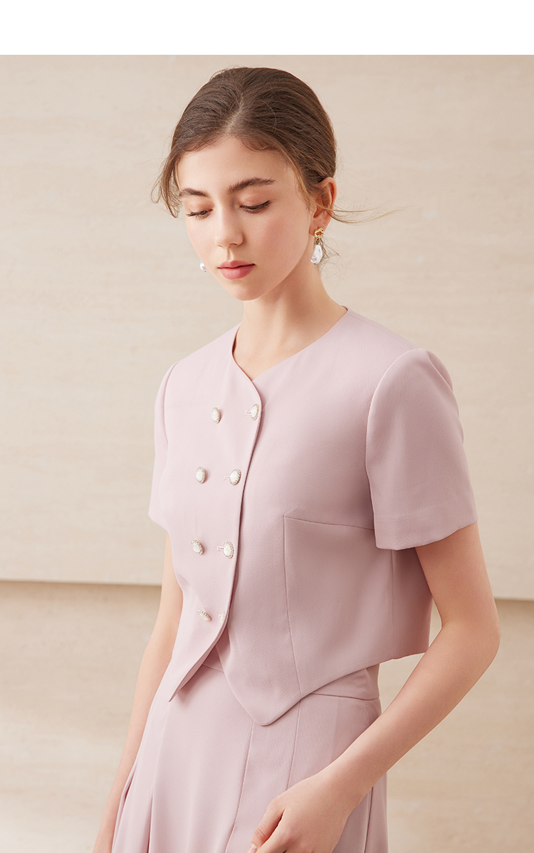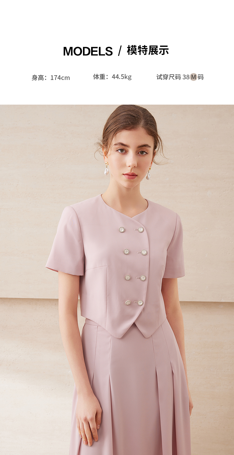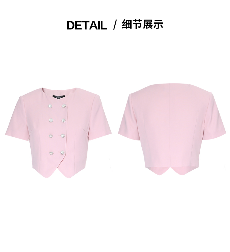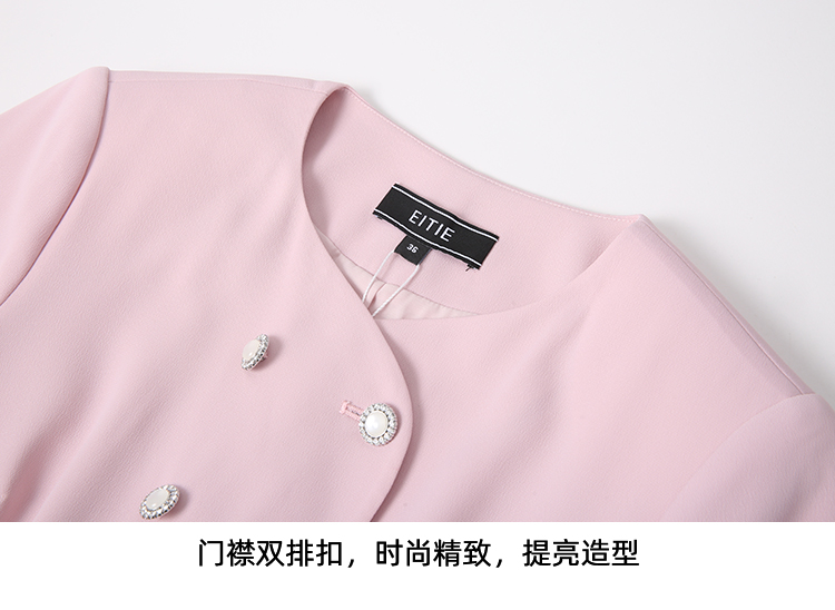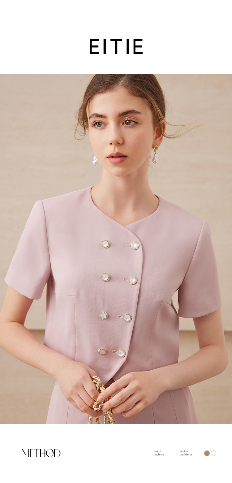 EITIE爱特爱气质双排扣优雅套装短款显瘦短袖外套上衣夏新款B2503608