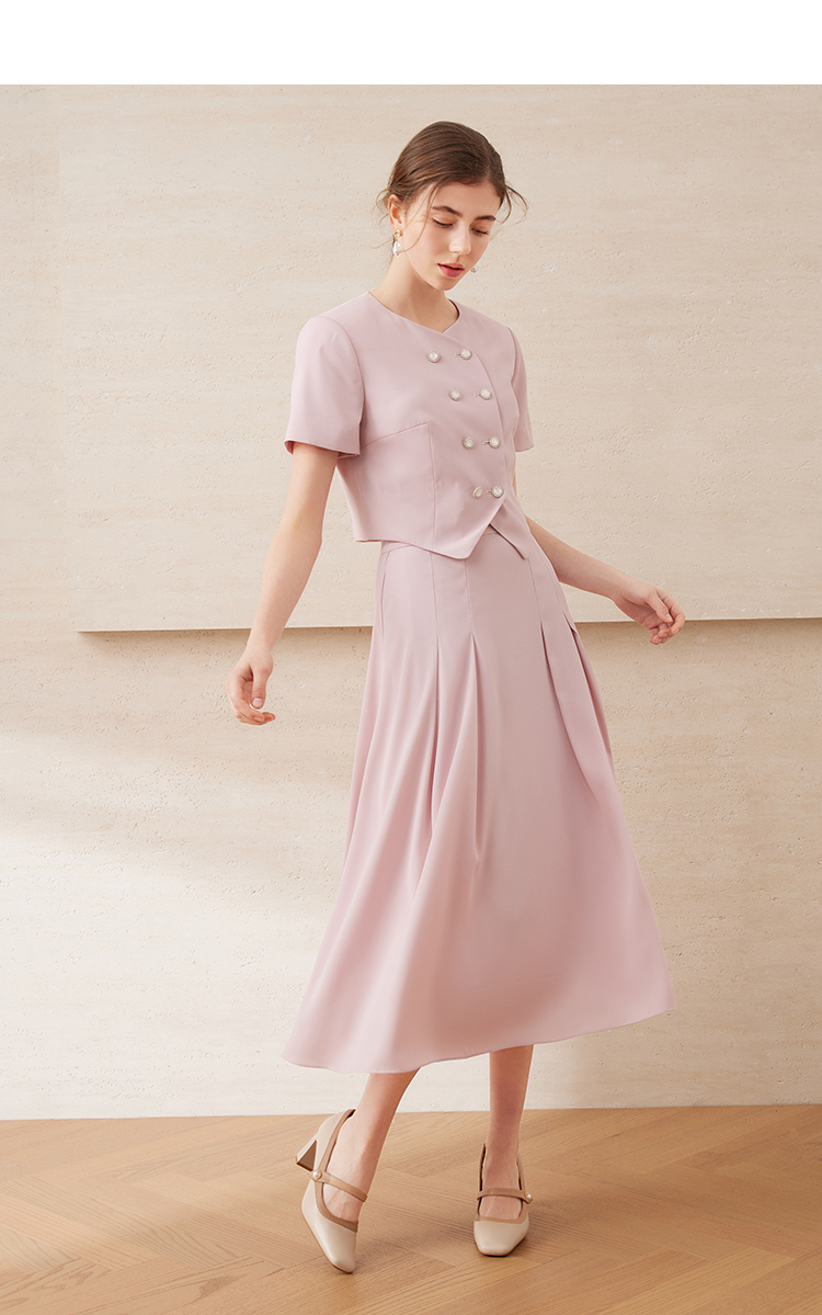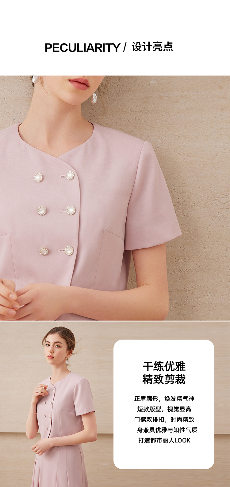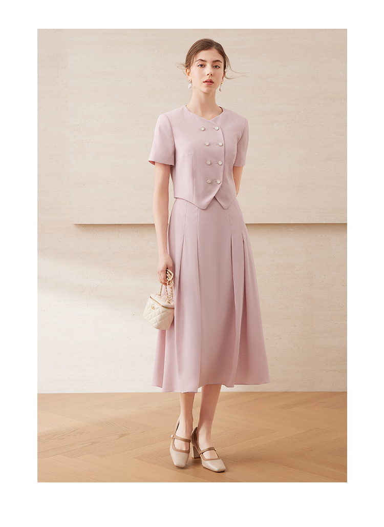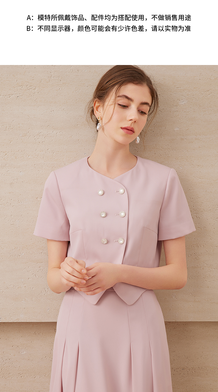 EITIE爱特爱气质双排扣优雅套装短款显瘦短袖外套上衣夏新款B2503608
