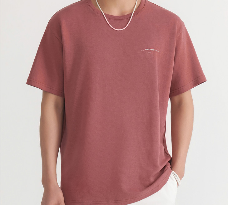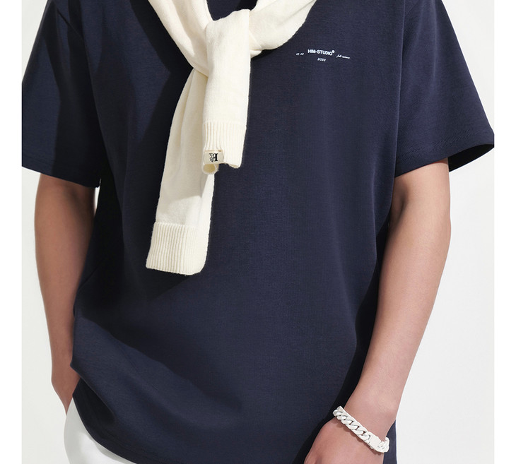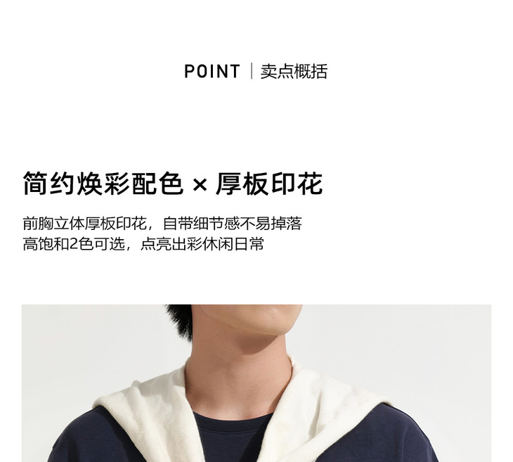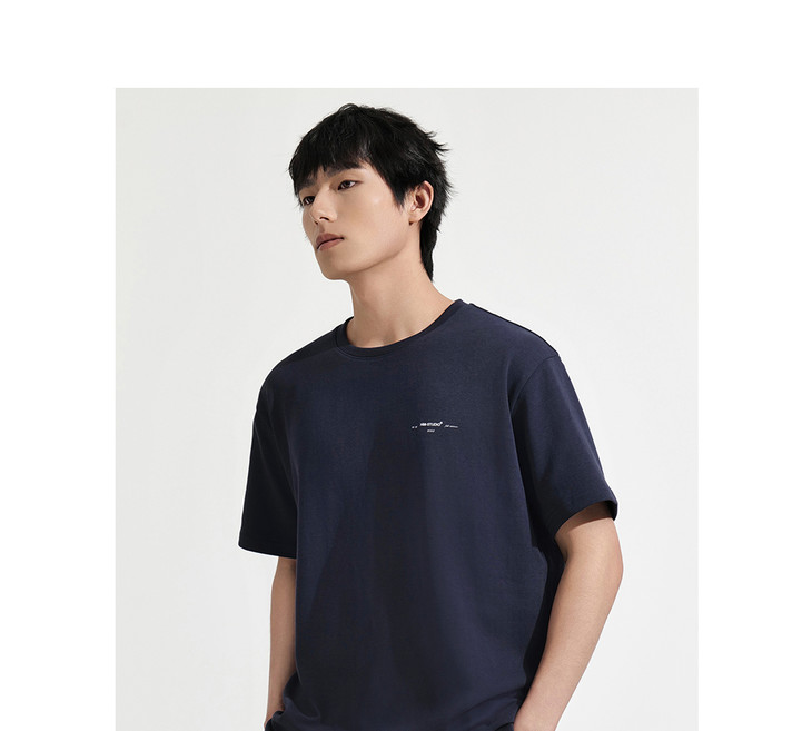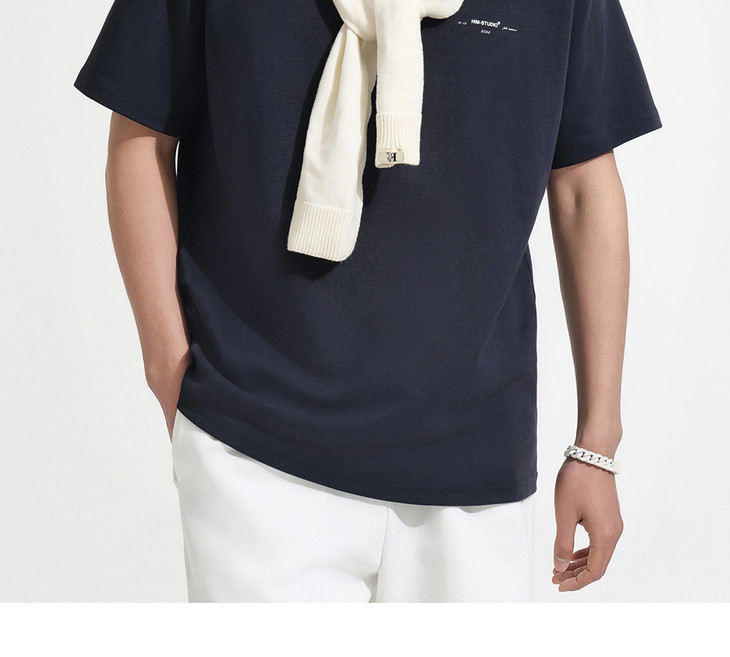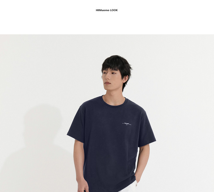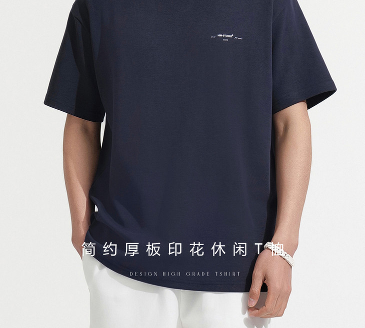 HIM漢崇 简约立体厚板印花圆领T恤男活力舒适休闲短袖衫 2025夏季