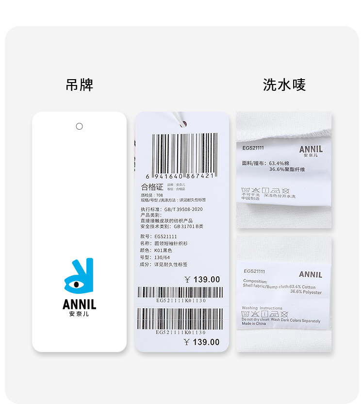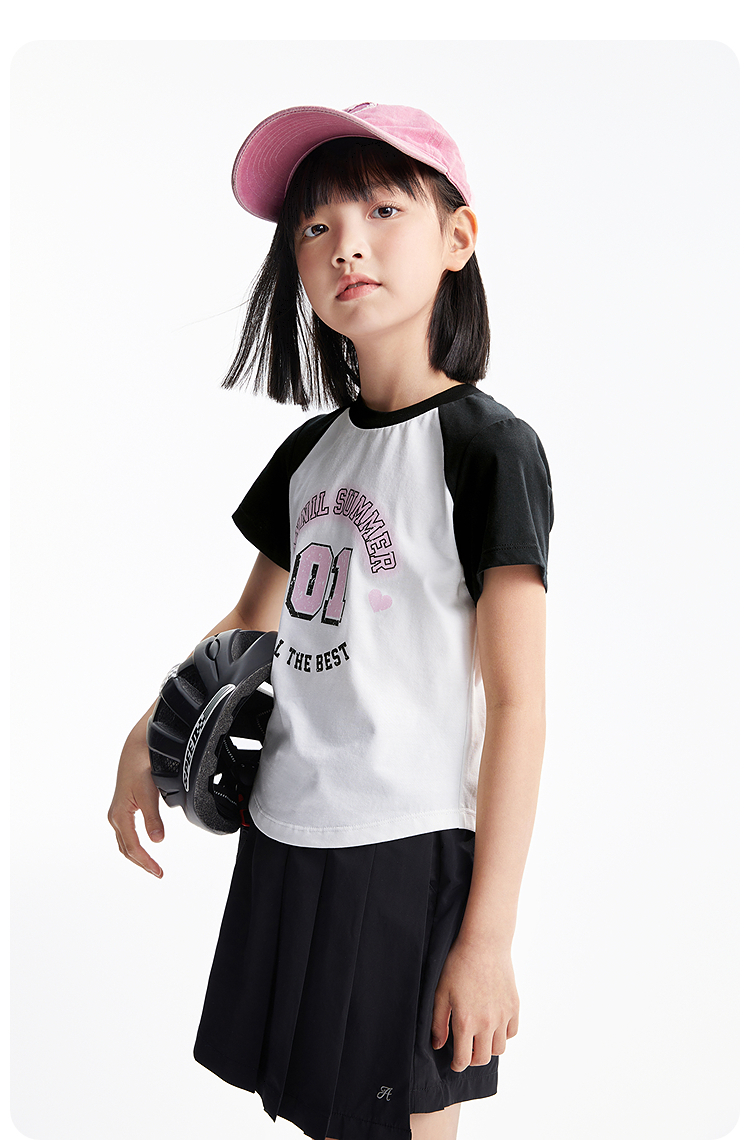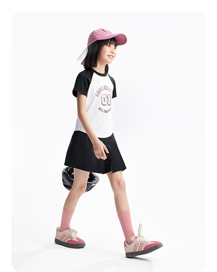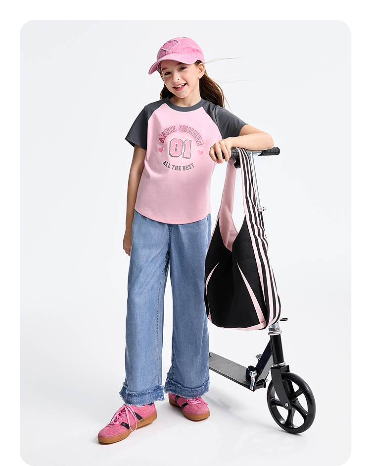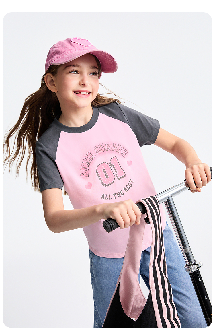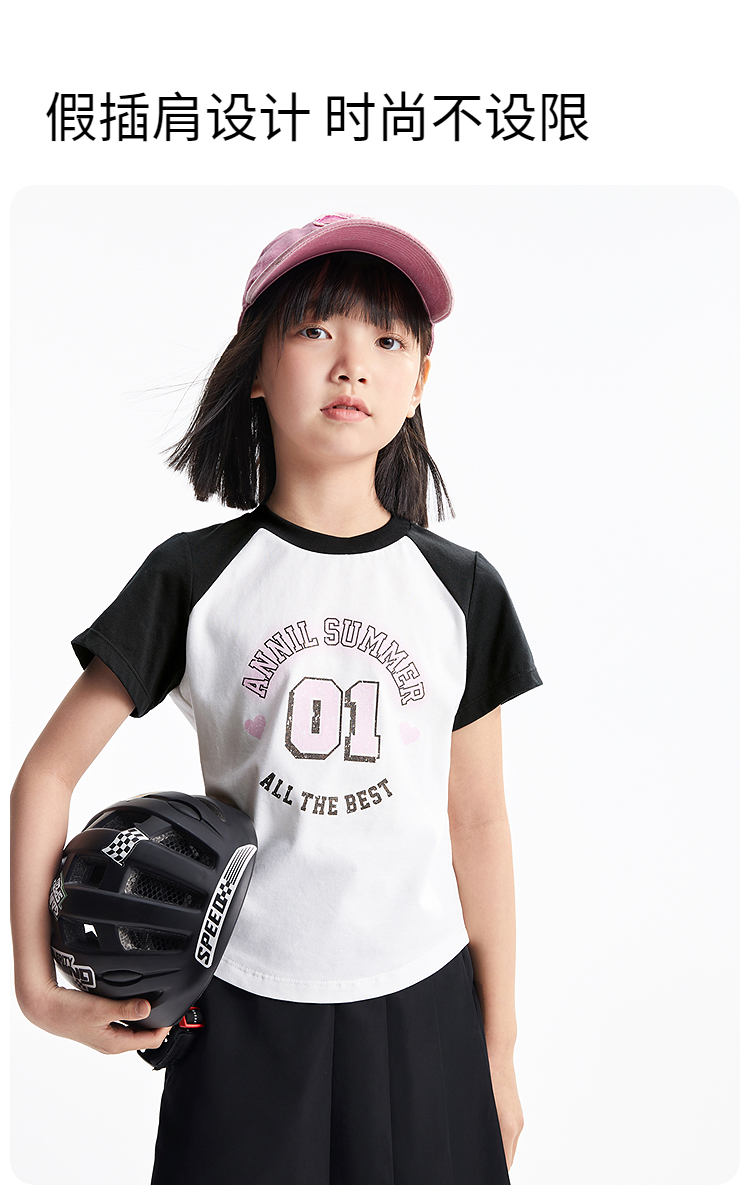 【热卖🔥】【凉感面料】女童圆领SORONA短袖针织衫夏季新款安奈儿童装EG521111