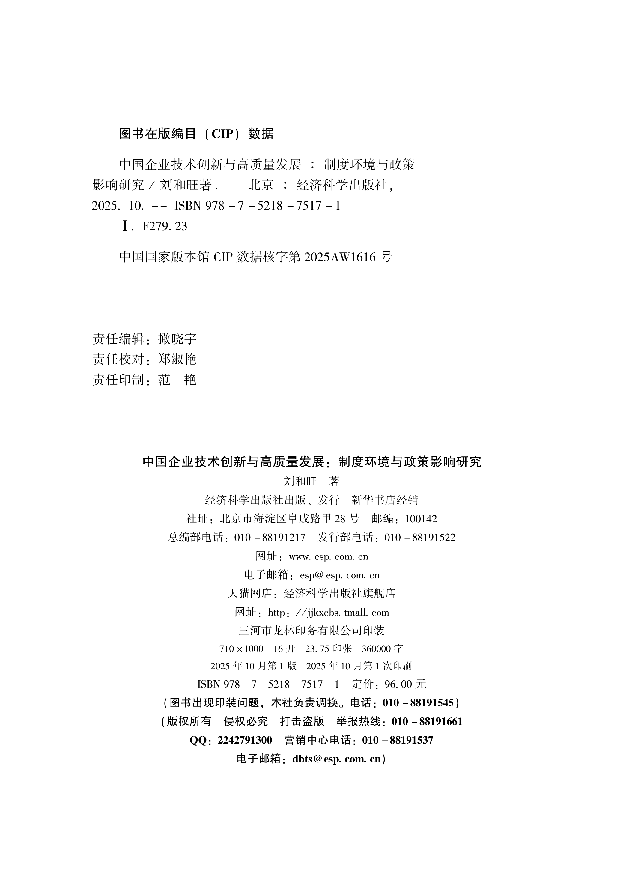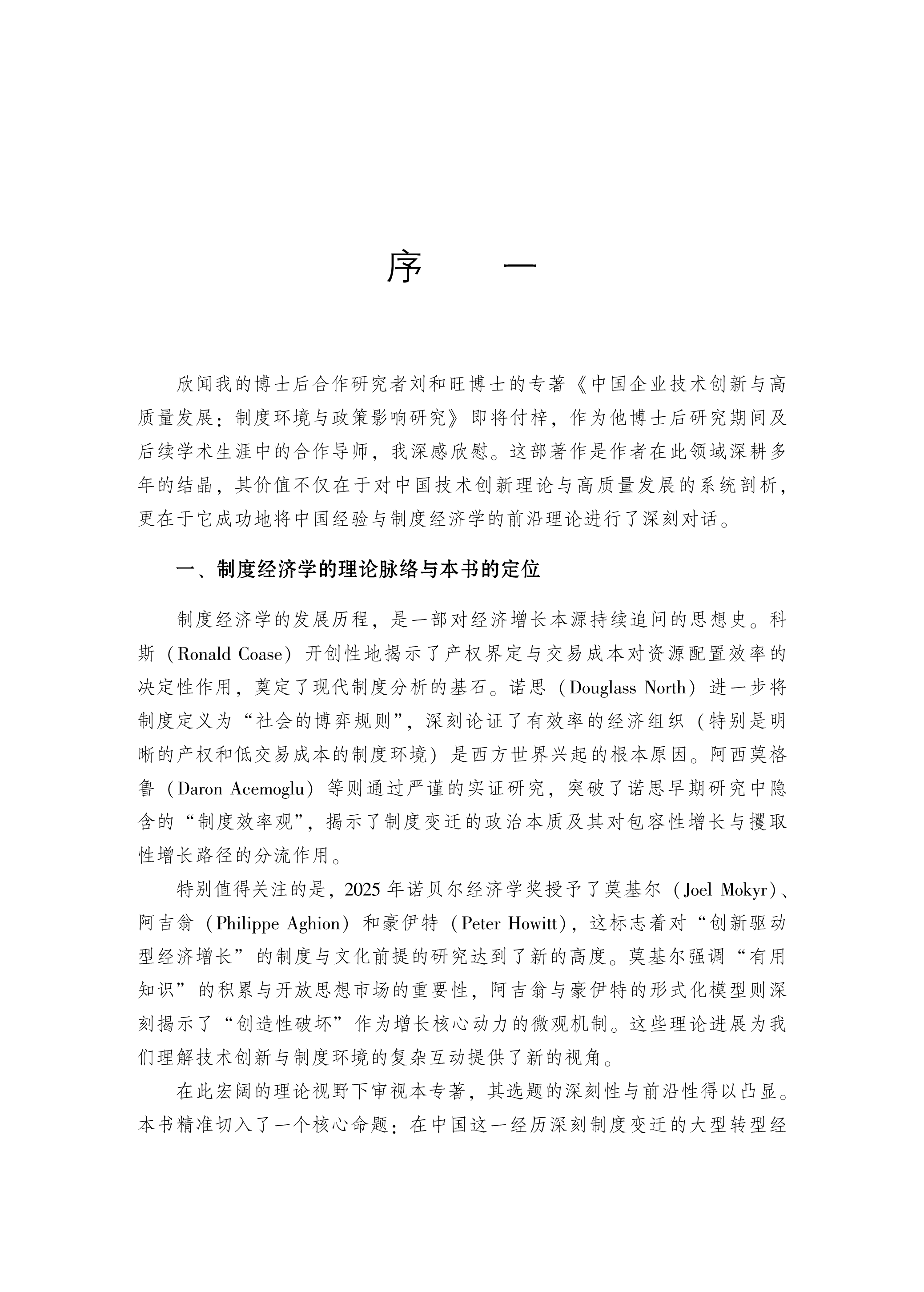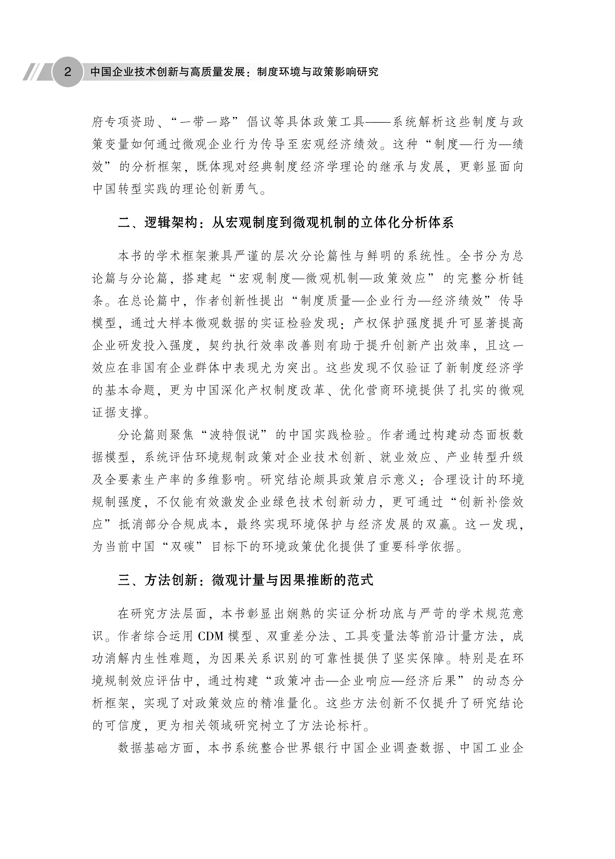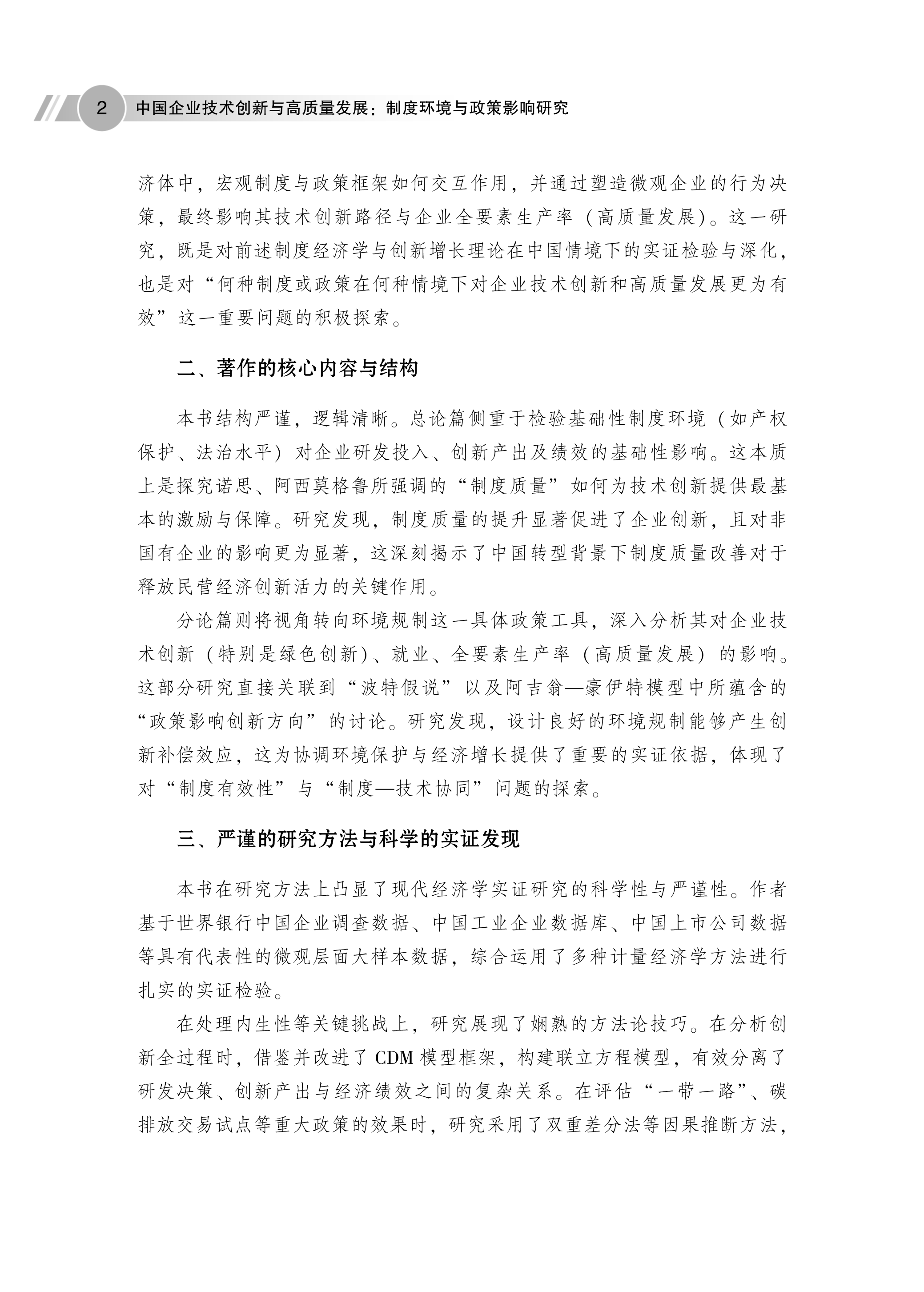 中国企业技术创新与高质量发展:制度环境与政策影响研究