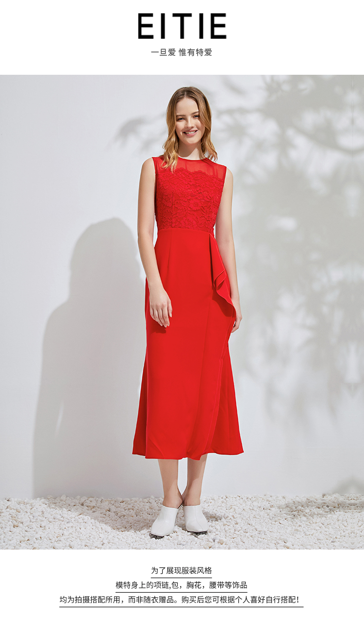 EITIE爱特爱品牌女装秋款优雅纯色日常婚宴礼服中长款A字裙5877509