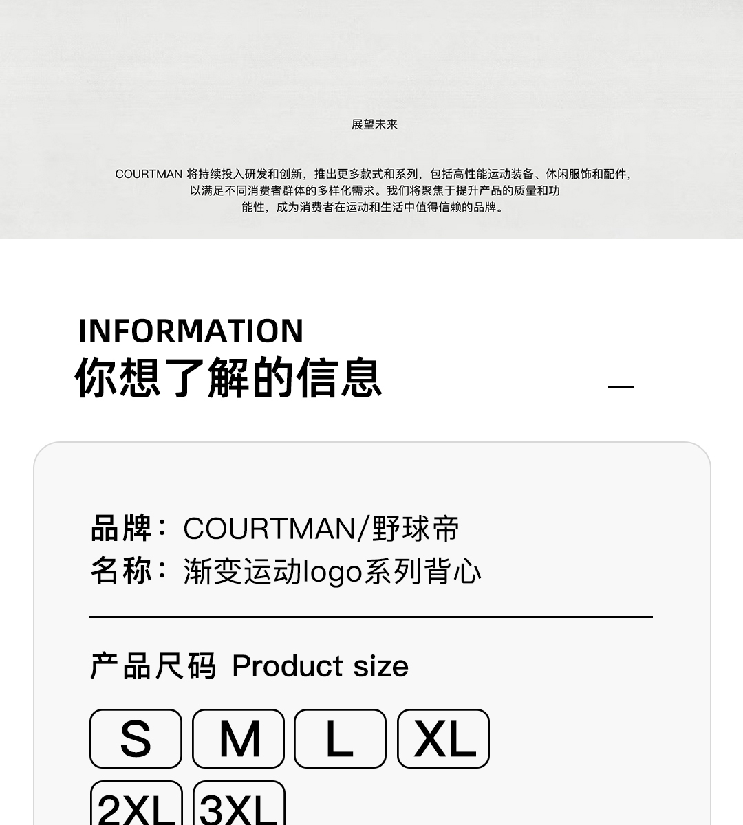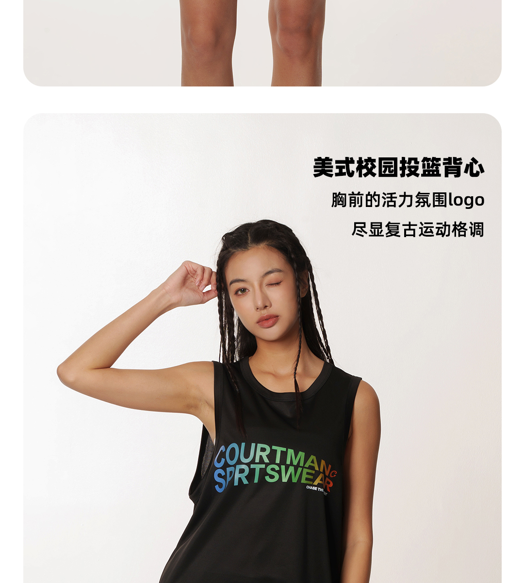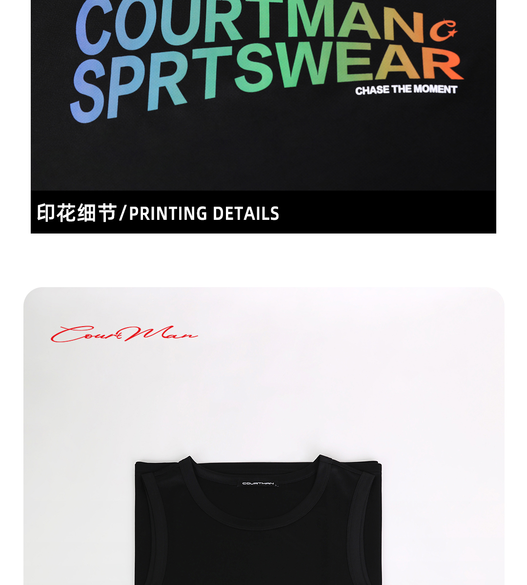 COURTMAN野球帝美式投篮背心跑步训练男女同款篮球坎肩渐变logo