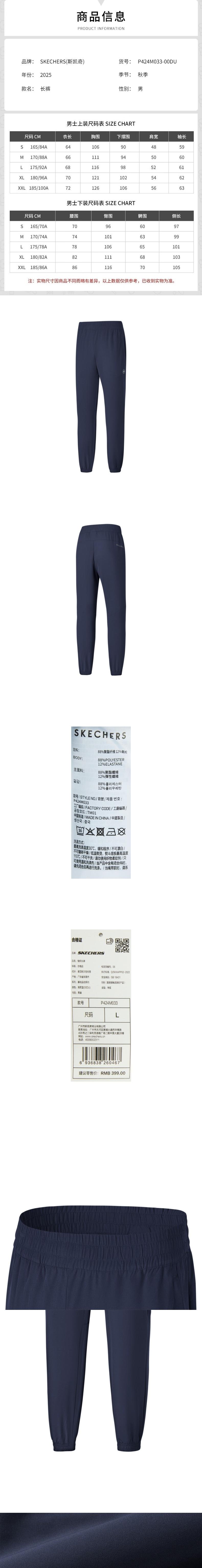 Skechers斯凯奇 男梭织长裤 P424M033-00DU