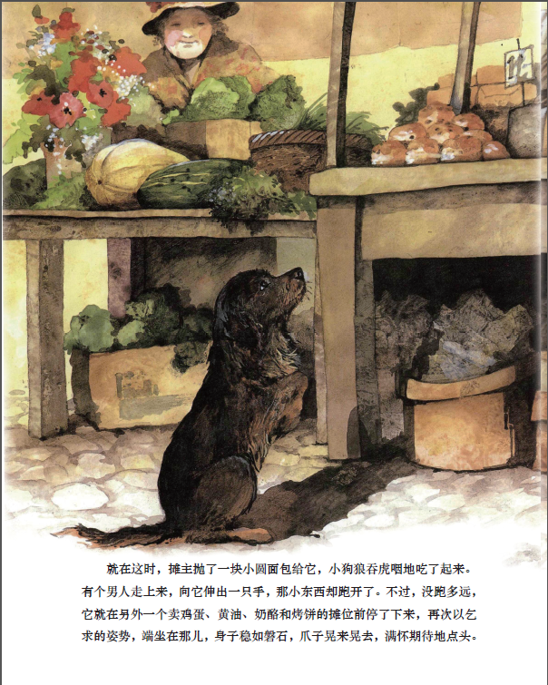 集市日,小镇的广场上出现了一只到处乞食的流浪狗,兽医吉米和年轻的警察都不知道它从哪里来,也不知道它属于谁。几天后,警察将那只流浪狗带到了兽医吉米的家中,小狗浑身是伤。因为是警察找到它的,所以吉米将它治疗完之后,又送回了警察局。警察局里有许多流浪狗,经常有人来认领,可是这条小狗却一直无人认领。一天,警察告知吉米,小狗因为到处乞食被抓起来了,吉米为此很紧张,结果发现警察跟他开了个玩笑,警察已经决定自己收养它。