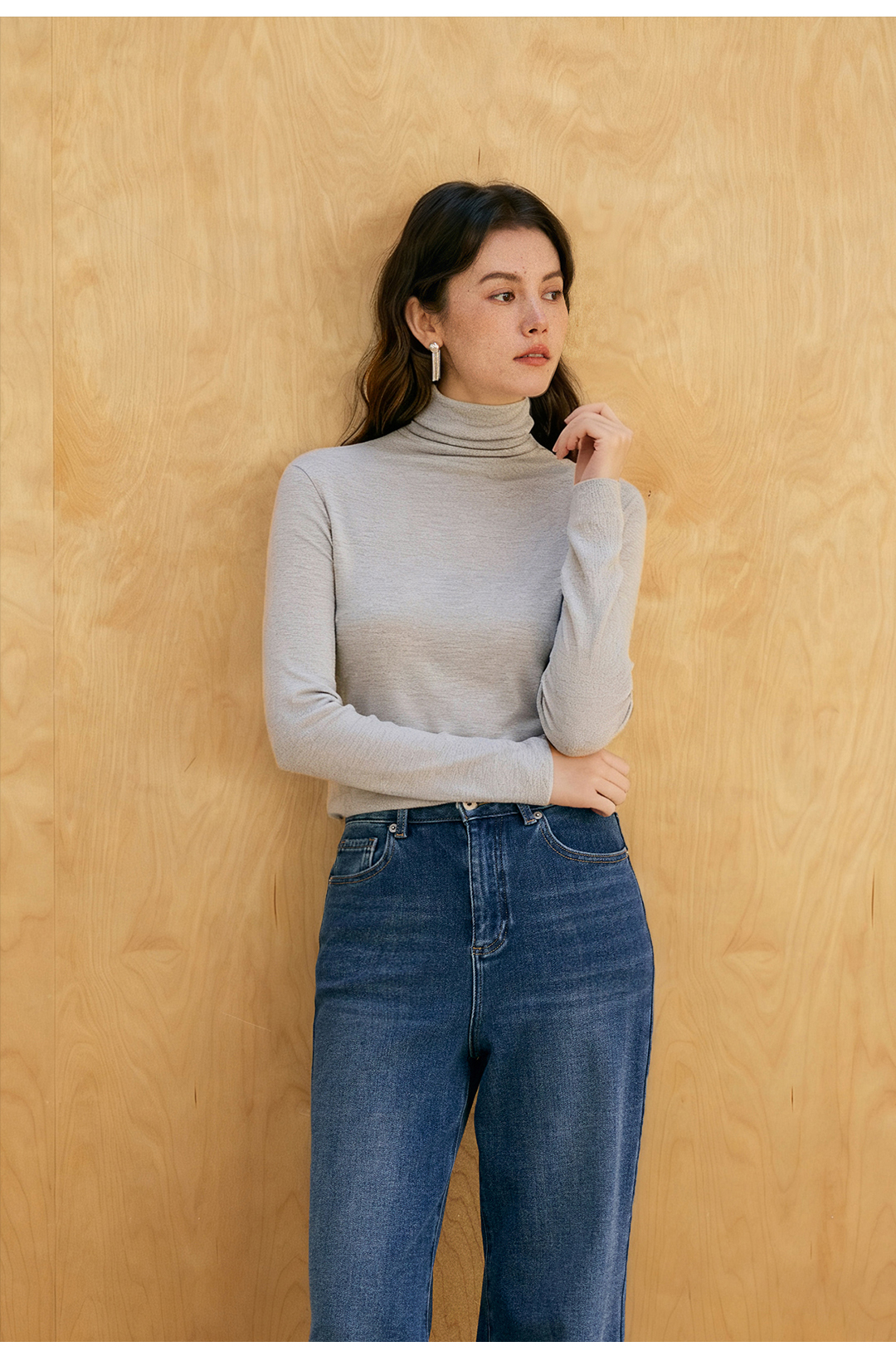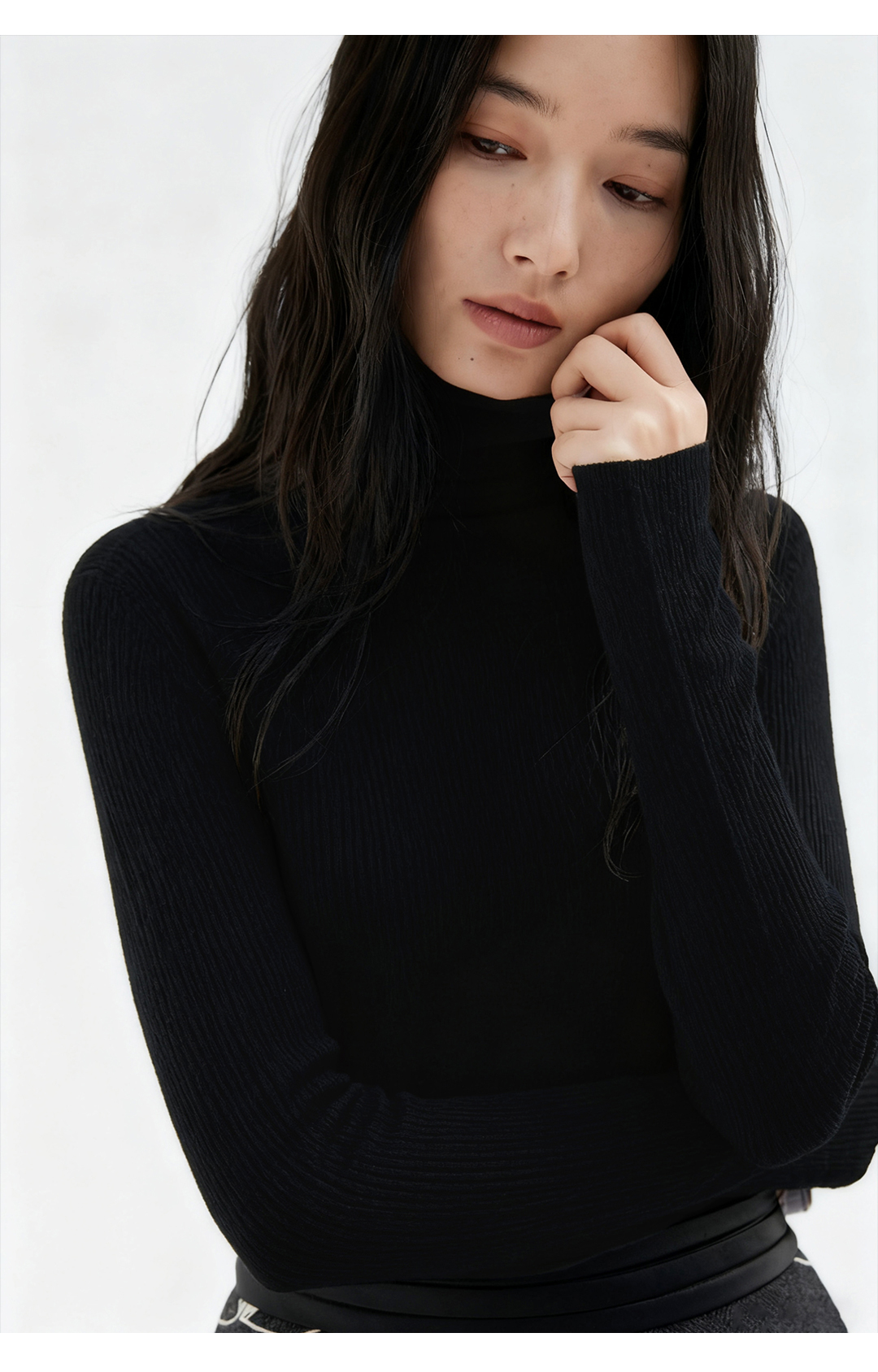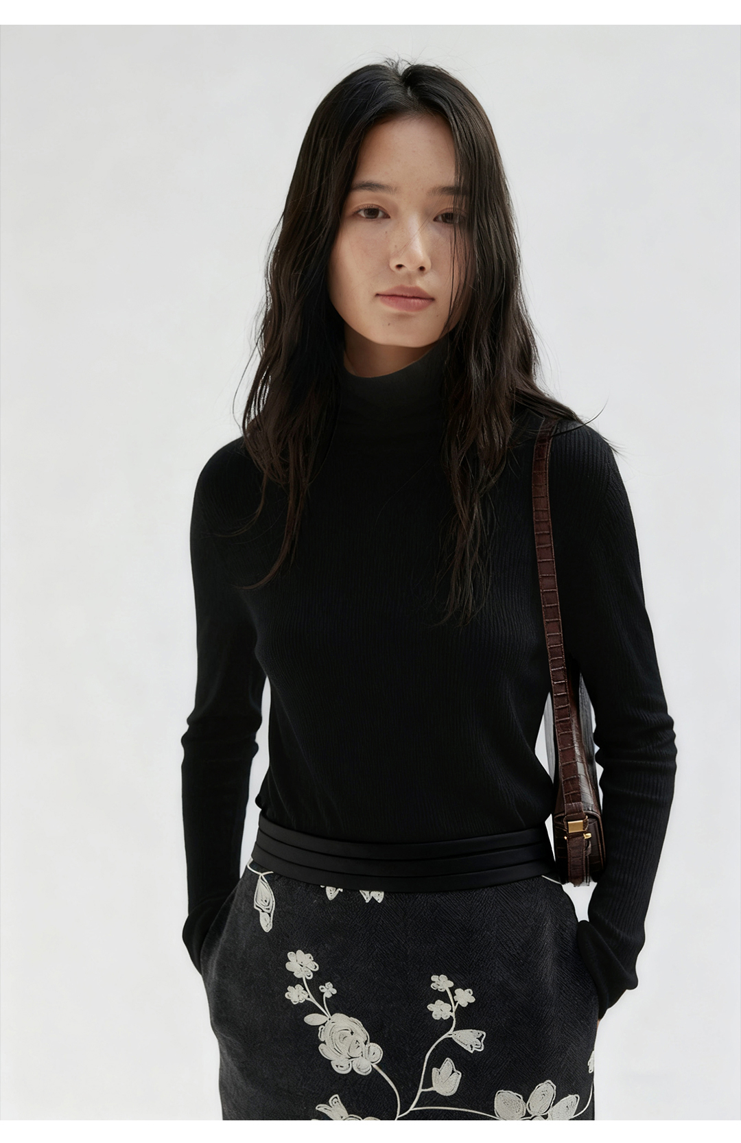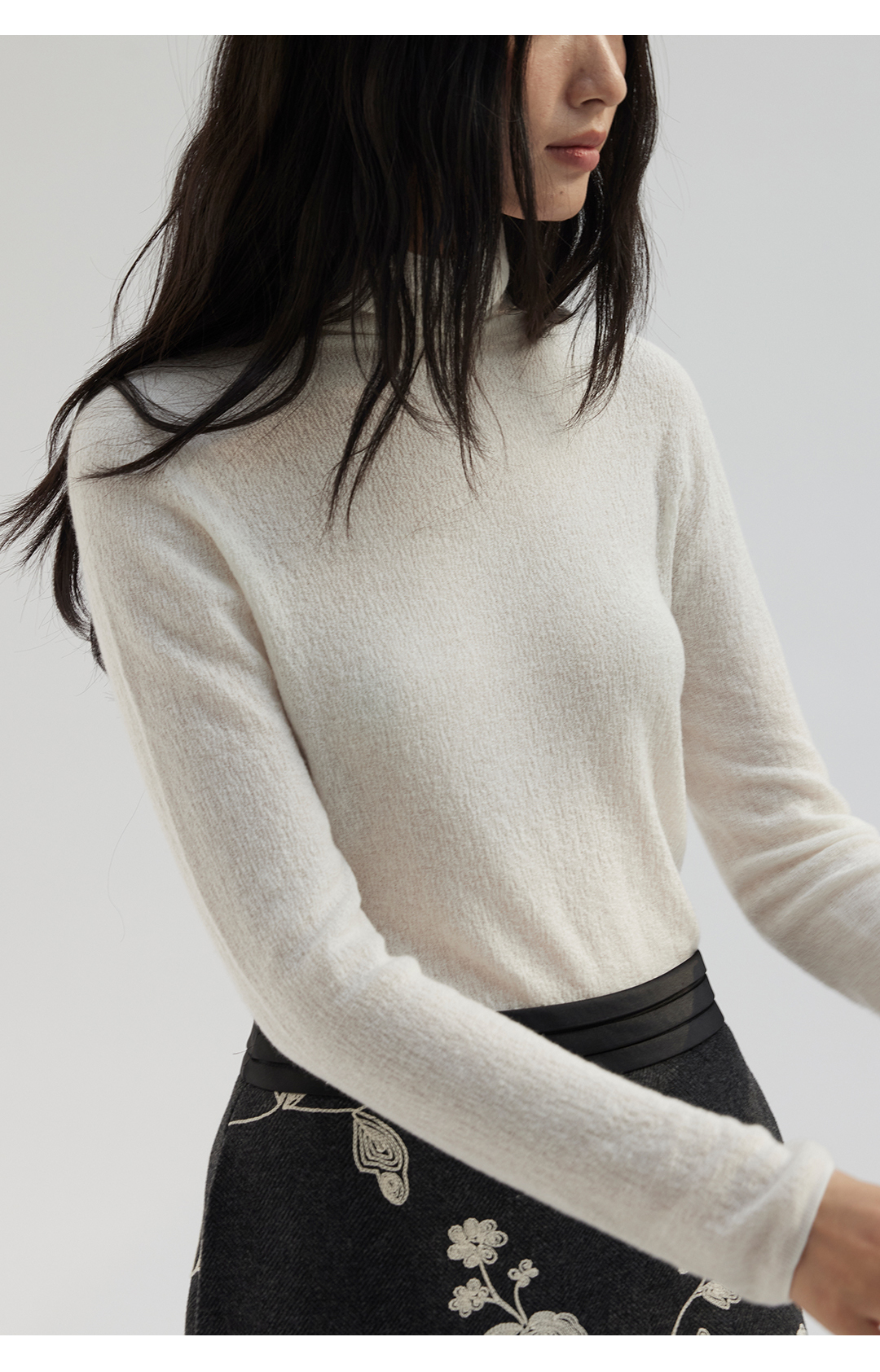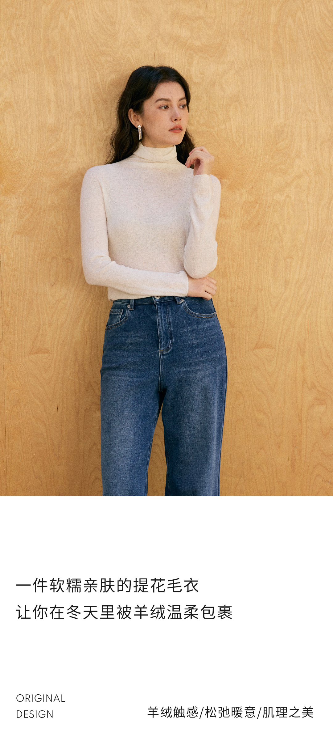 HeyDress提花羊毛羊绒混纺高领毛衣