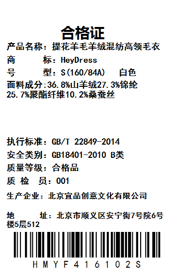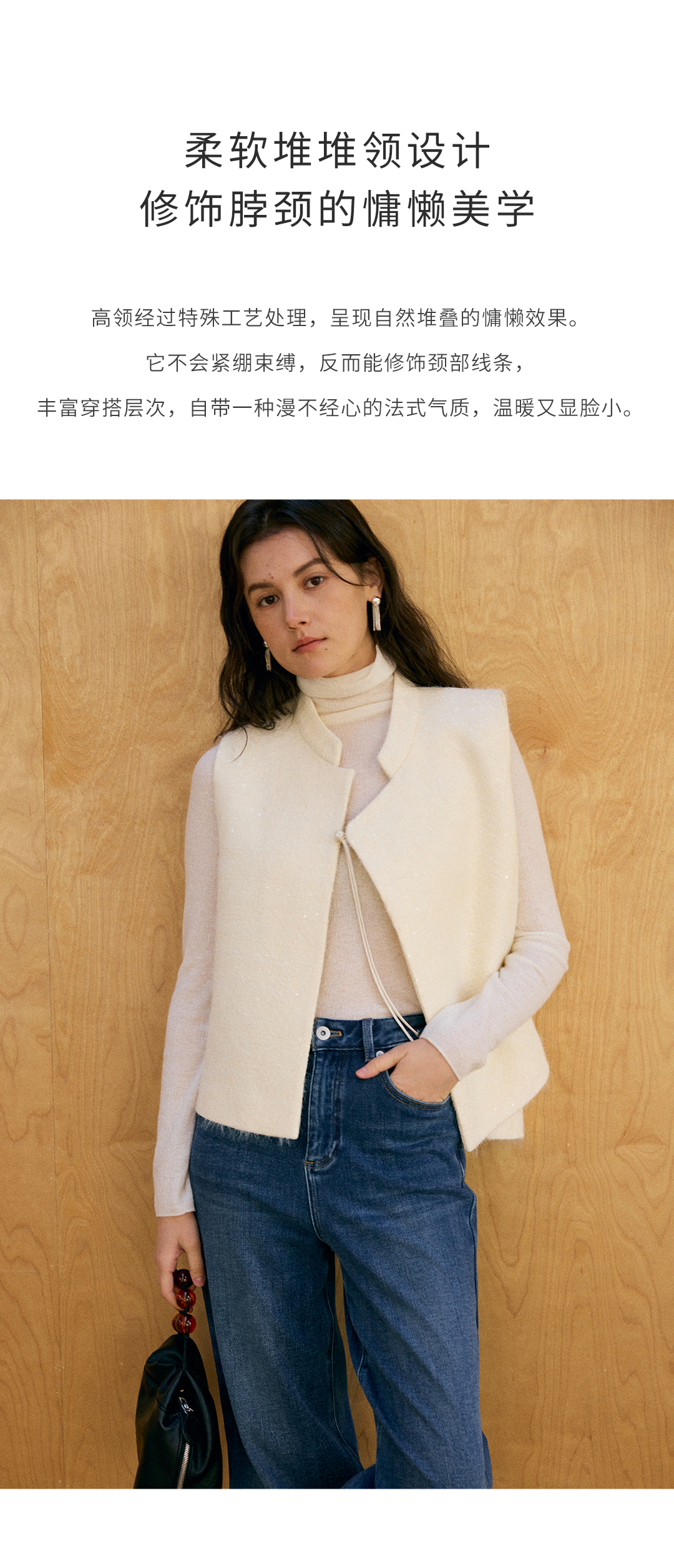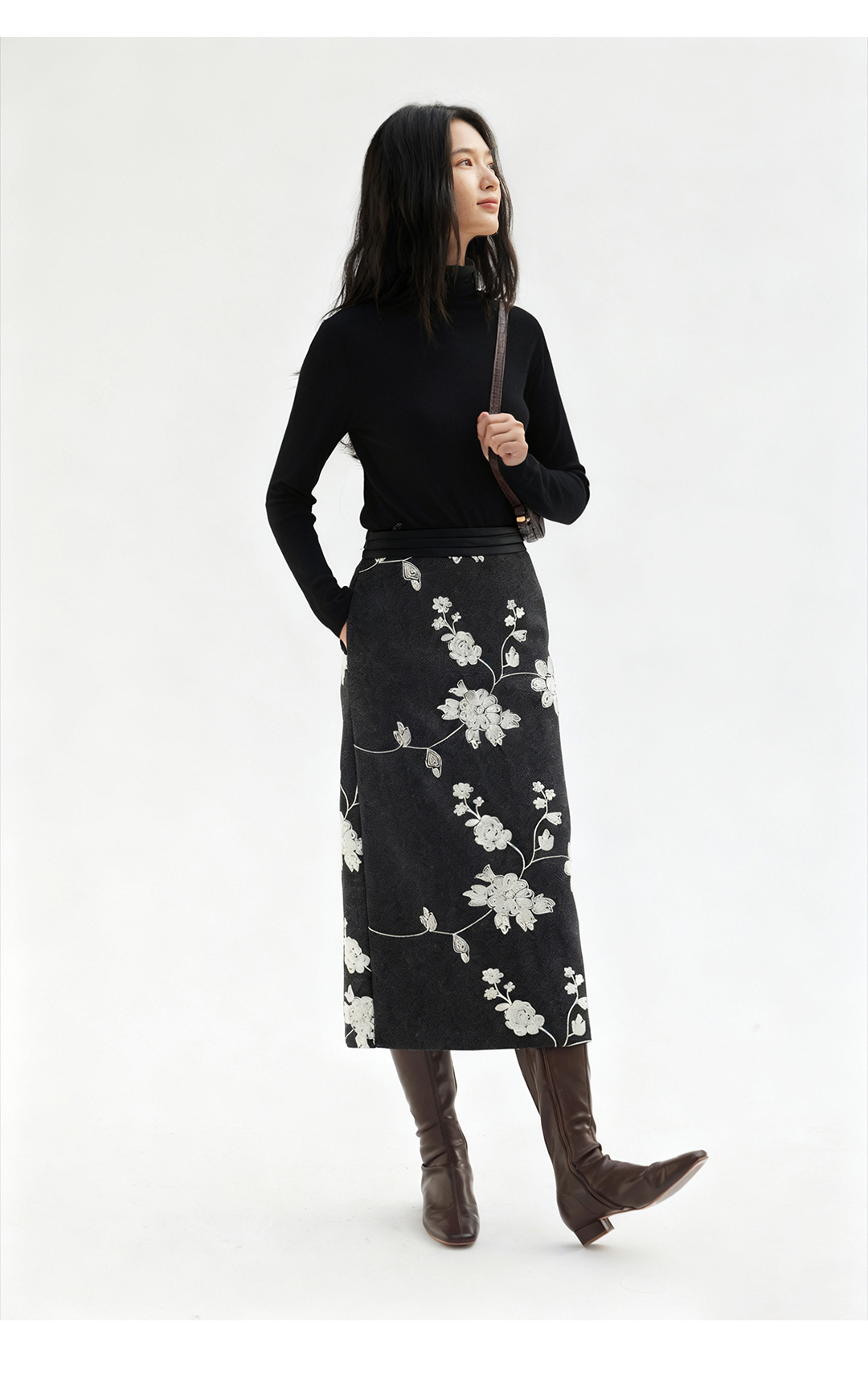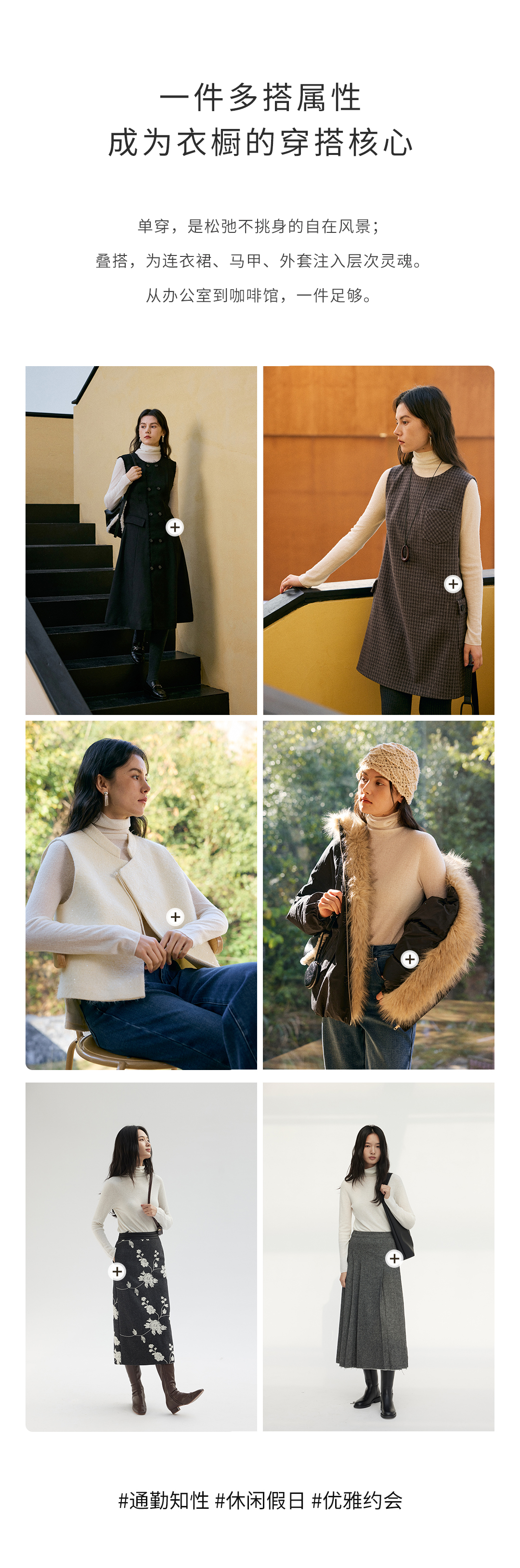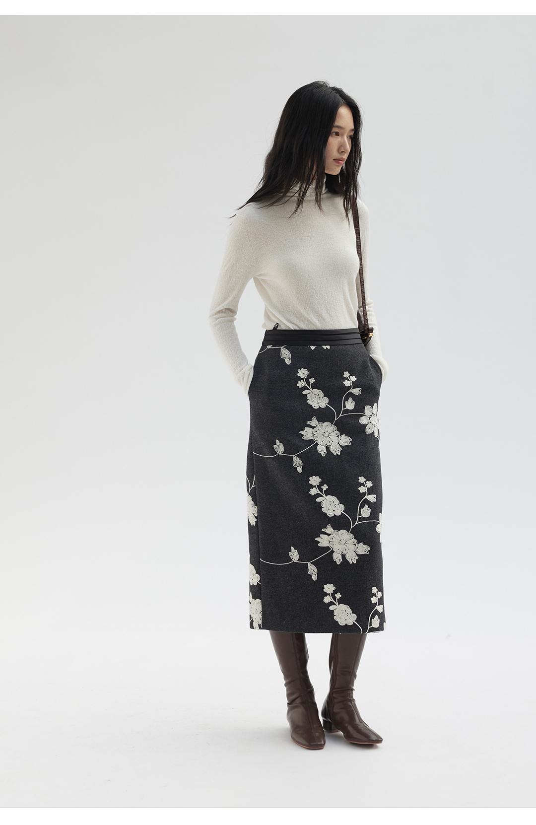 HeyDress提花羊毛羊绒混纺高领毛衣