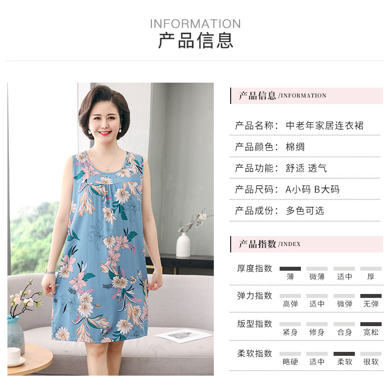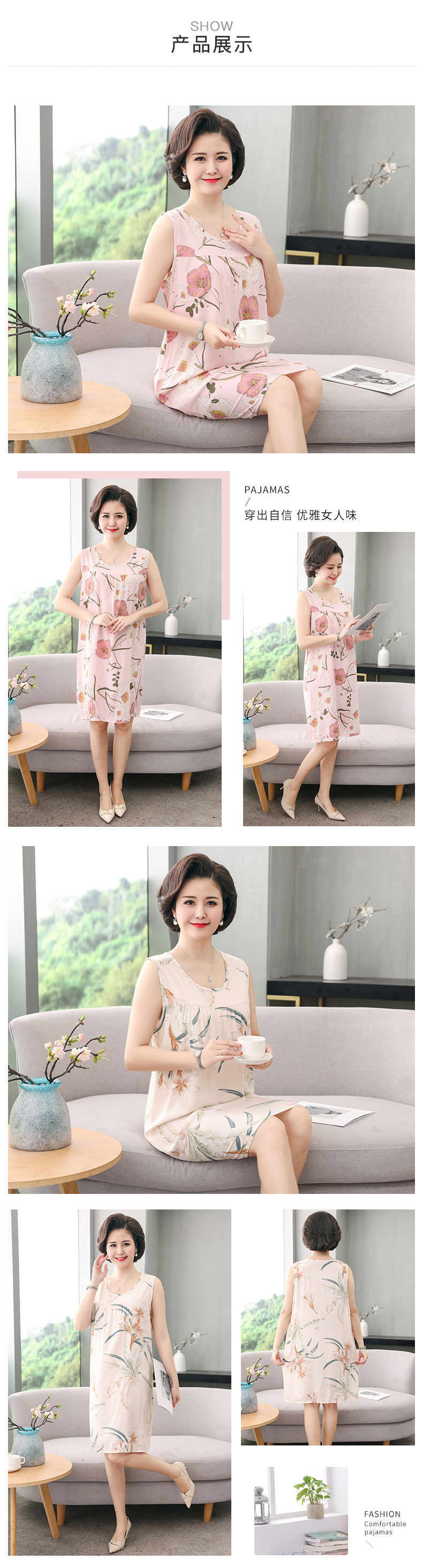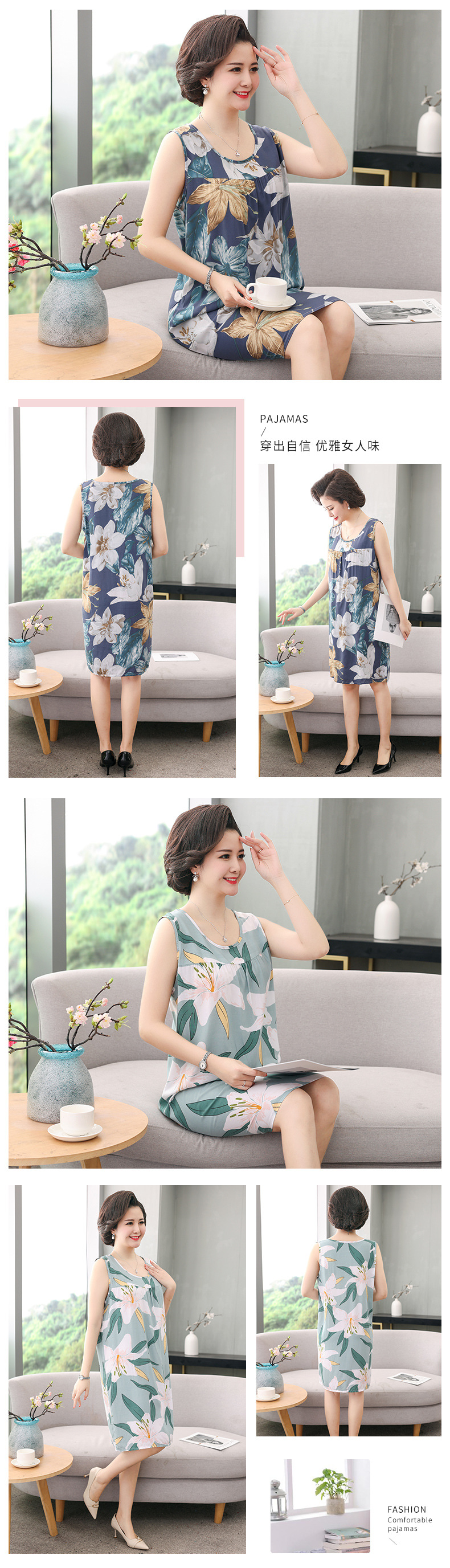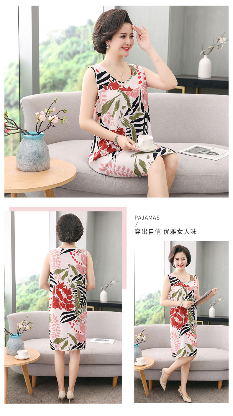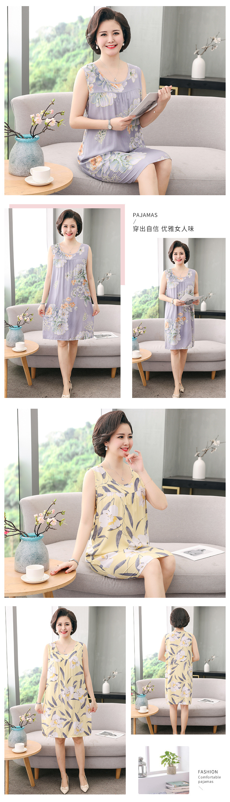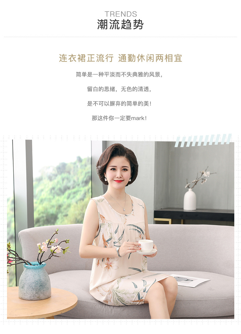 YQ睡裙高密40支绵绸连衣裙夏清凉透气印花时尚优雅减龄家居