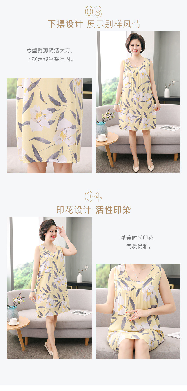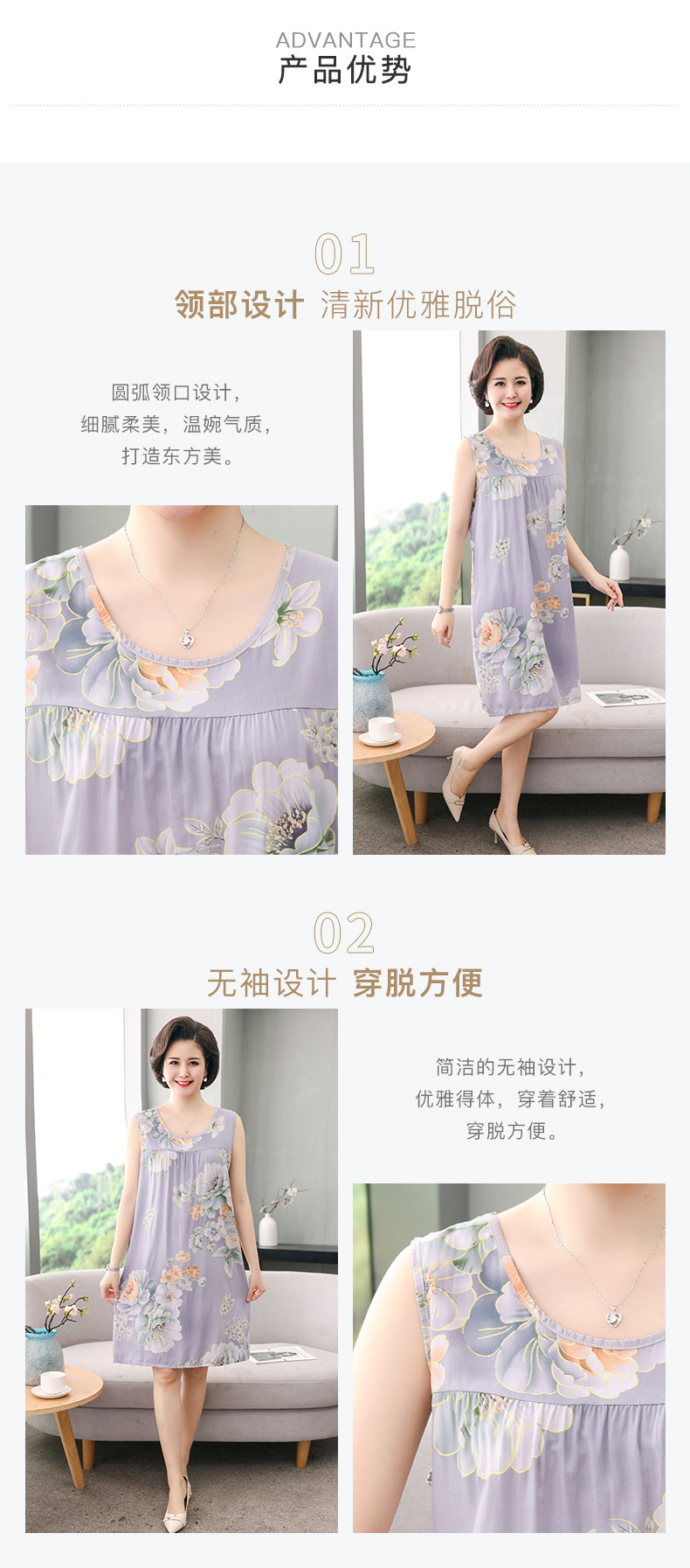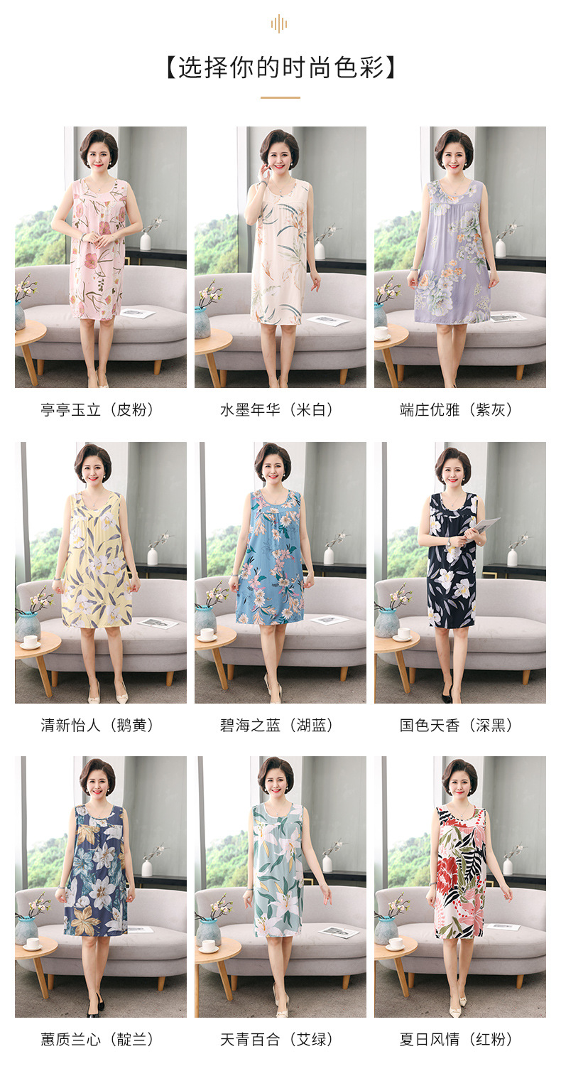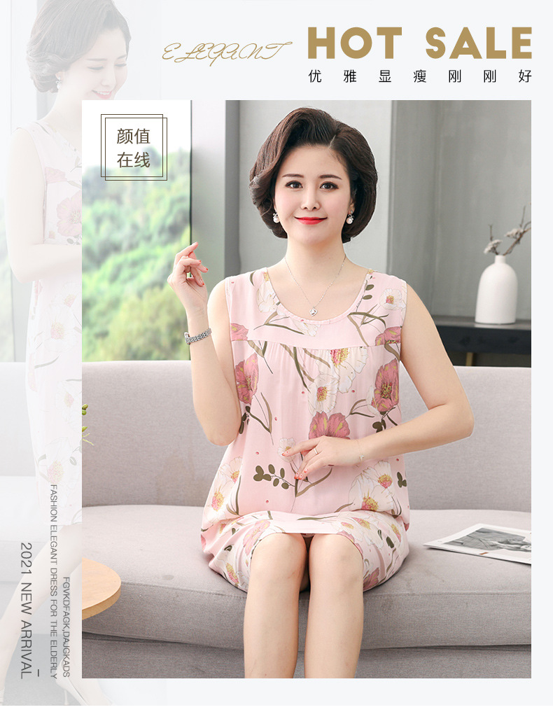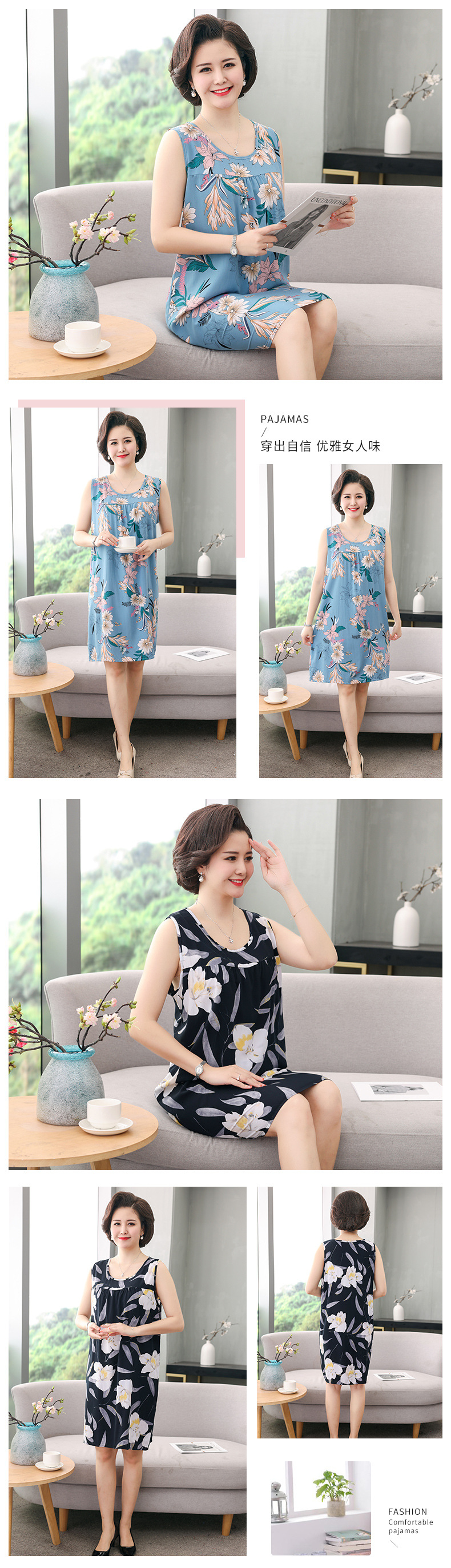 YQ睡裙高密40支绵绸连衣裙夏清凉透气印花时尚优雅减龄家居