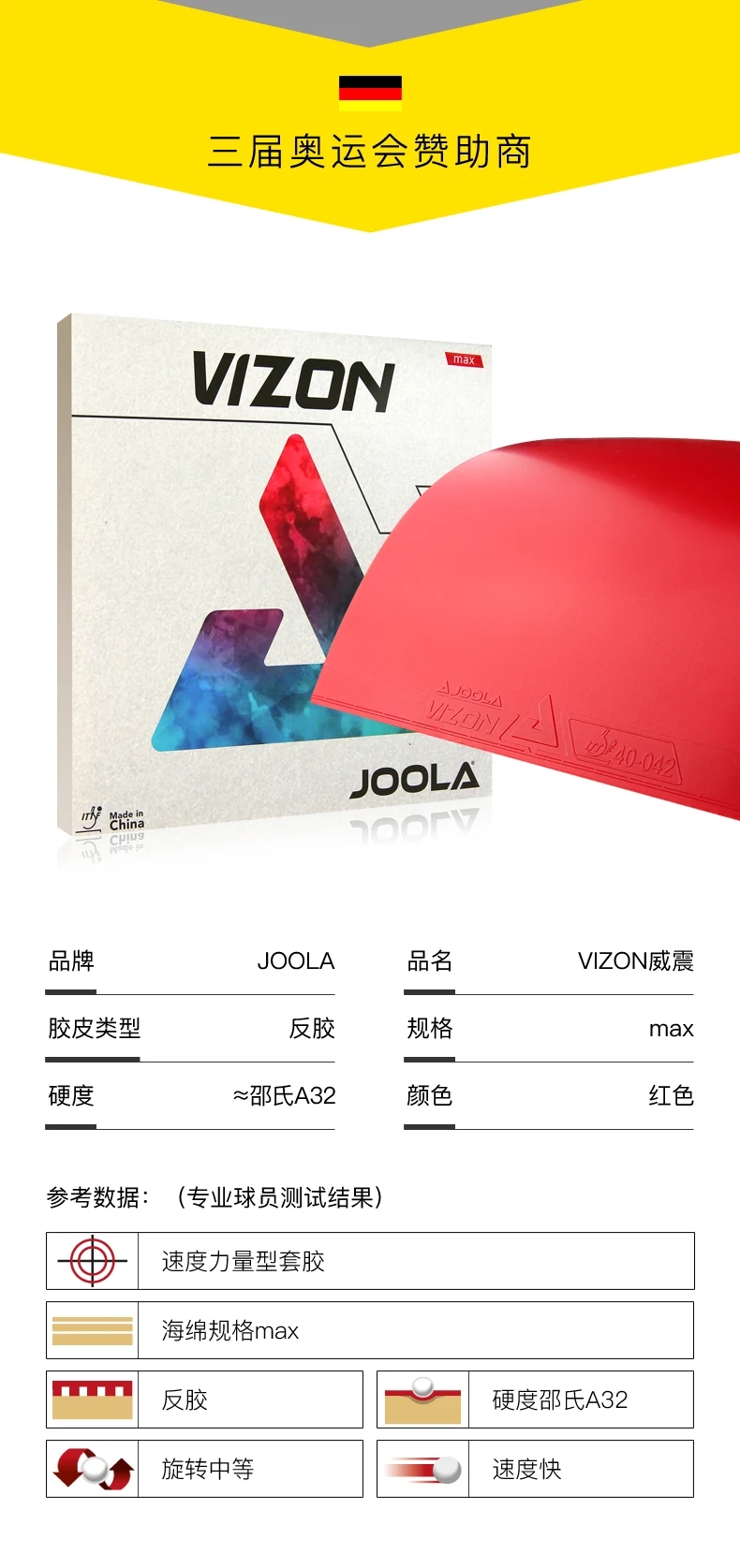 JOOLA优拉尤拉乒乓球拍胶皮威震 VIZON乒乓球反胶套胶