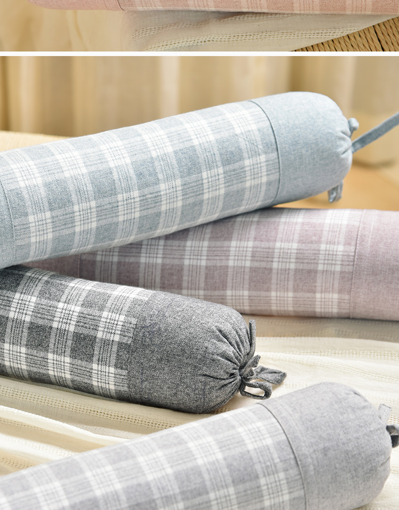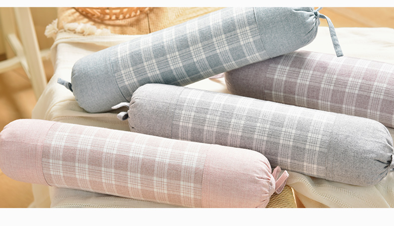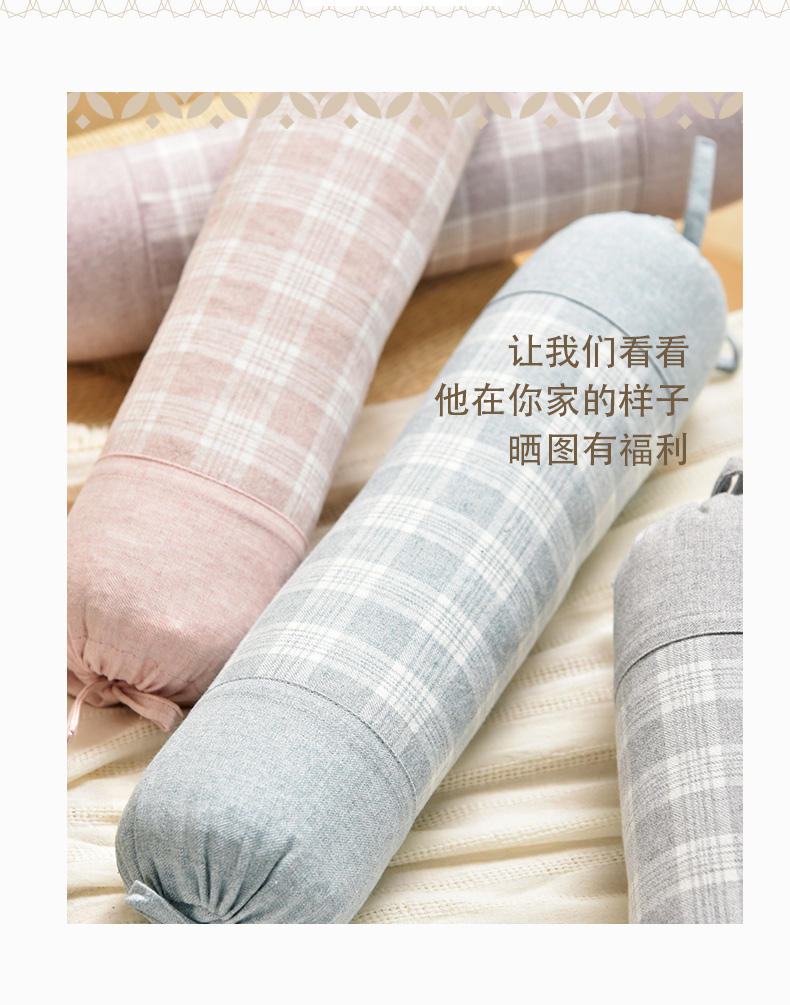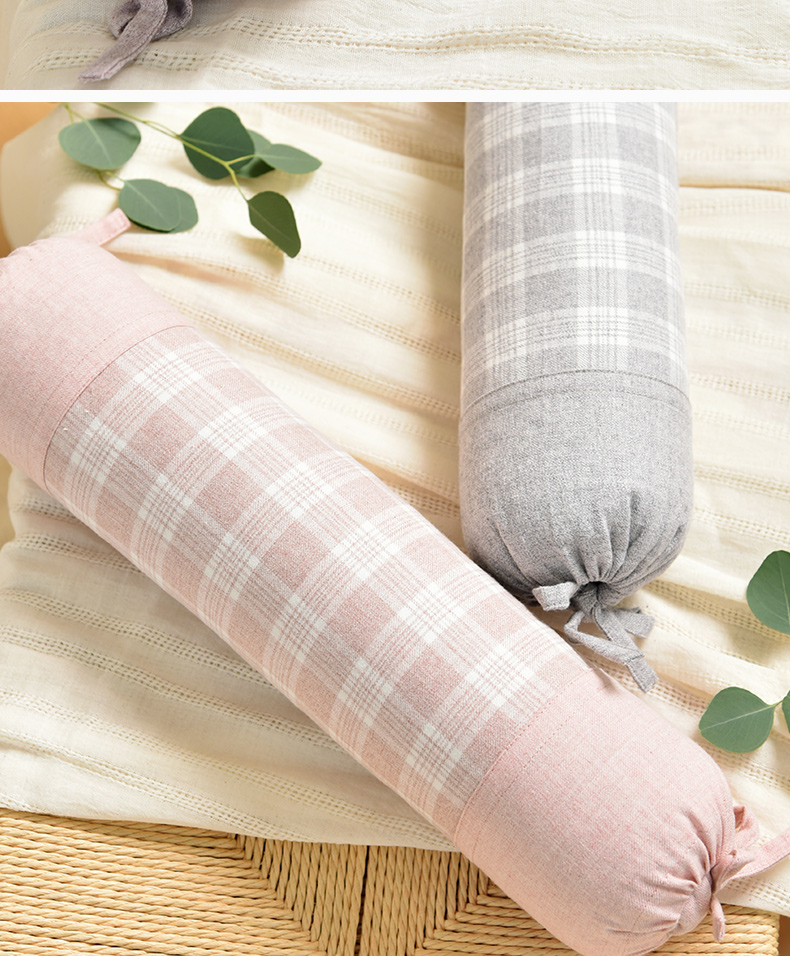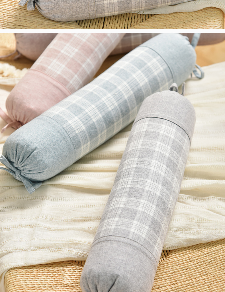 莫兰迪格子系列沙漏圆柱颈椎枕麦壳枕头学生儿童睡眠护颈枕