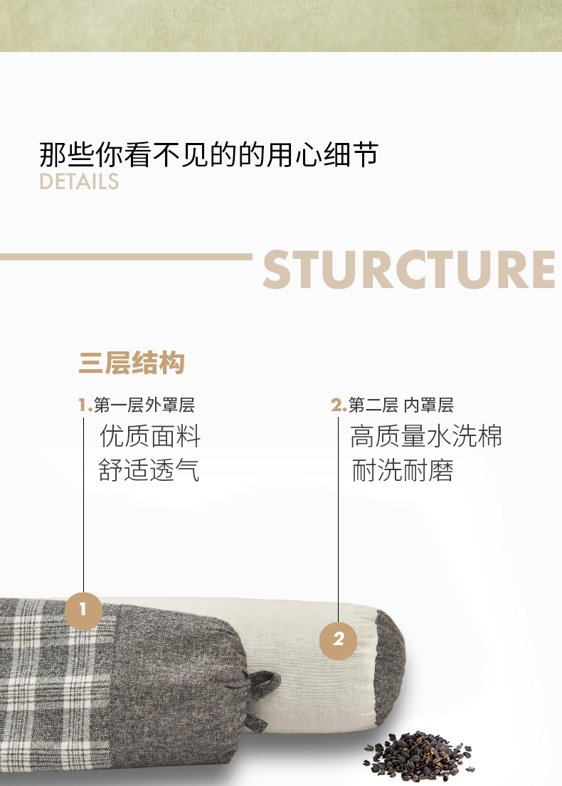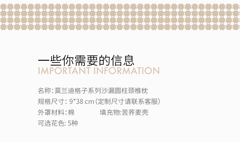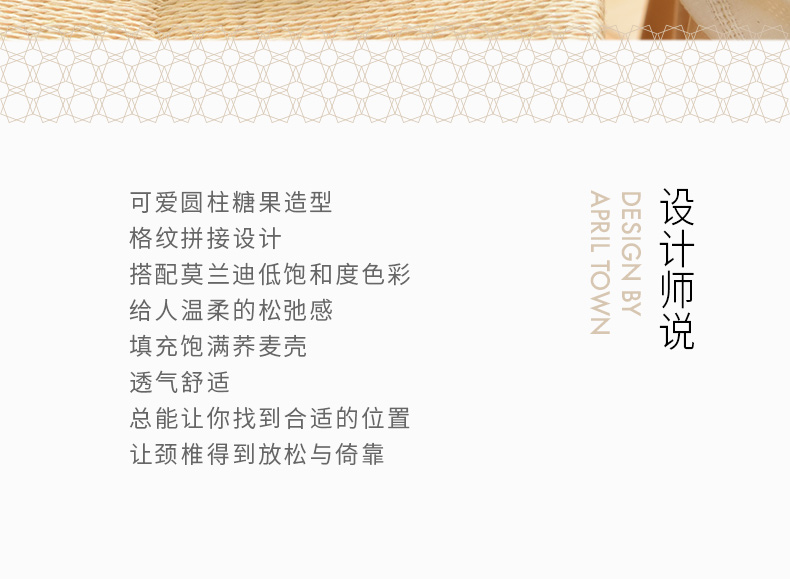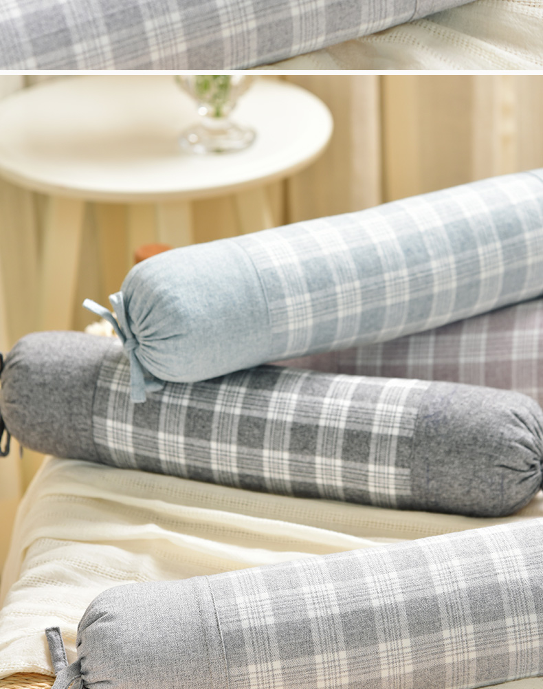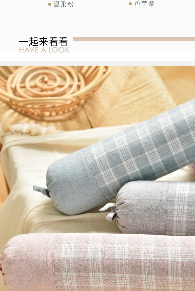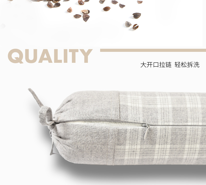莫兰迪格子系列沙漏圆柱颈椎枕麦壳枕头学生儿童睡眠护颈枕