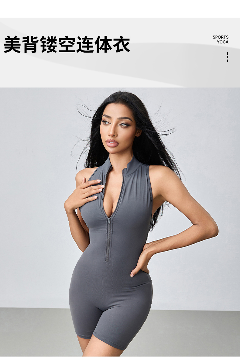 跃牌【轻匀系列】春季高强度运动美背瑜伽连体服拉链裸感紧身连体健身服女DX3112