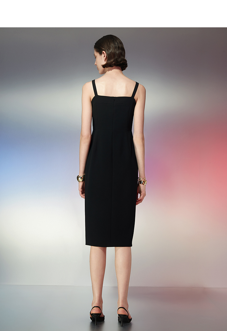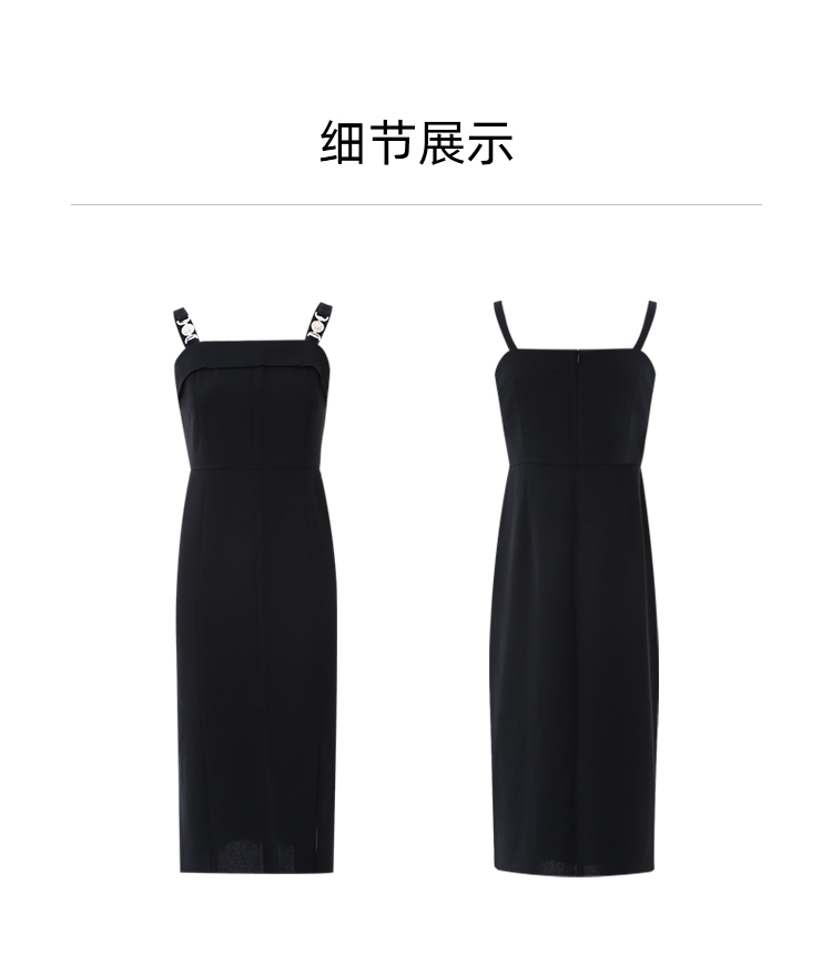 EITIE爱特爱春季新款气质精致吊带收腰开叉显瘦连衣裙7707418