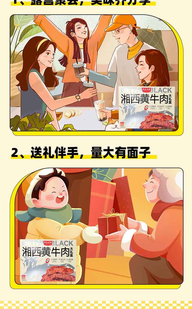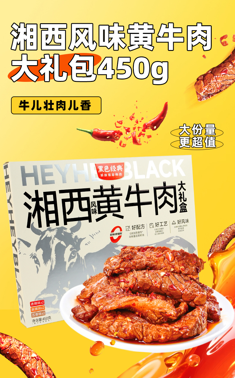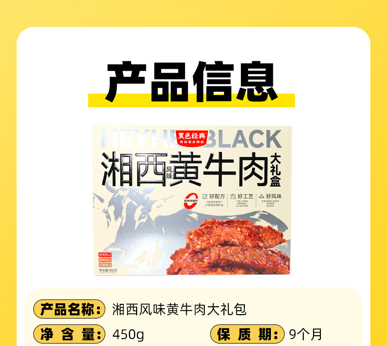【新品升级 送礼绝佳】黑色经典湘西风味黄牛肉大礼盒 450g/盒