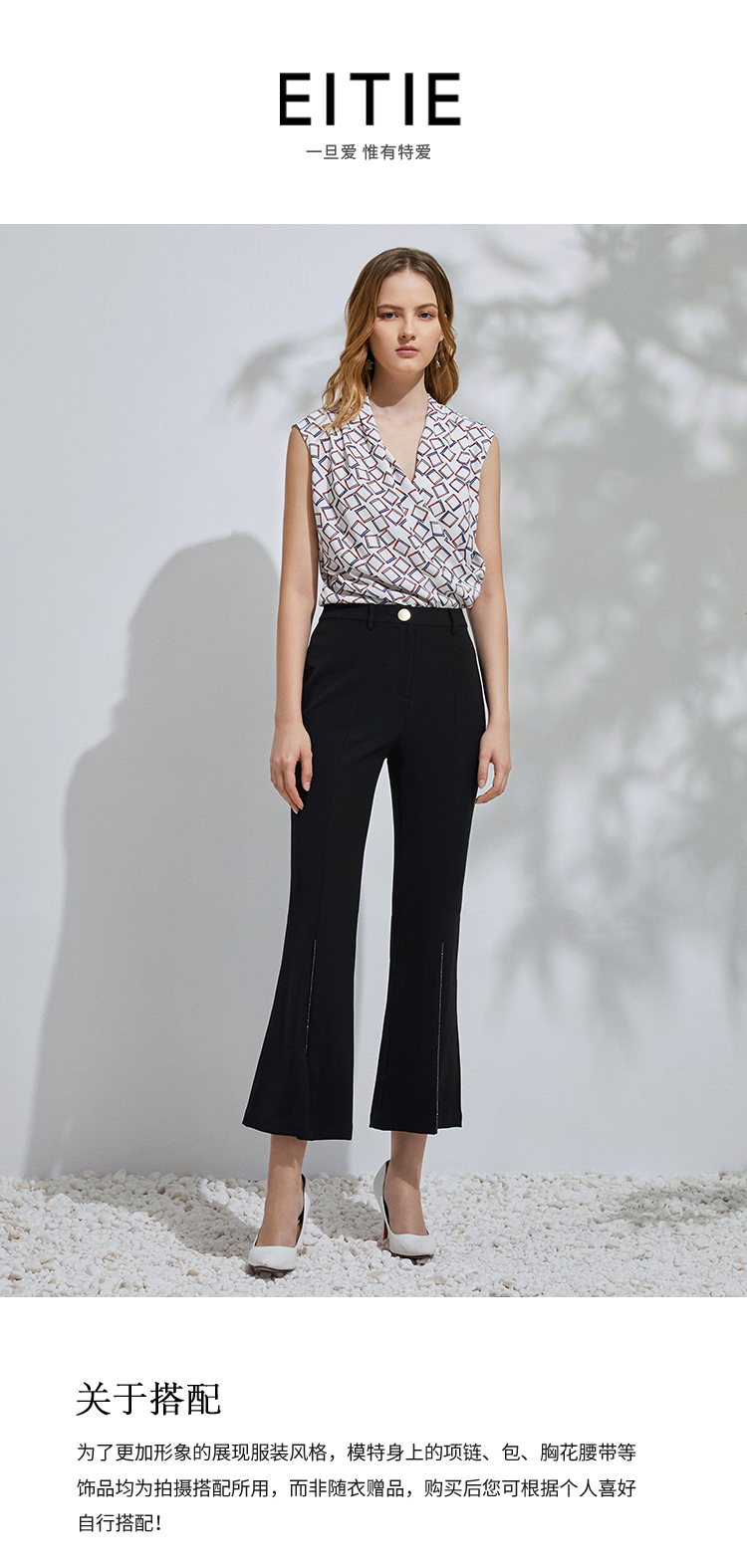 EITIE爱特爱女装夏季V领挂脖镂空时尚喇叭袖雪纺衫小上衣5913610