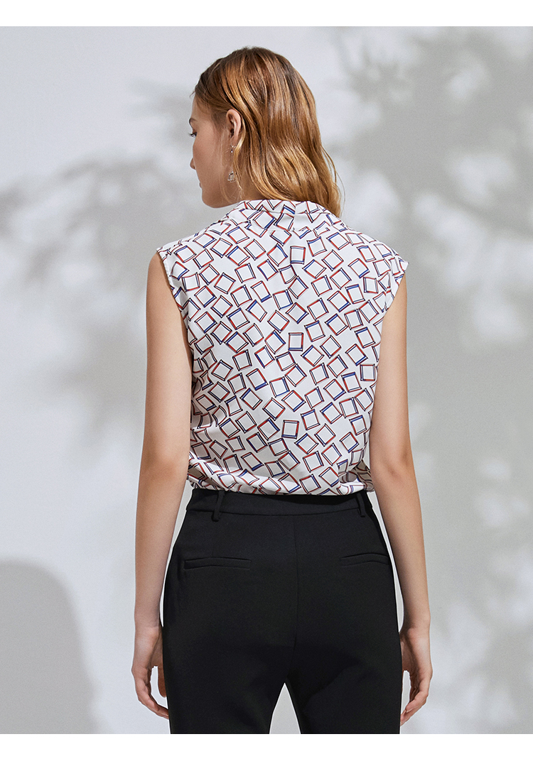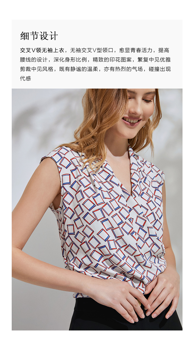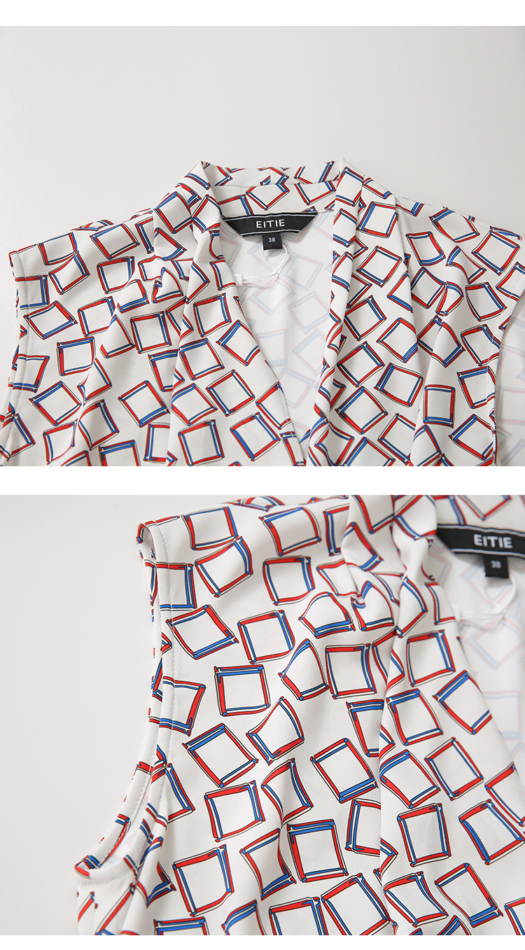 EITIE爱特爱春季新款洋气复古V领一片式包肩袖印花显瘦短上衣