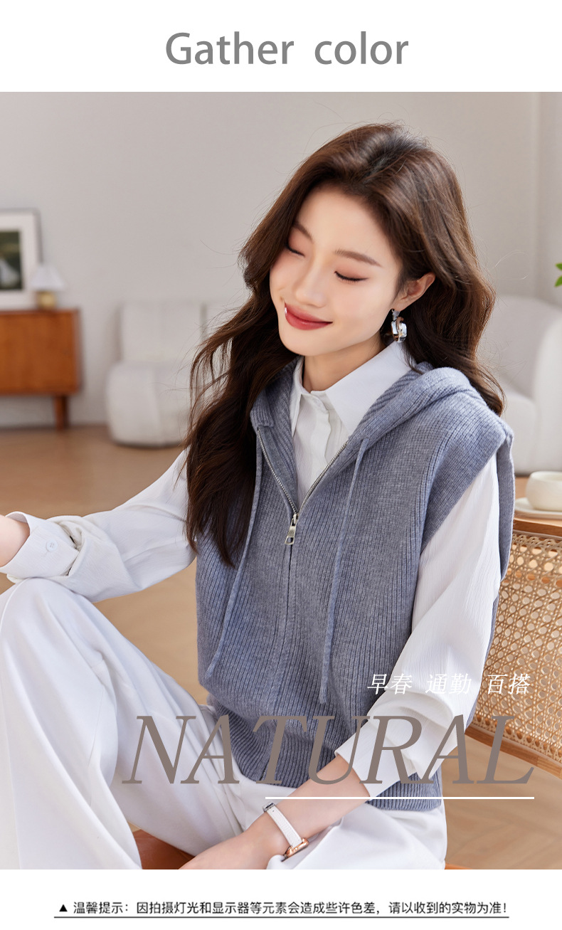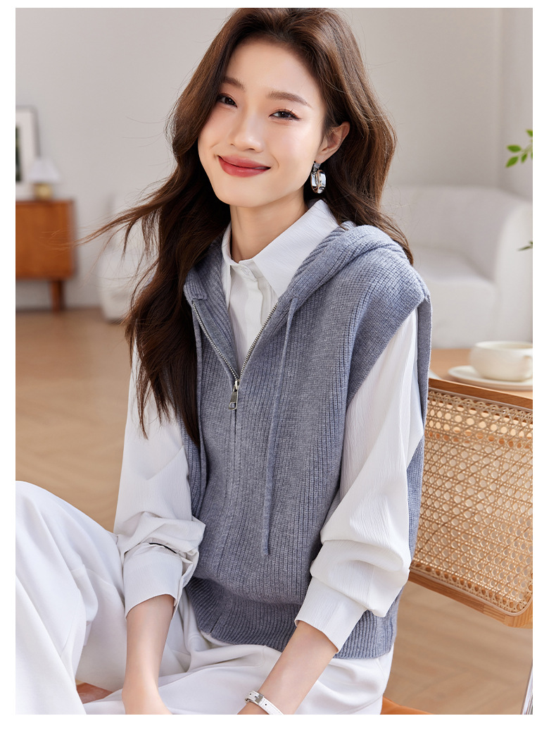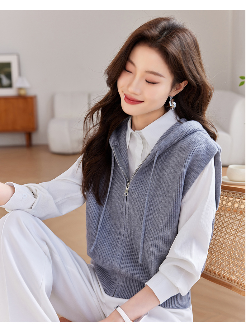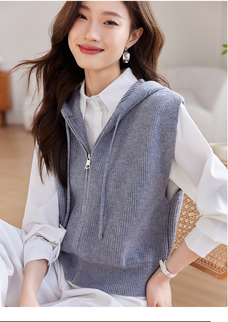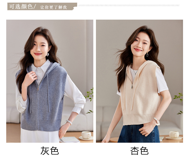 连帽拉链针织马甲,短款外穿坎肩无袖高腰毛衣CC-J-501