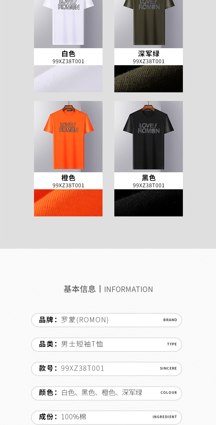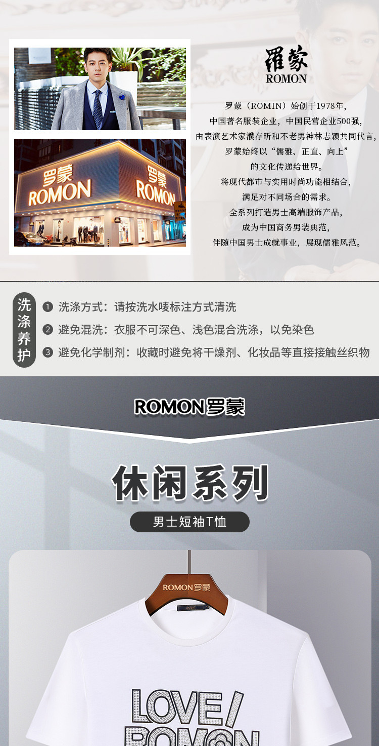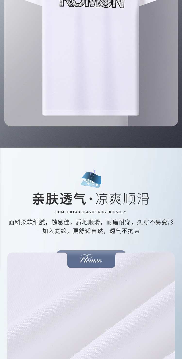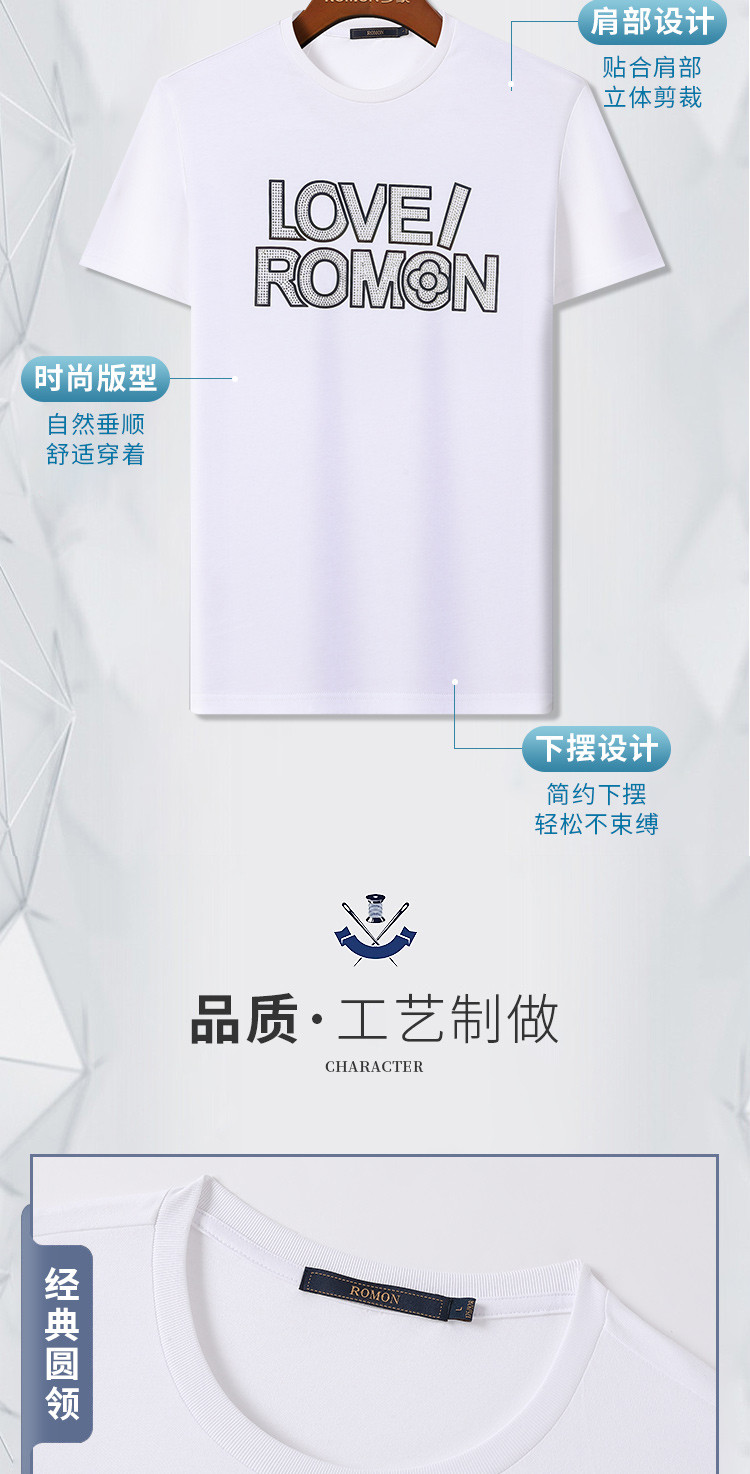 【全棉透气】罗蒙男士t恤简约休闲舒适柔软通勤百搭经典圆领短袖t恤