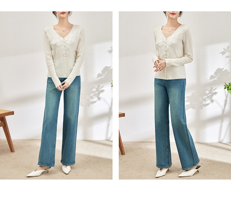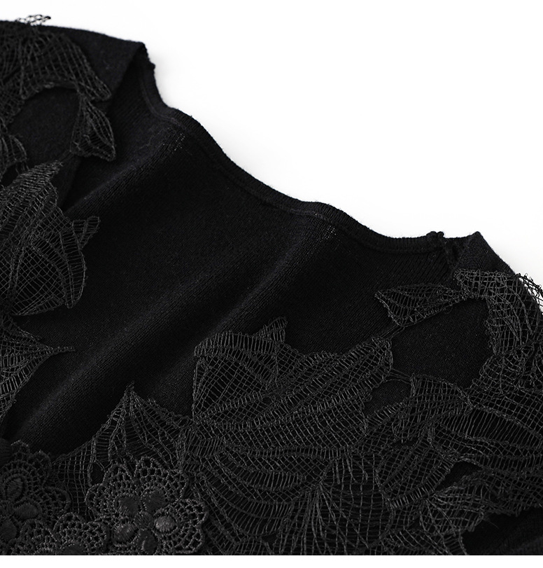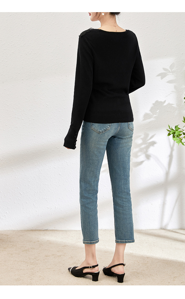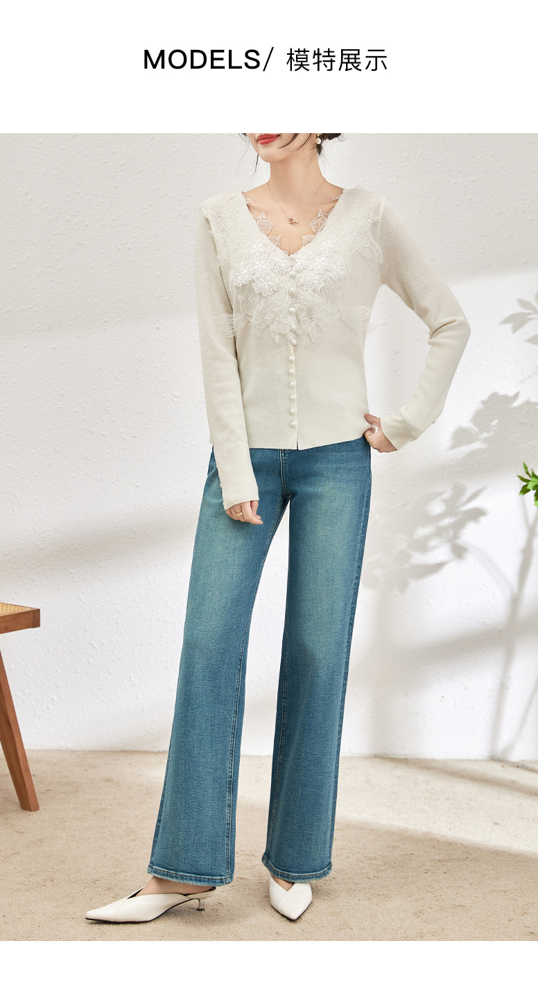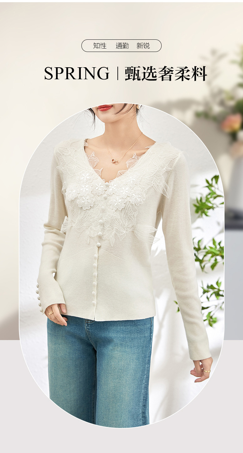 蕾丝拼接设计感别致内搭,打底长袖气质V领修身针织衫WLZD-2401105