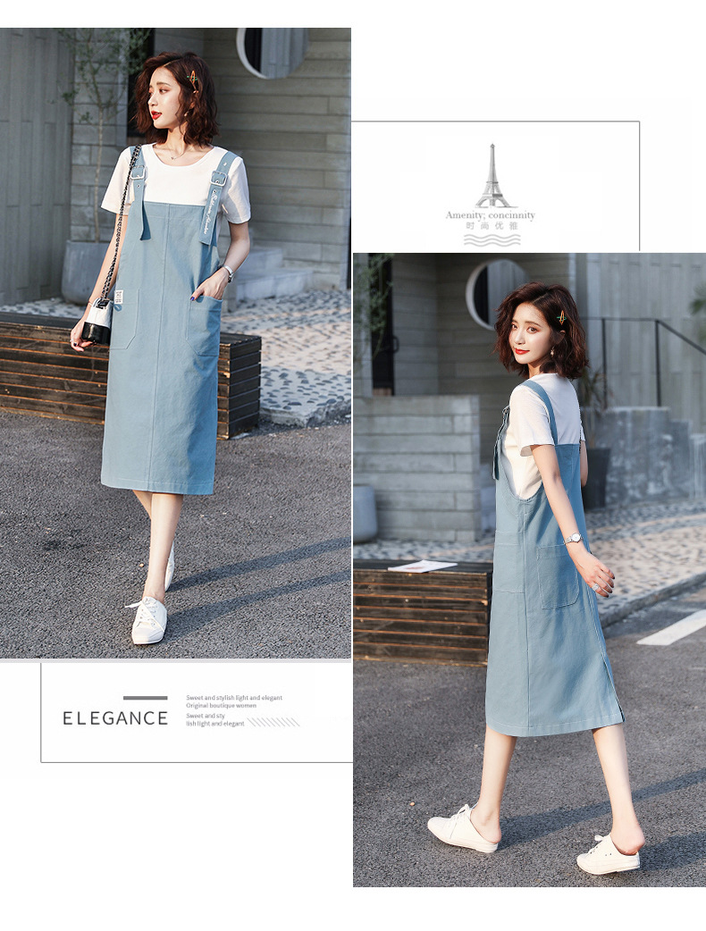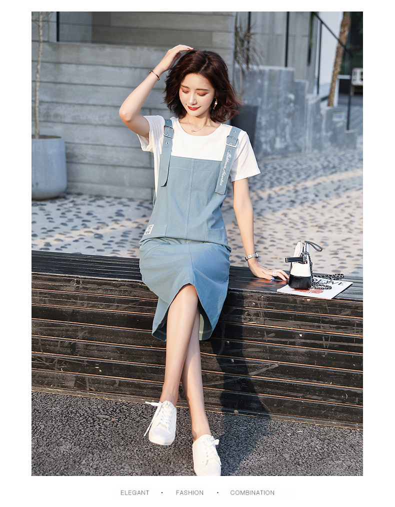 WZNH-HSYL1913时尚新款牛仔背带裙两件套减龄女套裙