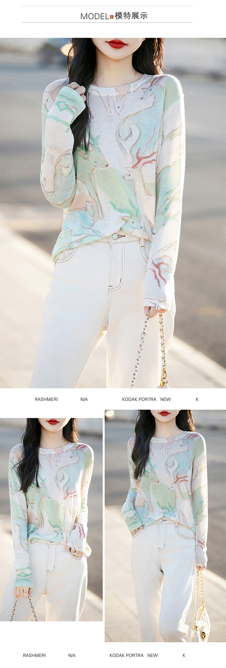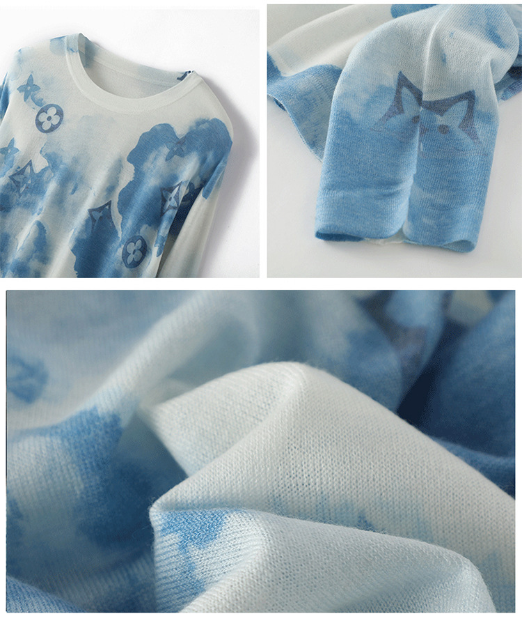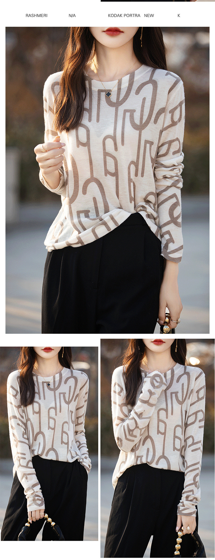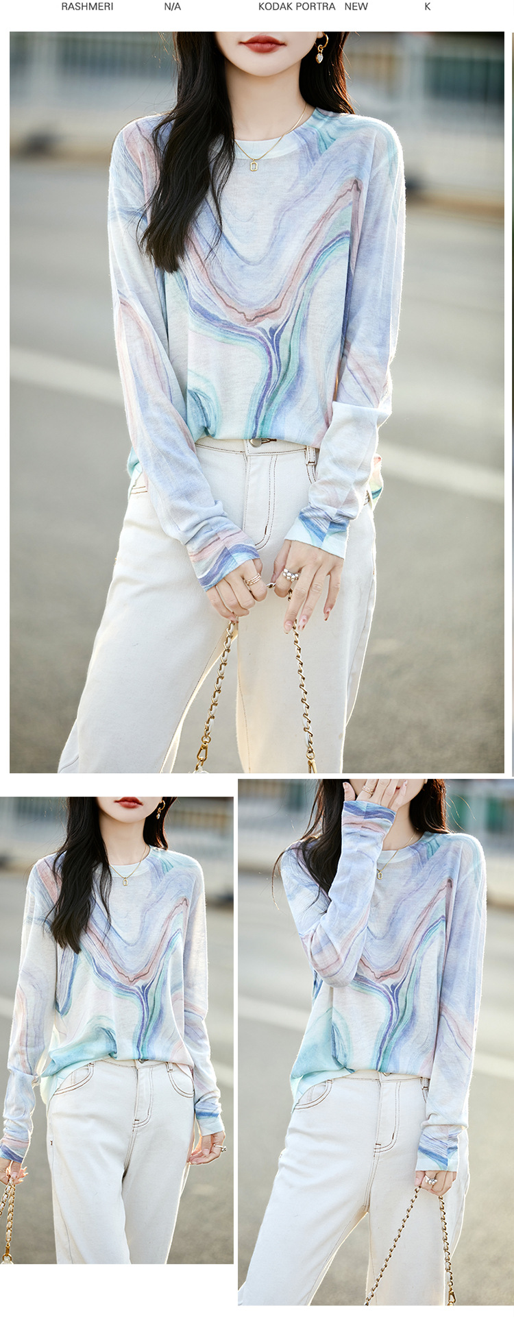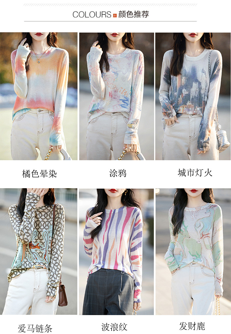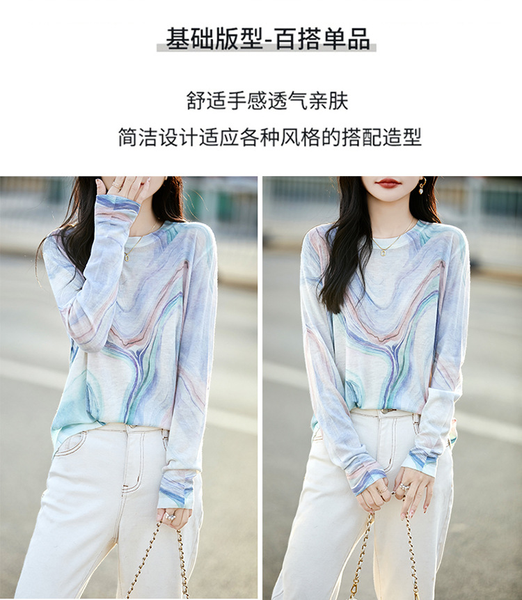 丁摩【120支水溶】精纺超细水溶羊毛水墨画圆领亲肤薄款针织打底衫AL2507