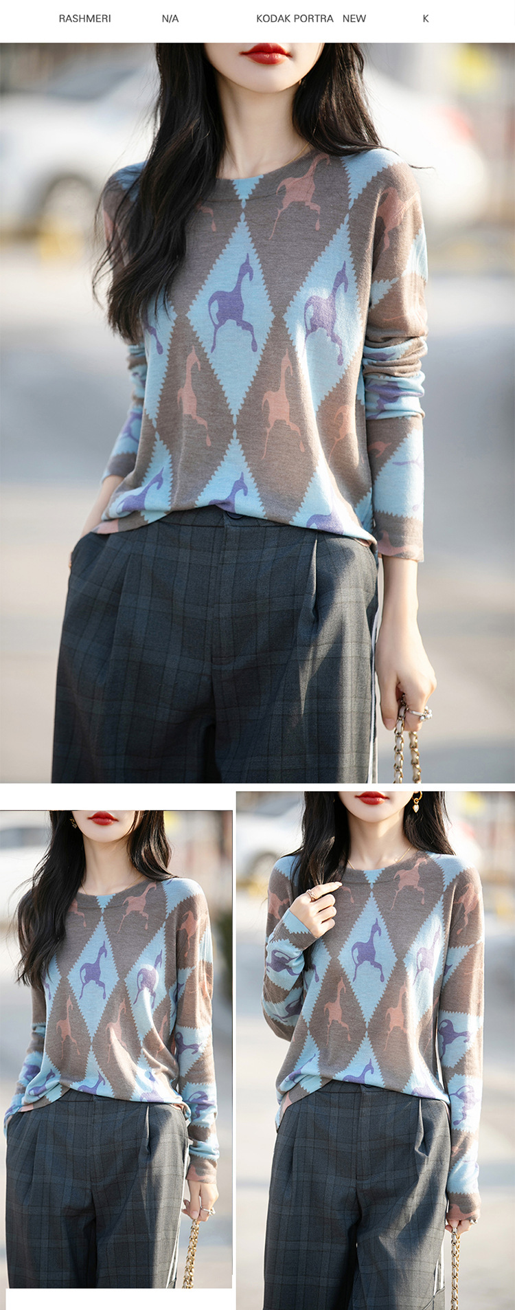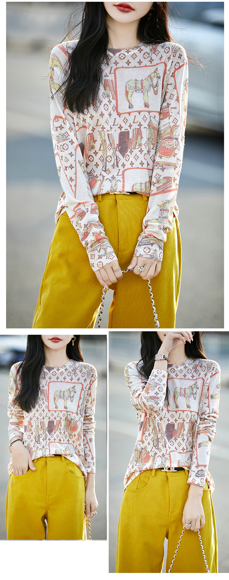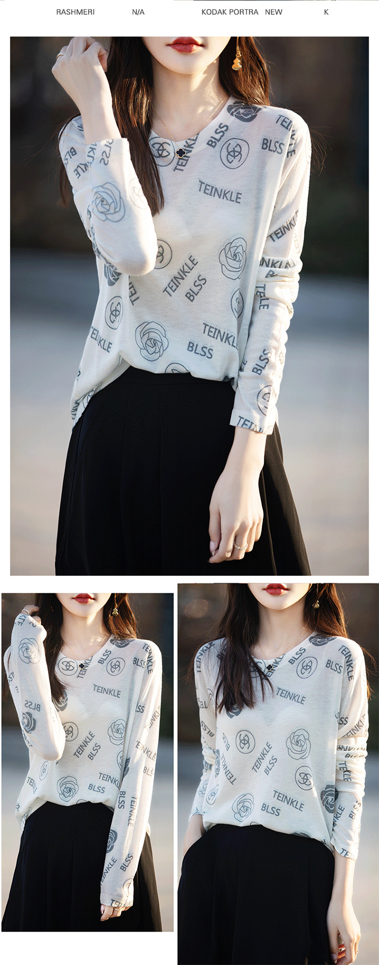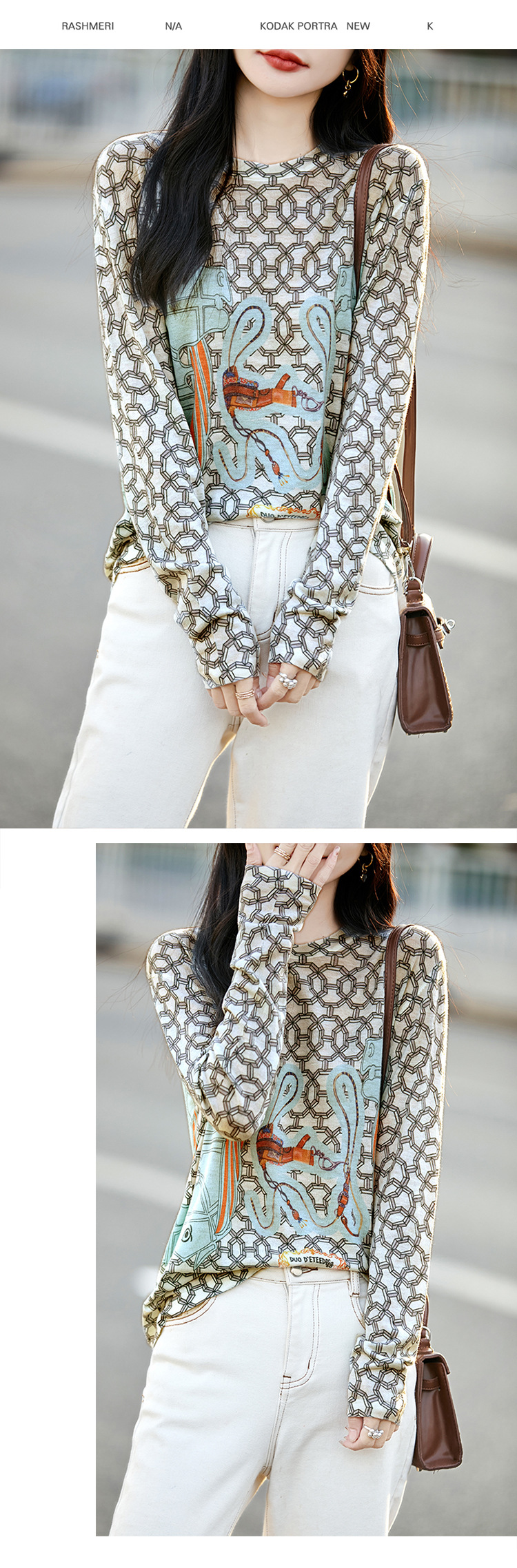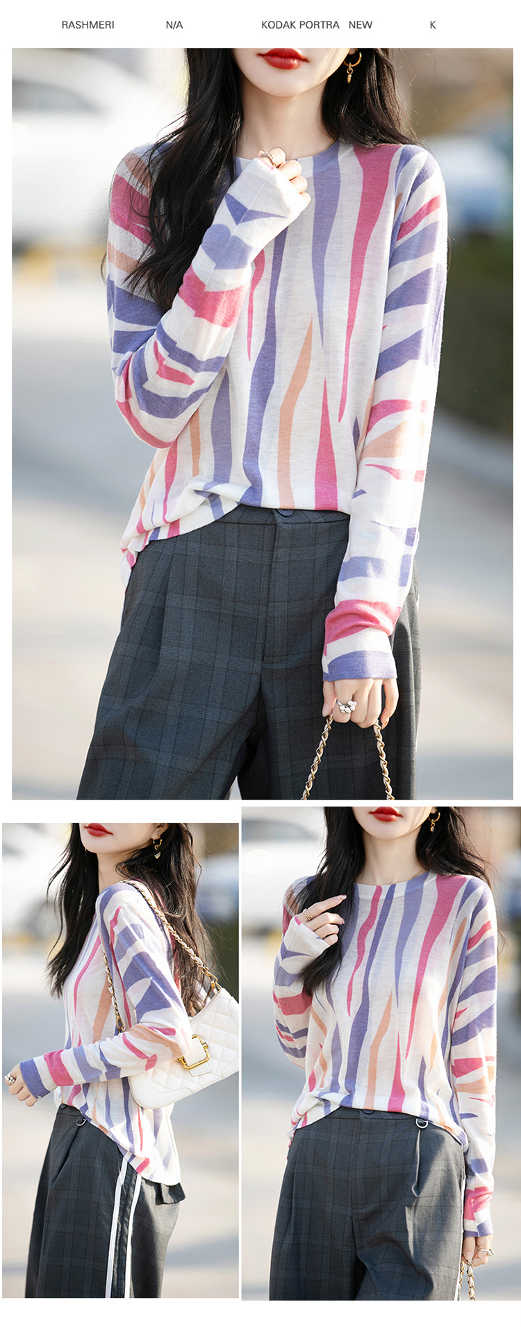 丁摩【120支水溶】精纺超细水溶羊毛水墨画圆领亲肤薄款针织打底衫AL2507