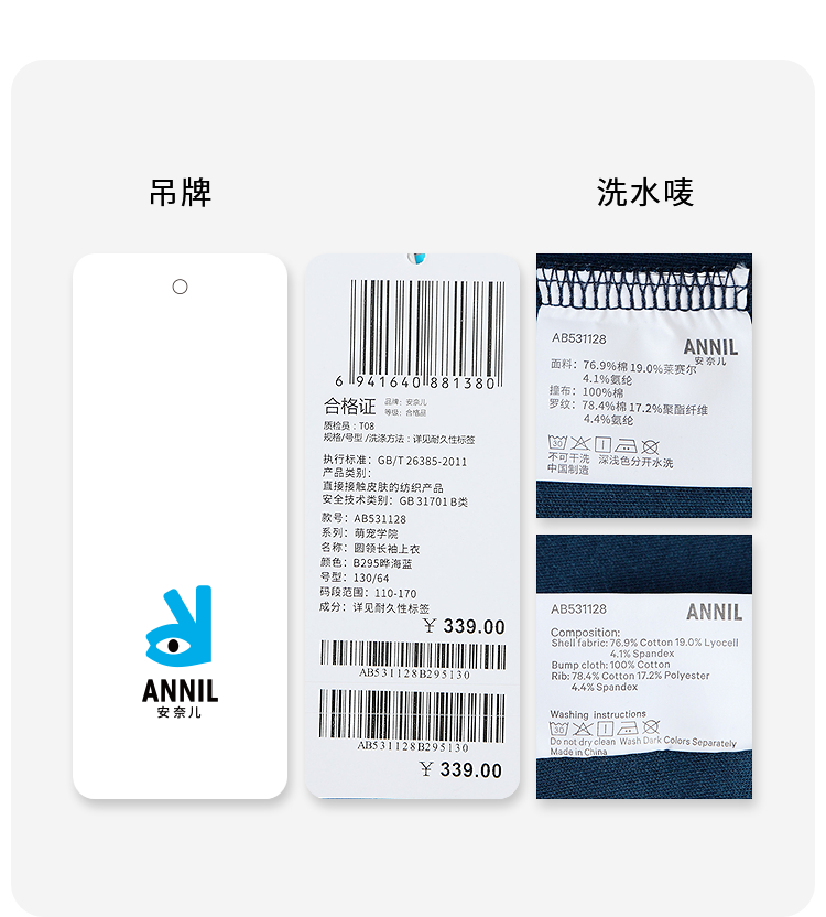 【实体店同款】男童圆领长袖上衣秋季新款安奈儿童装AB531128