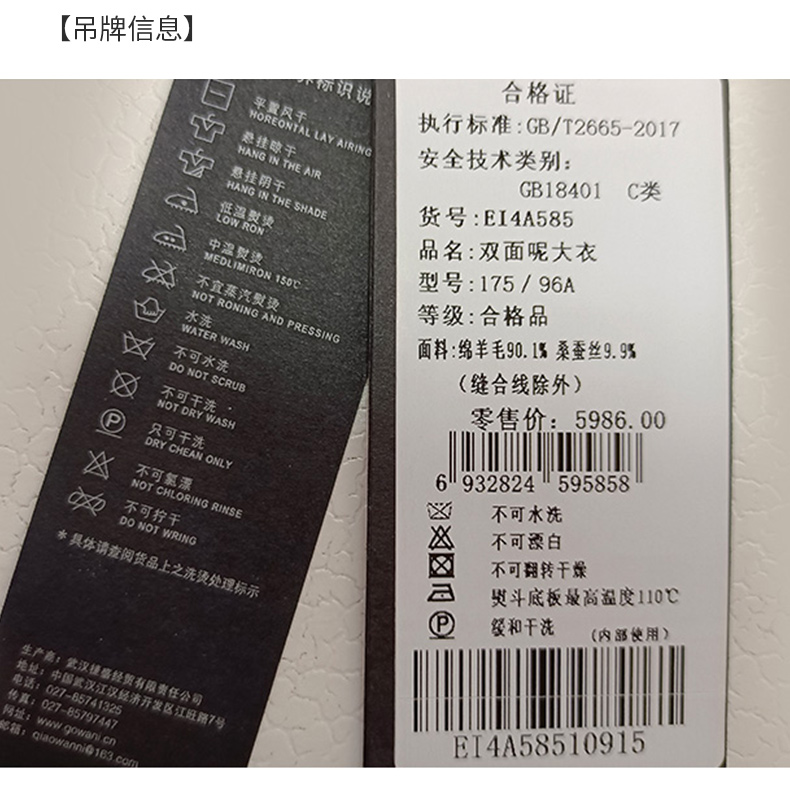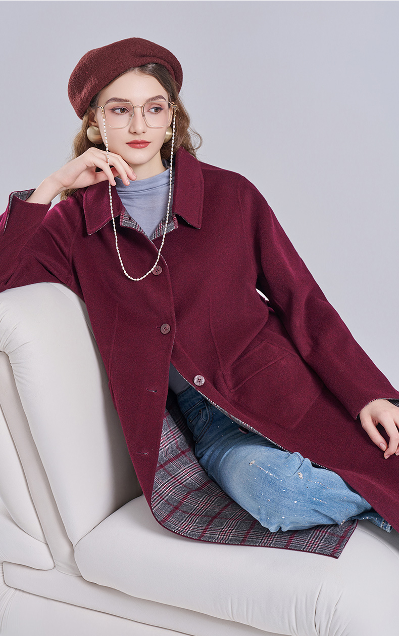乔万尼新款绵羊毛中长款大衣高级感双面尼EI4A585