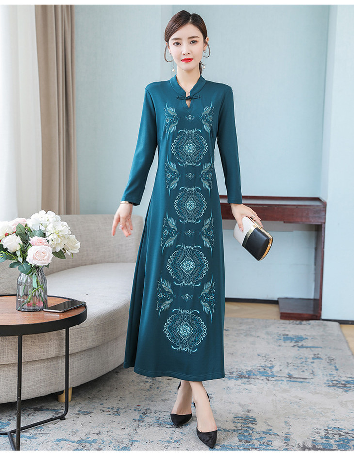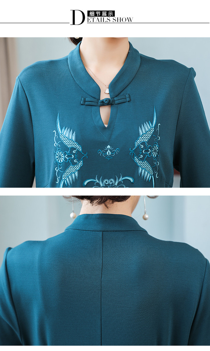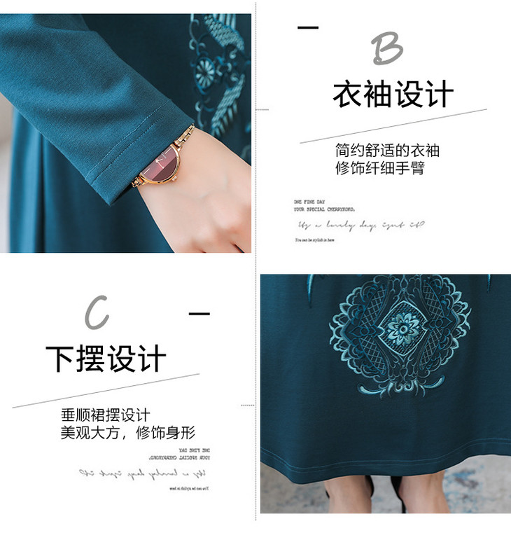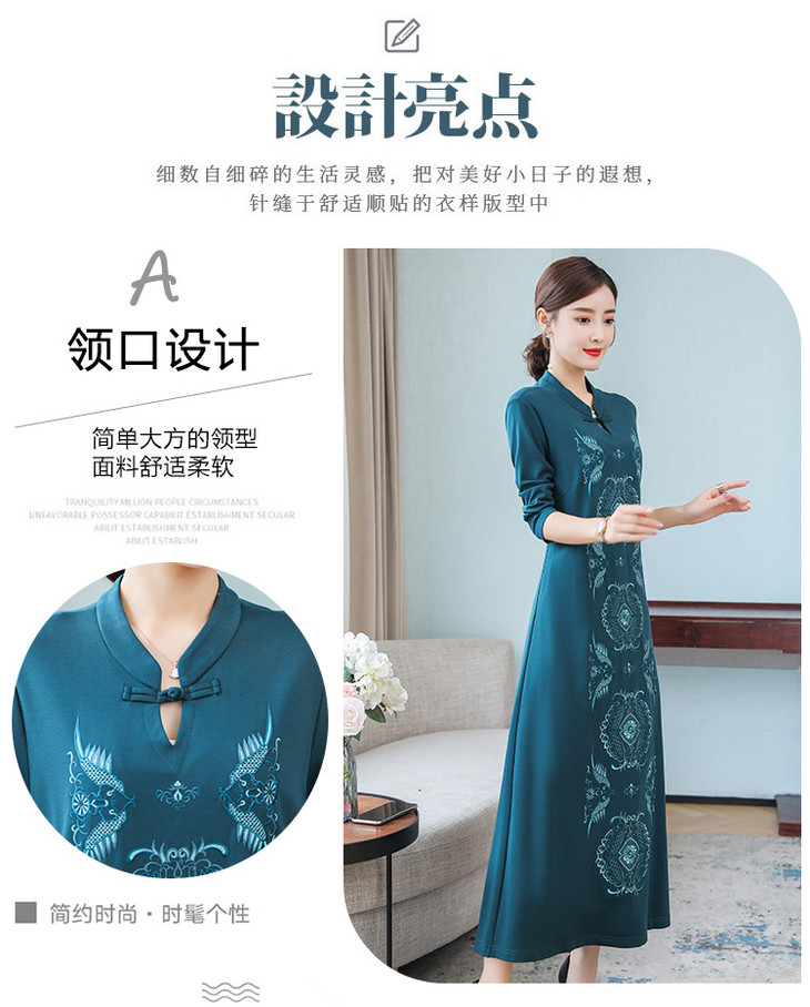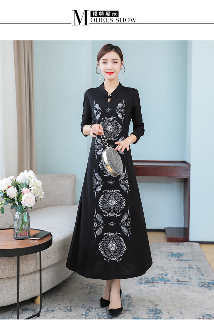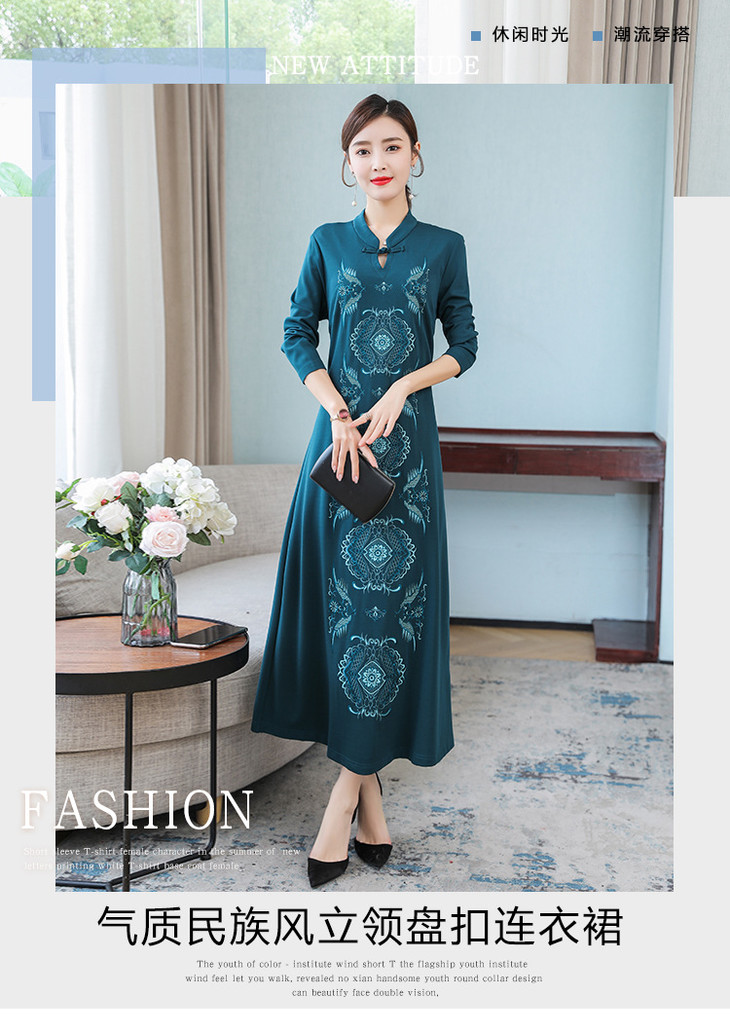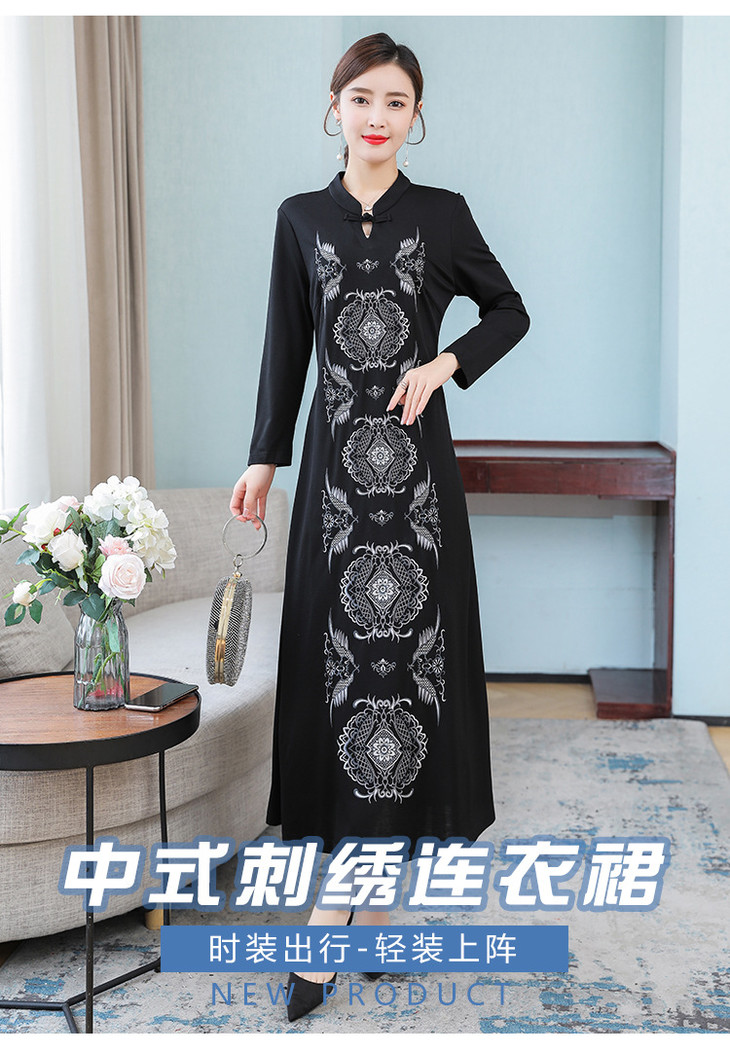 DJ-FS8069秋季新款中式立领盘扣刺绣连衣裙