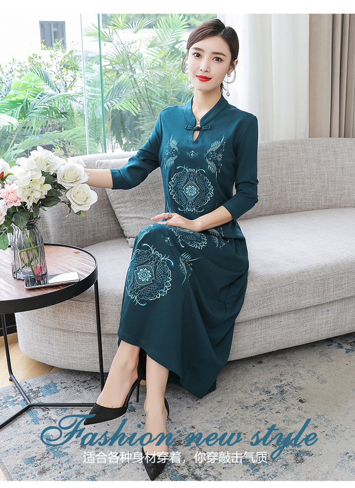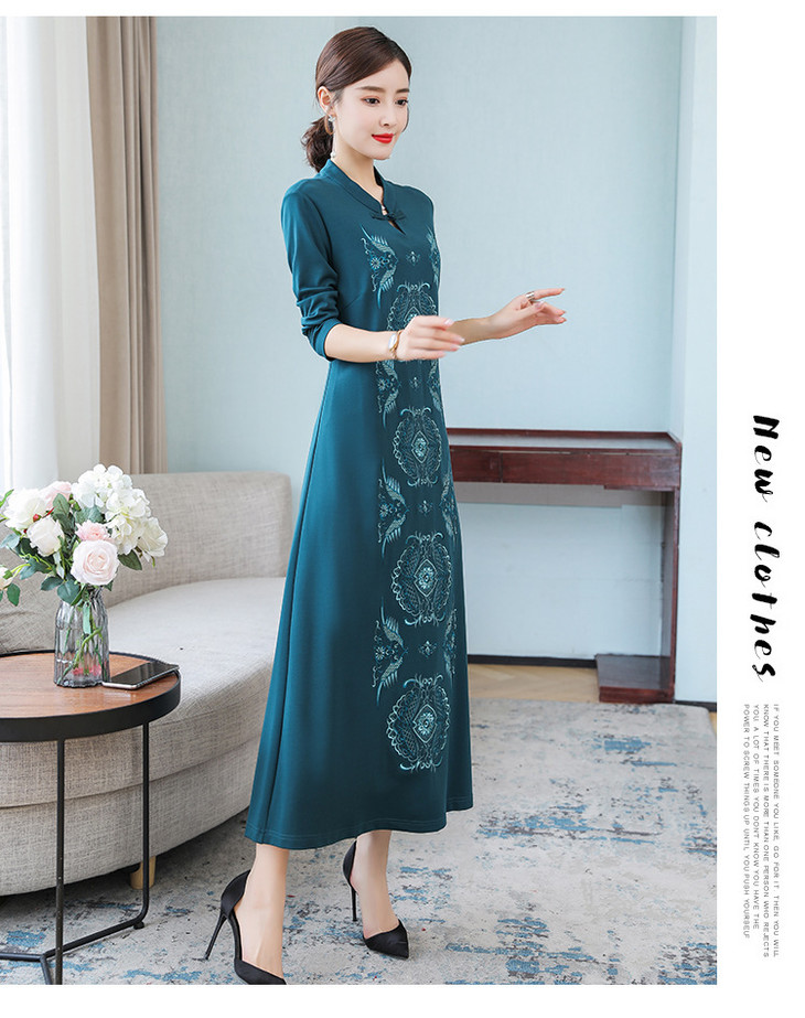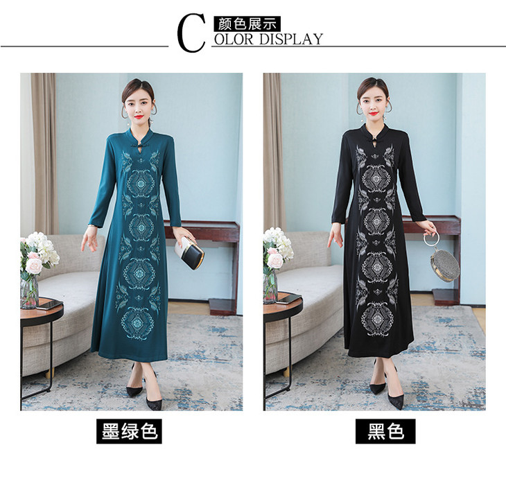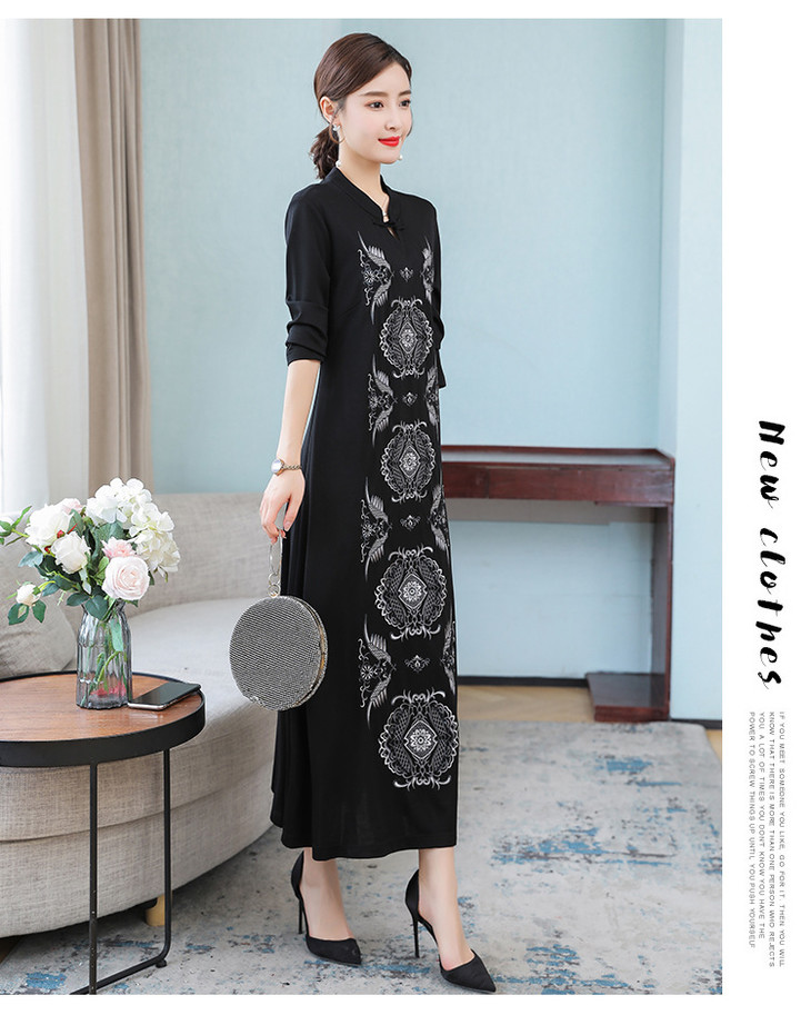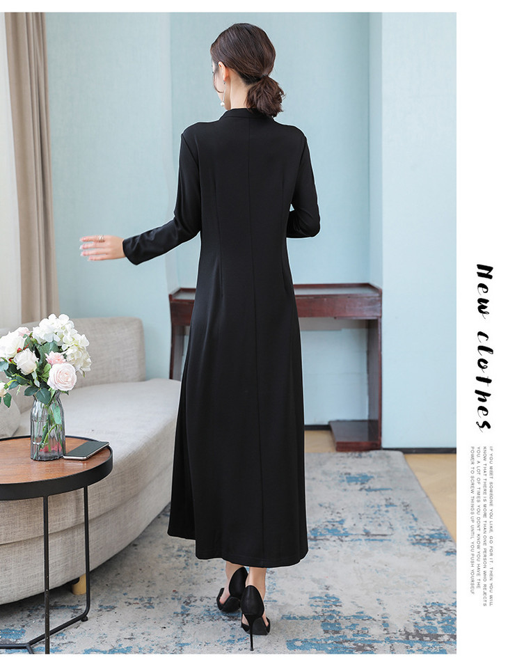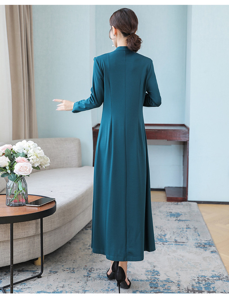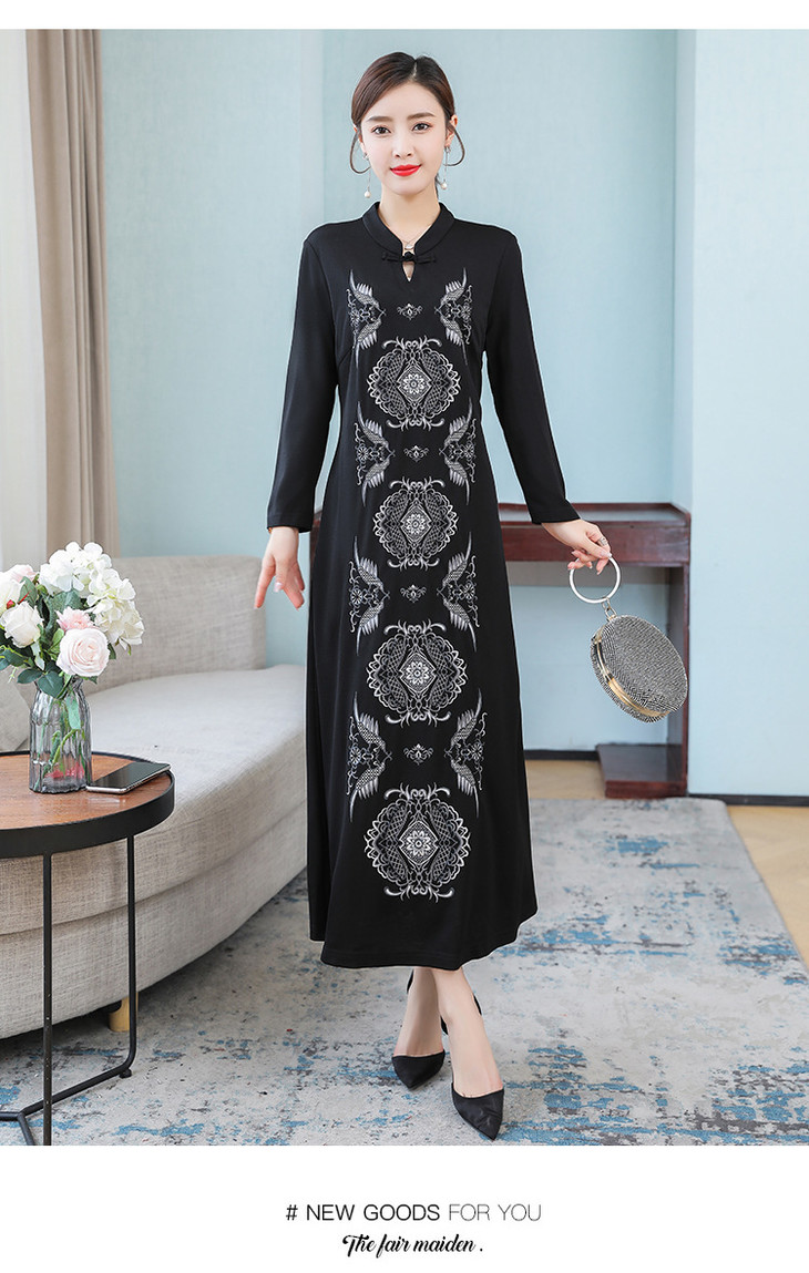 DJ-FS8069秋季新款中式立领盘扣刺绣连衣裙