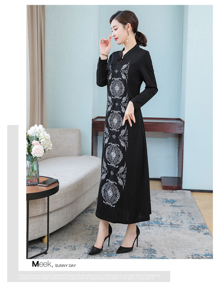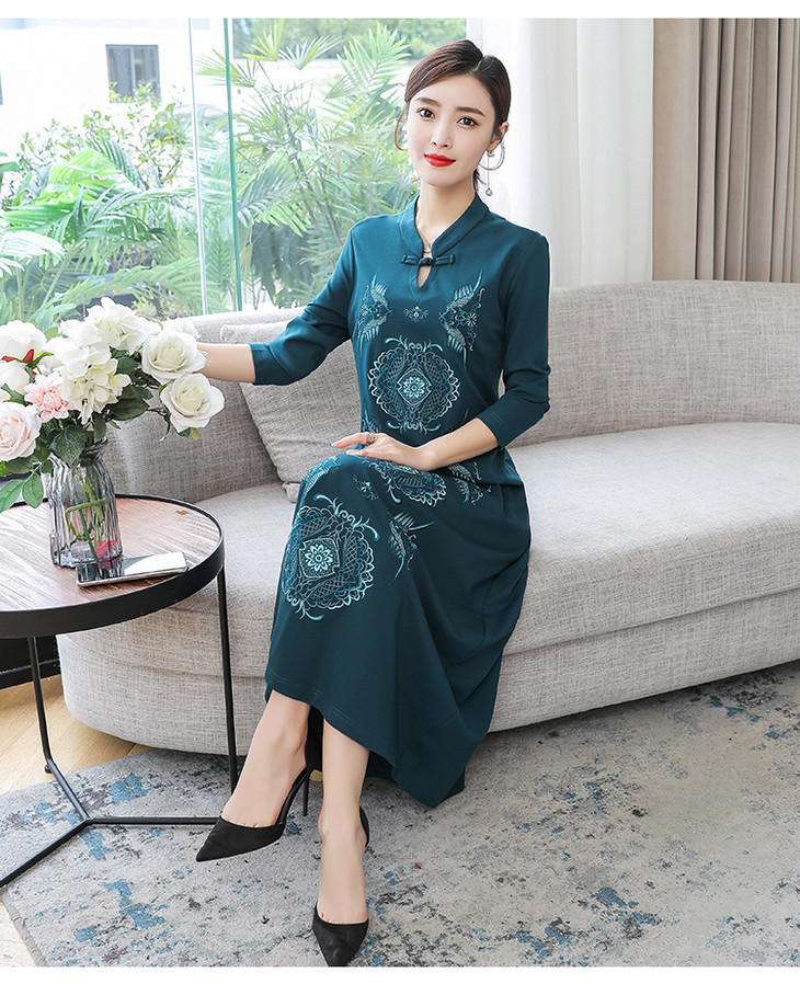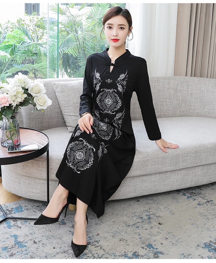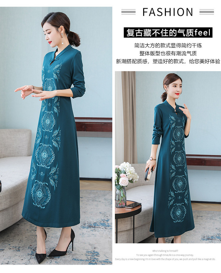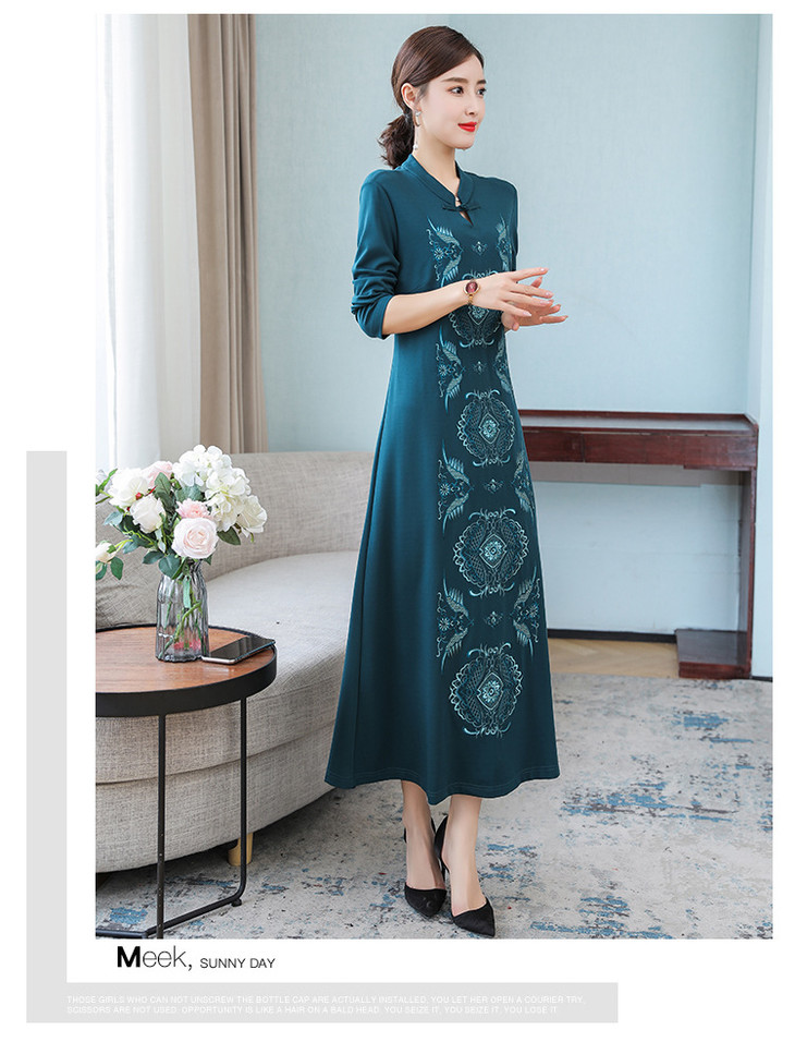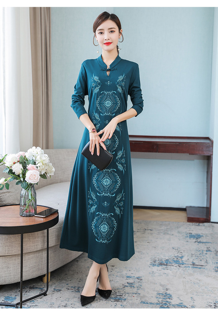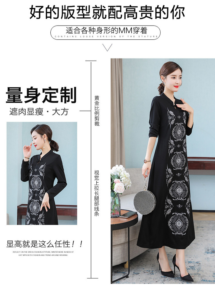 DJ-FS8069秋季新款中式立领盘扣刺绣连衣裙