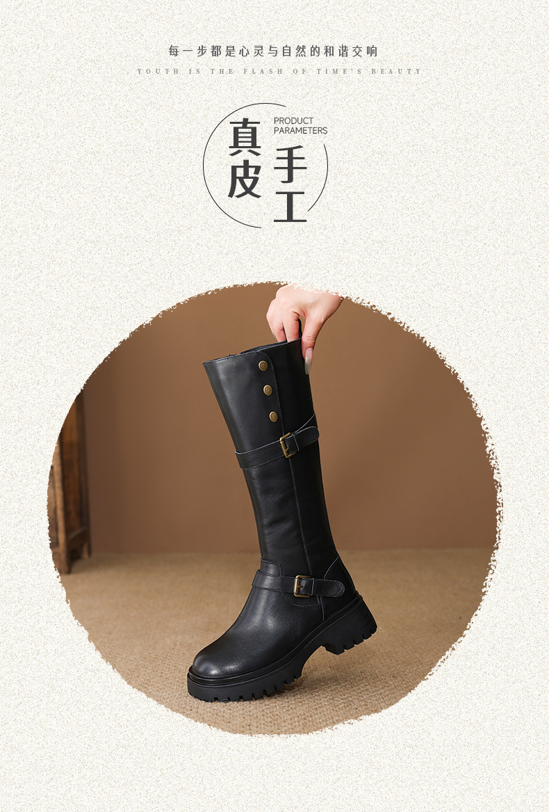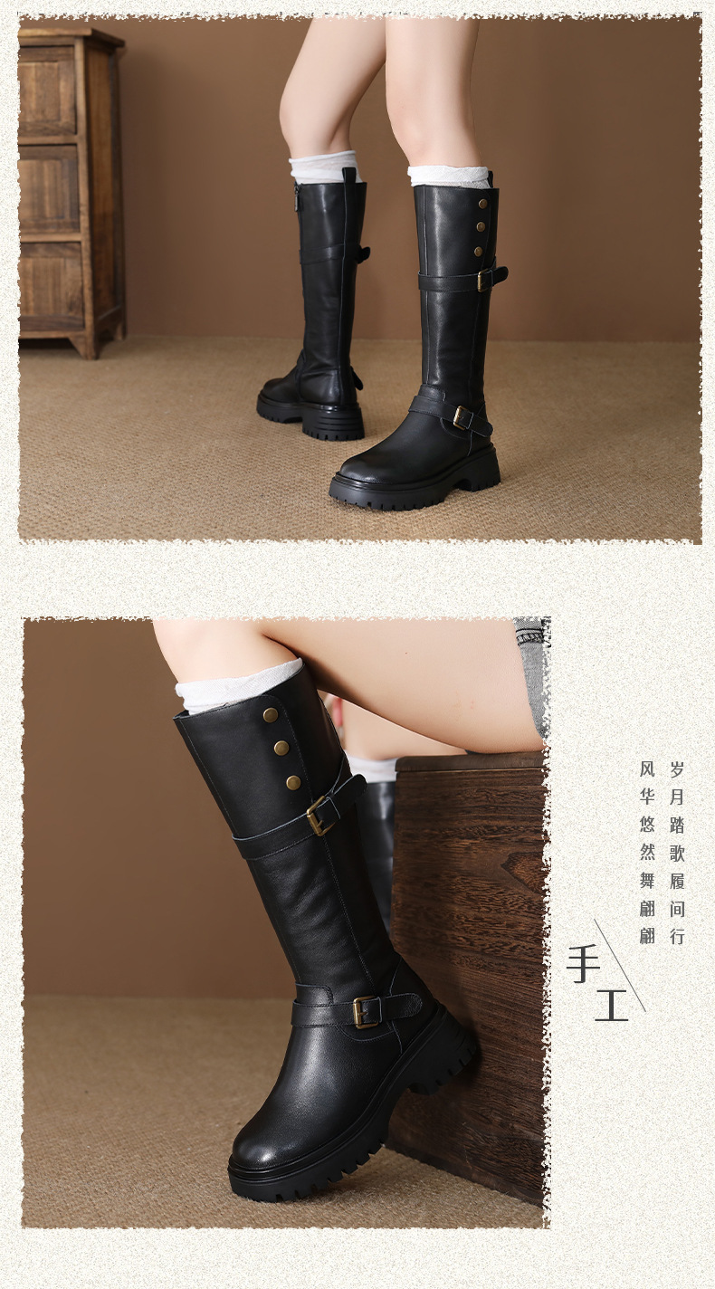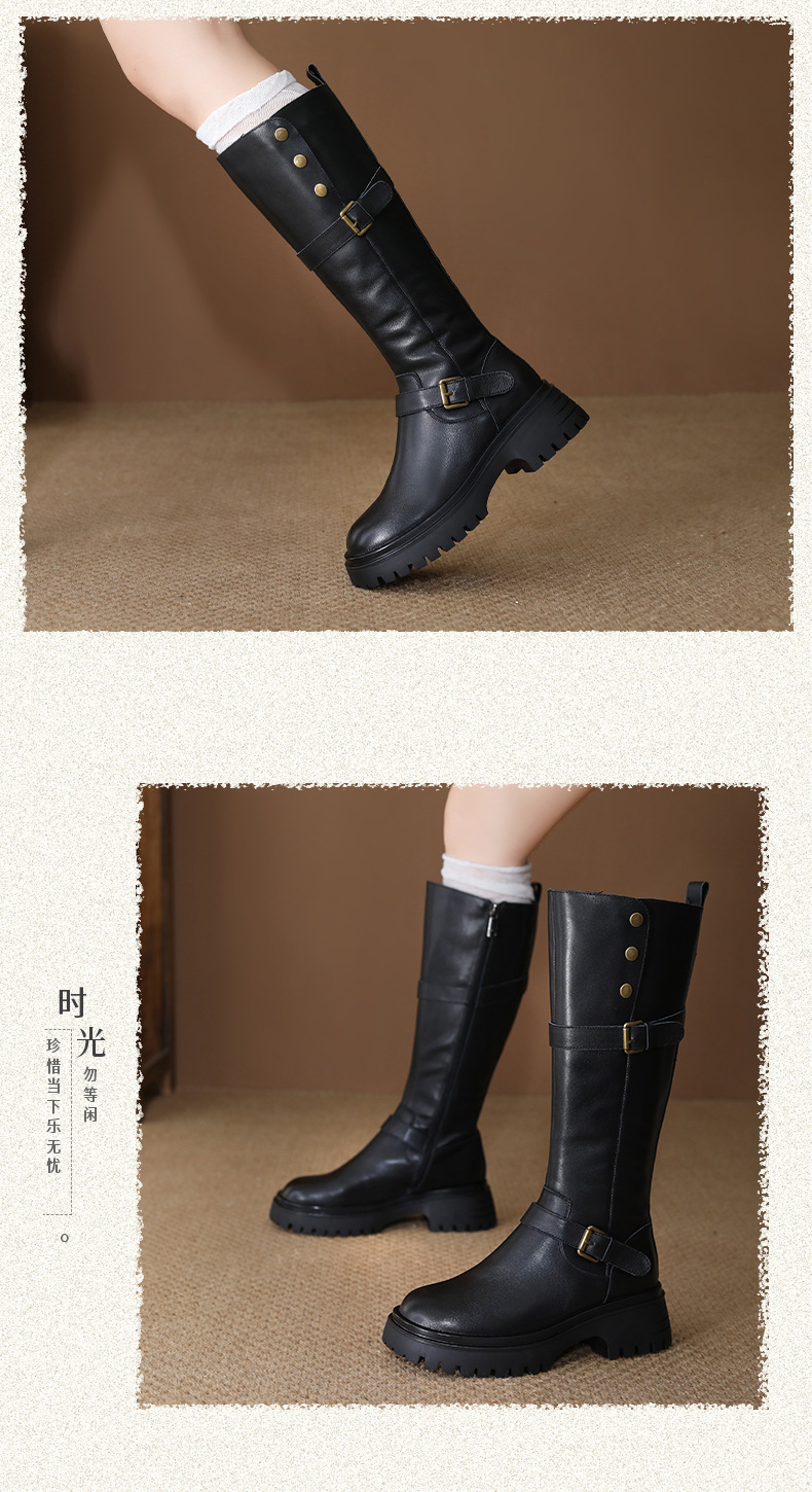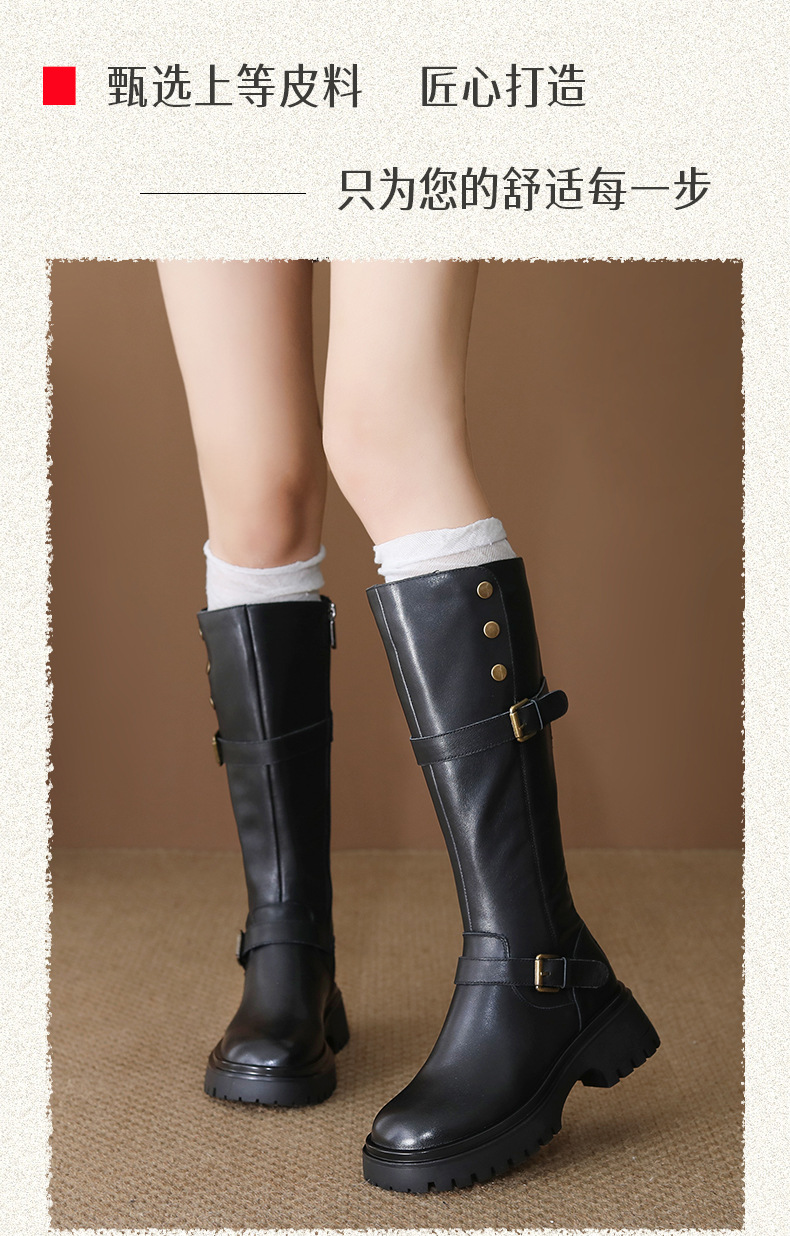 FR 85218英伦风长筒靴不过膝长靴皮带扣显瘦骑士靴