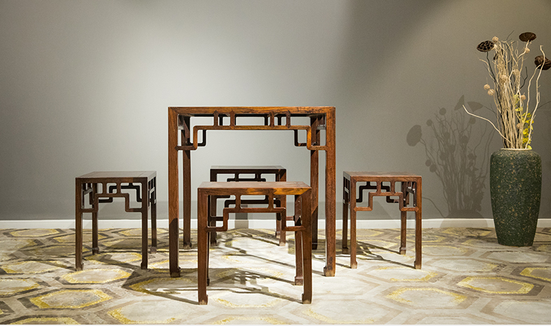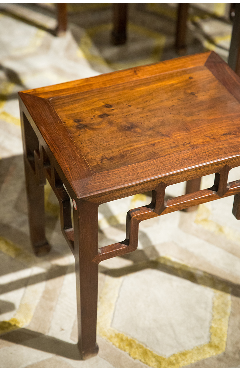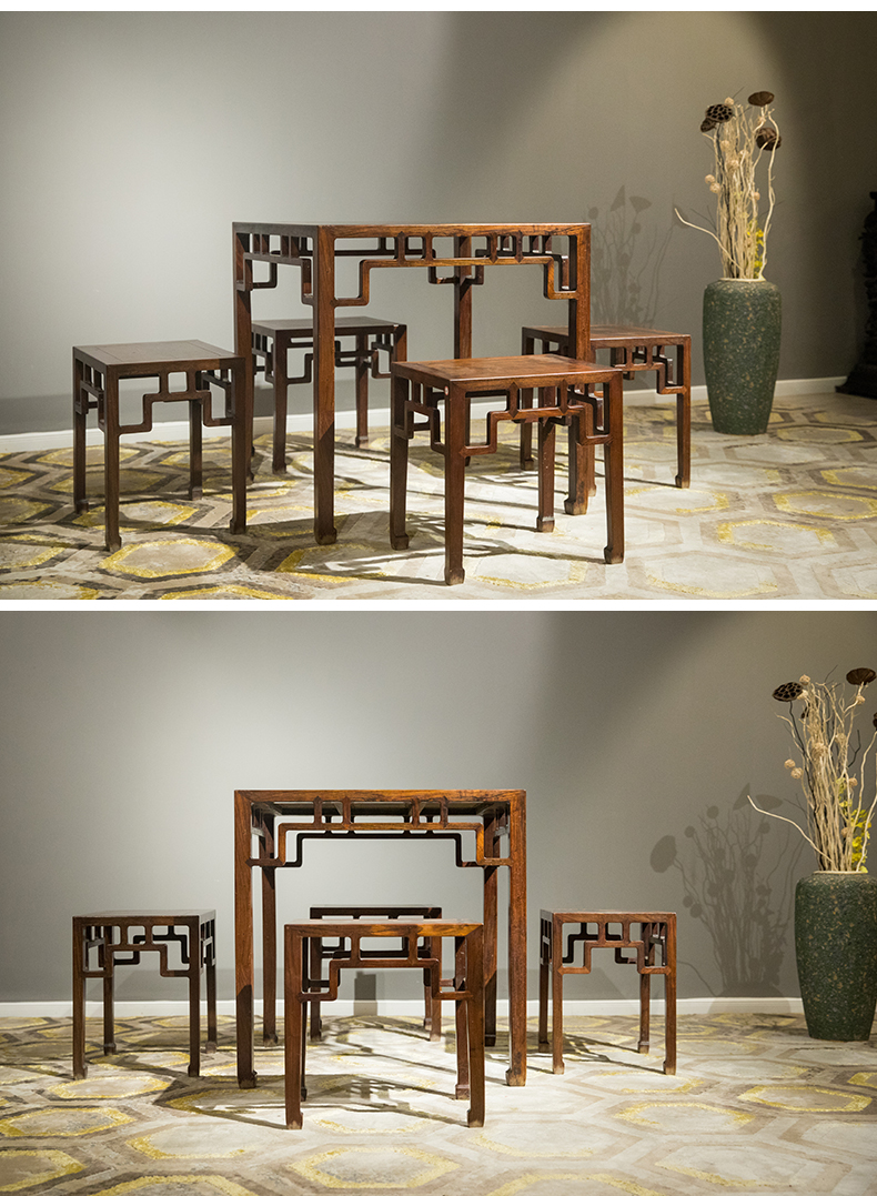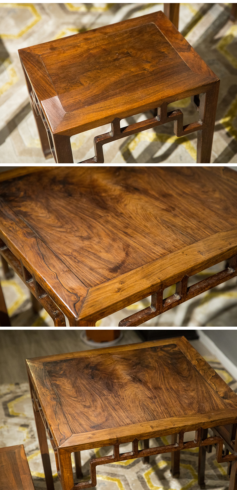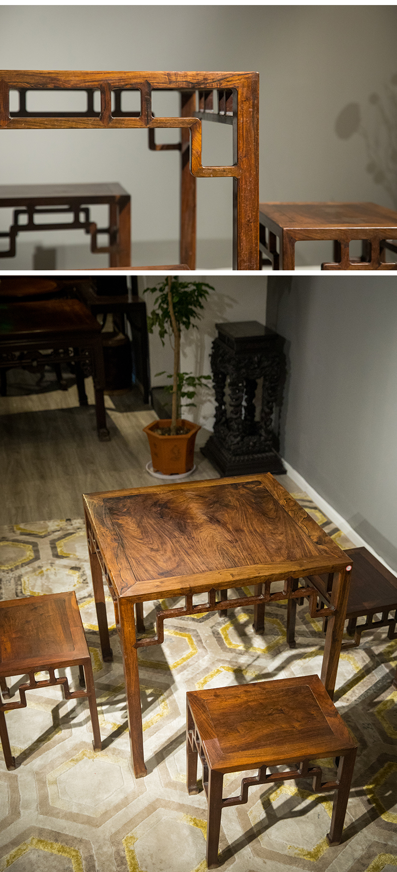 清 红木罗锅枨矮佬四面平方桌方凳成套(一桌四凳)