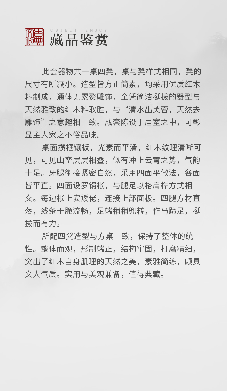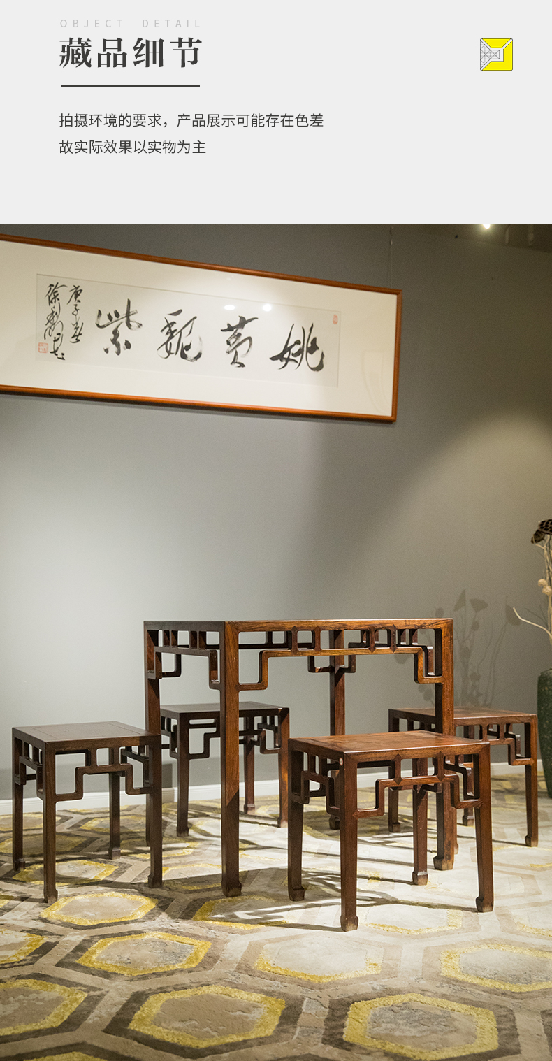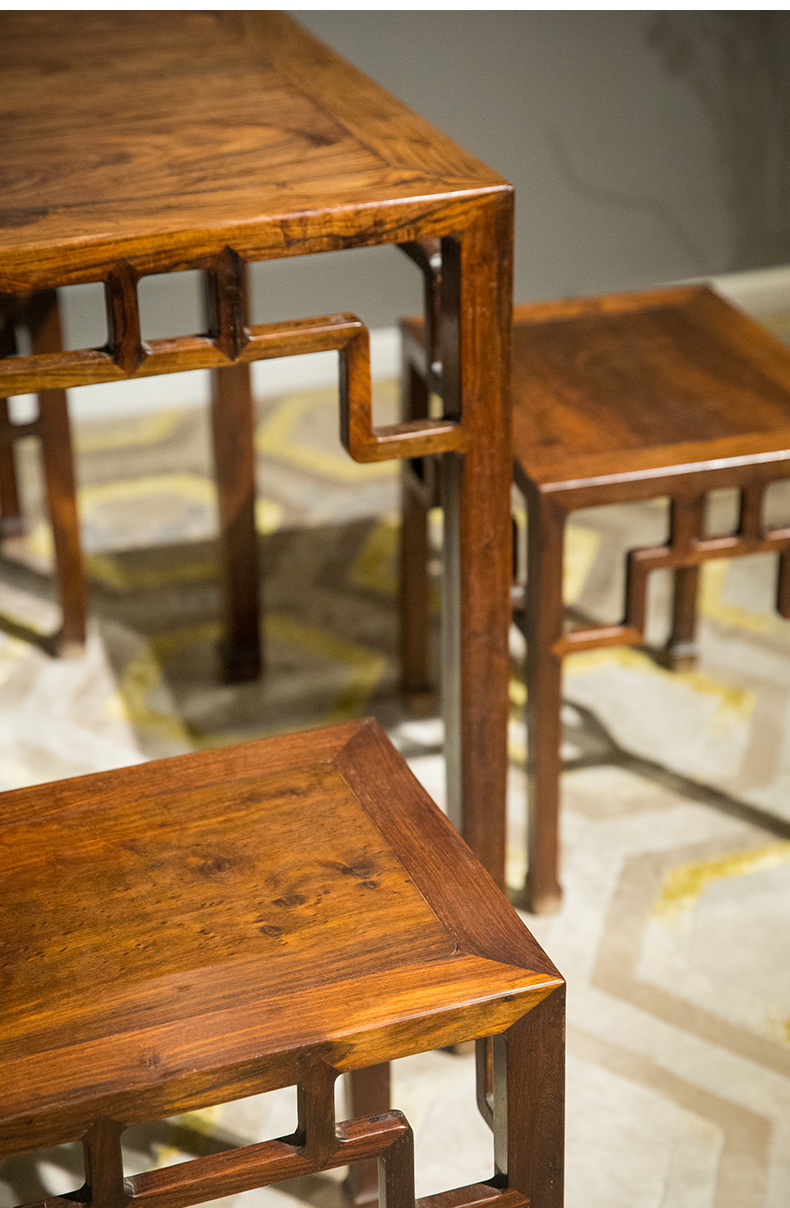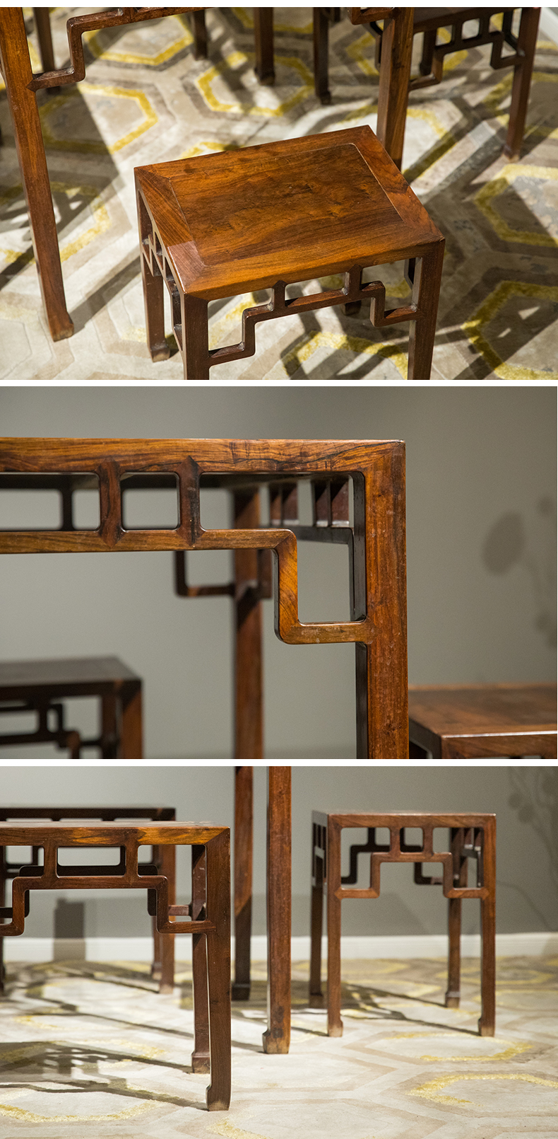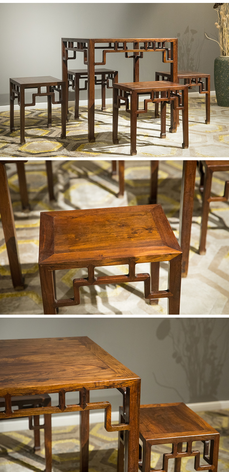 清 红木罗锅枨矮佬四面平方桌方凳成套(一桌四凳)