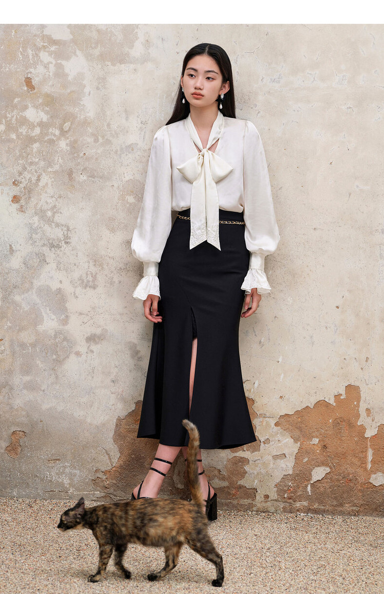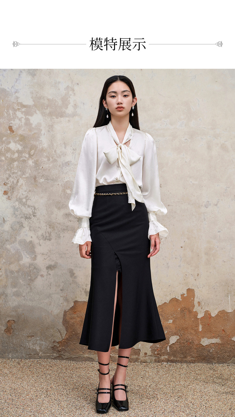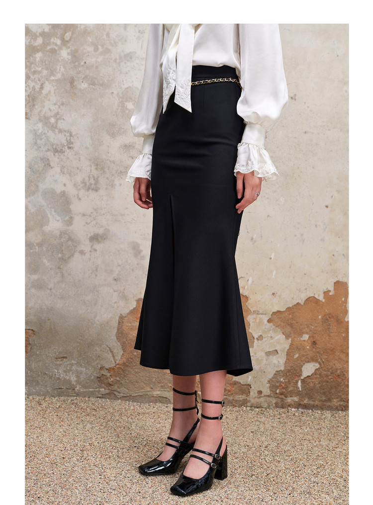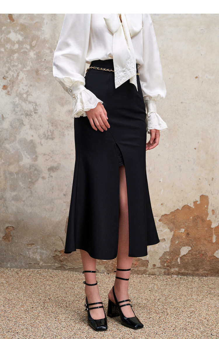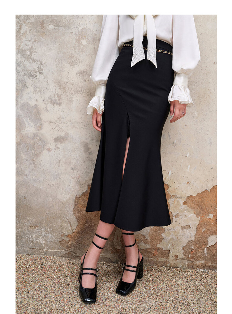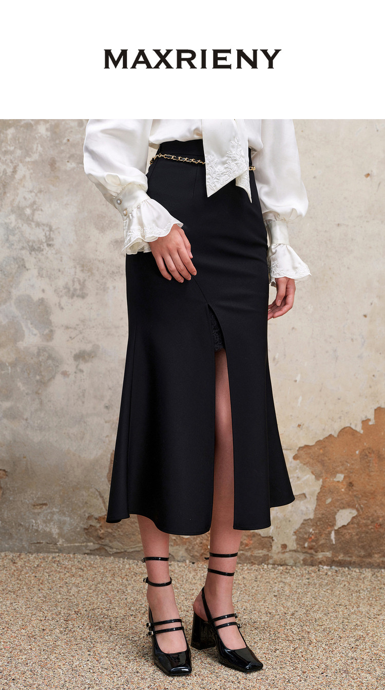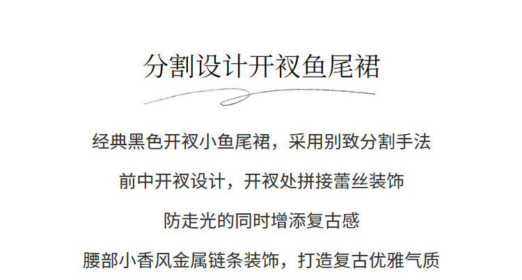 复古浪漫氛围感分割设计感开叉鱼尾半裙秋季约会小裙子MS88SK559