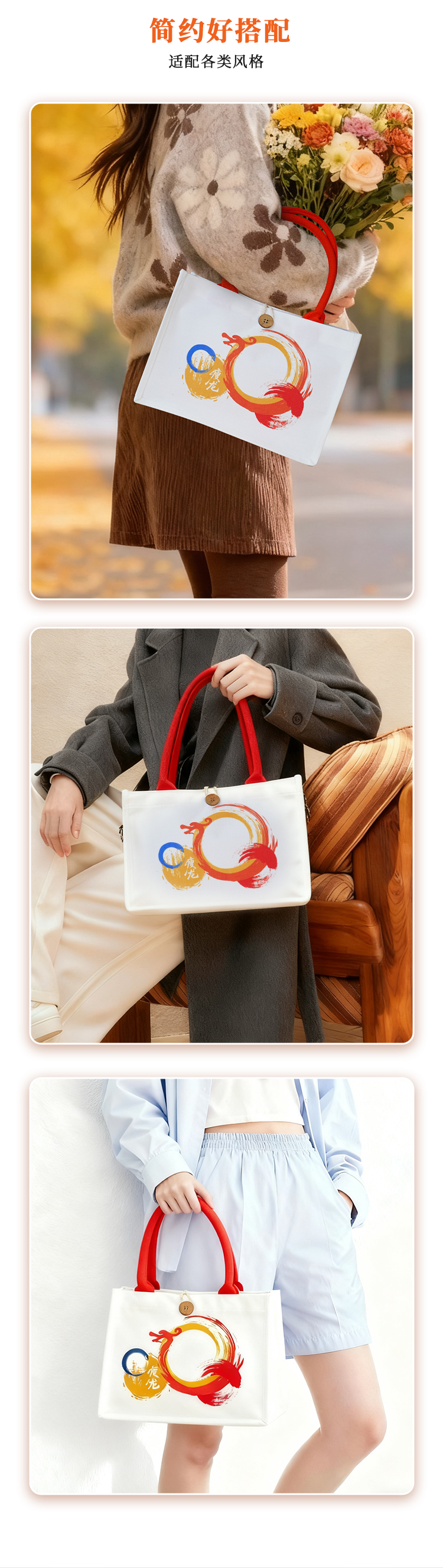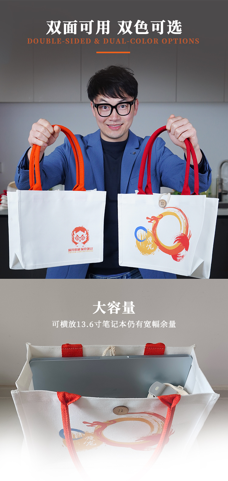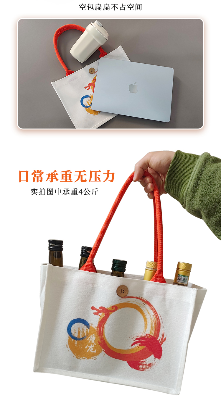 【积分兑换】瘦龙定制帆布托特包 休闲通勤大容量环保耐磨帆布包