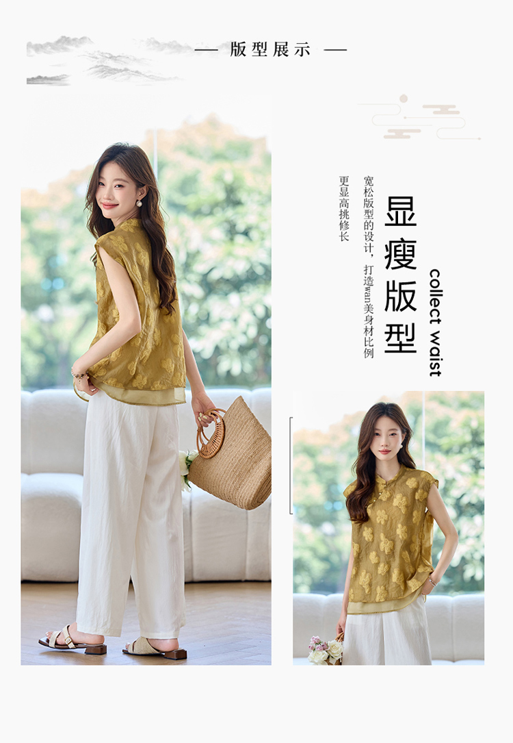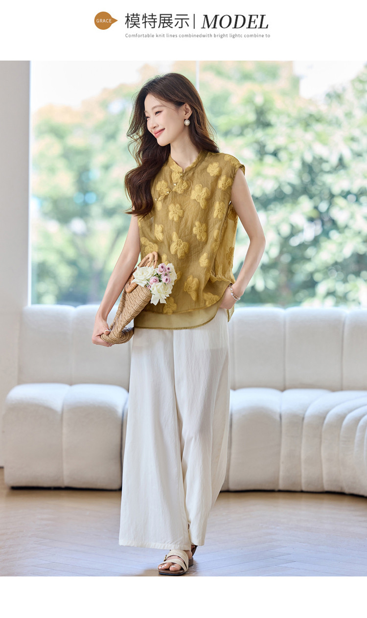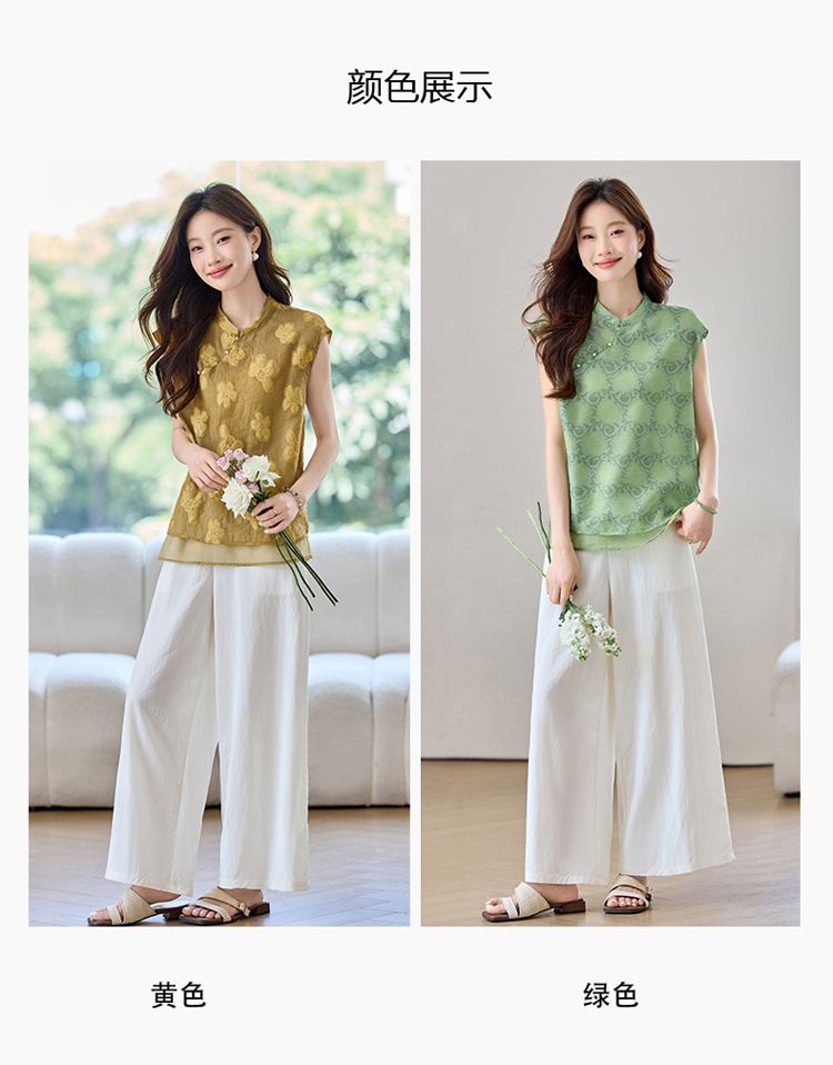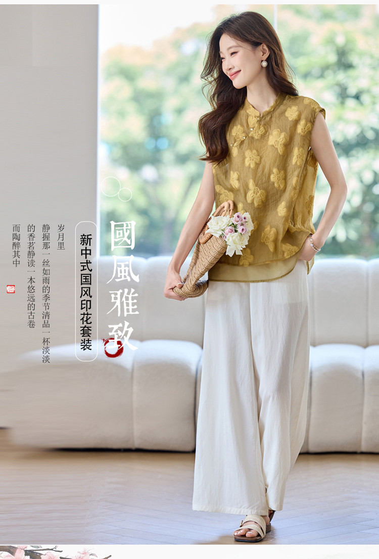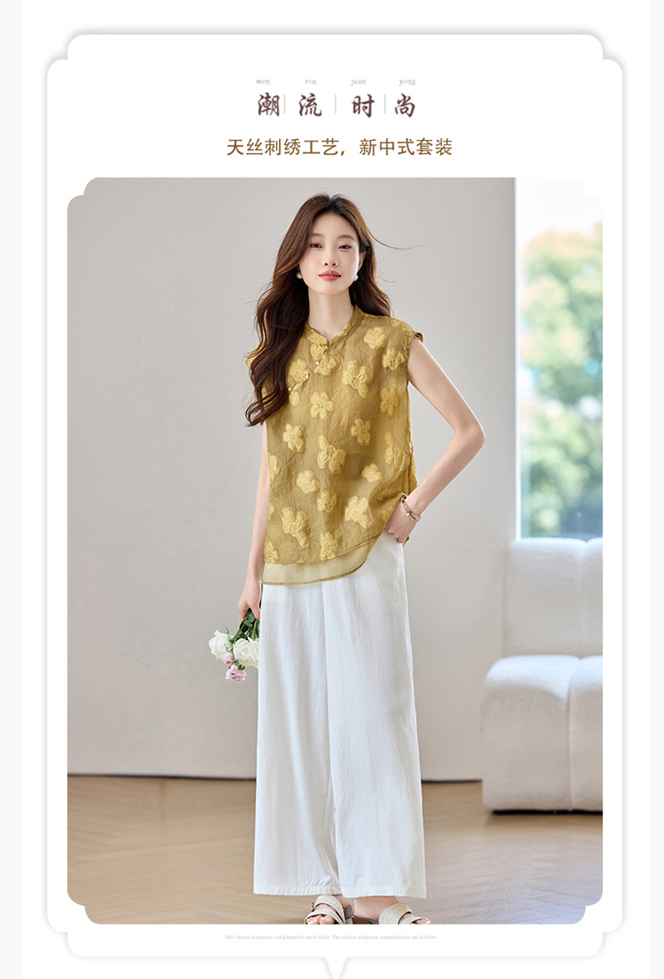 新中式民族风无袖刺绣,盘扣上衣阔腿裤两件套装HR-JYJ2579