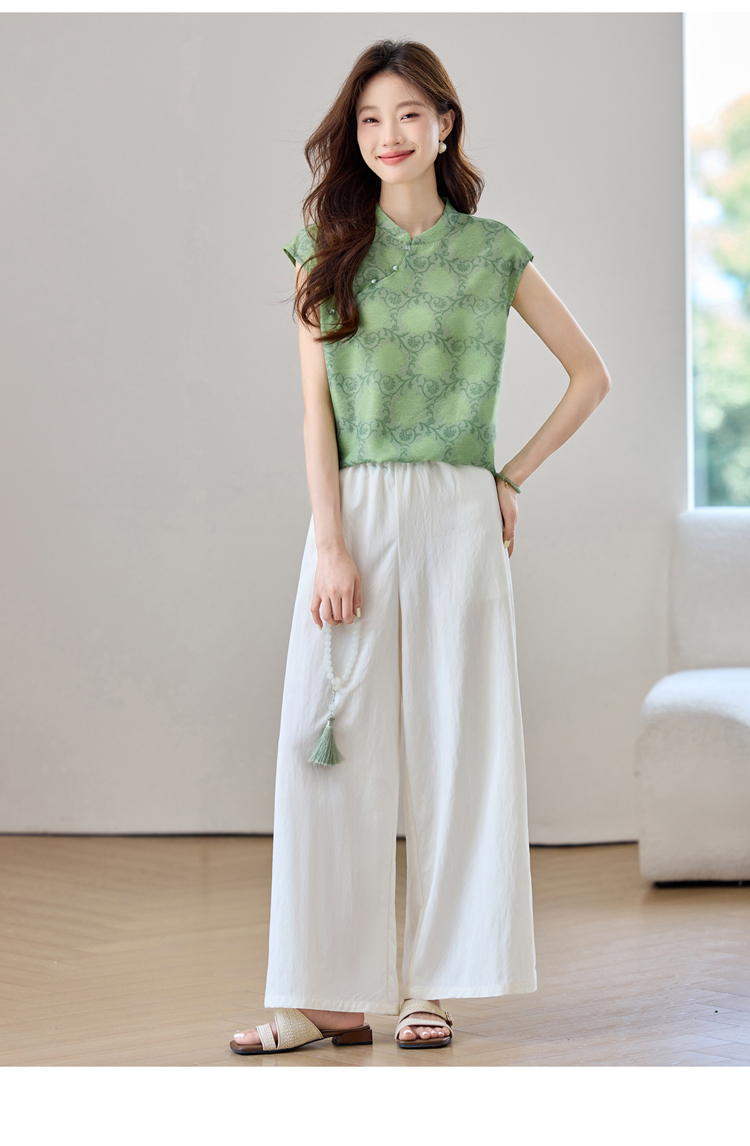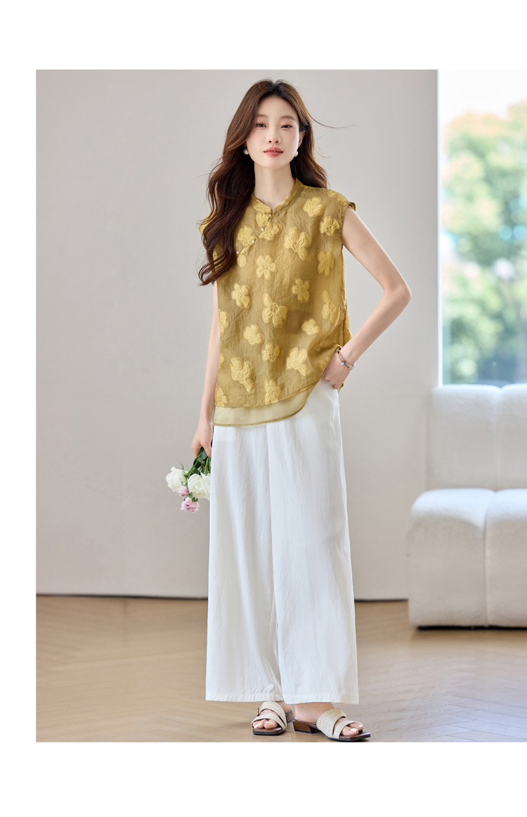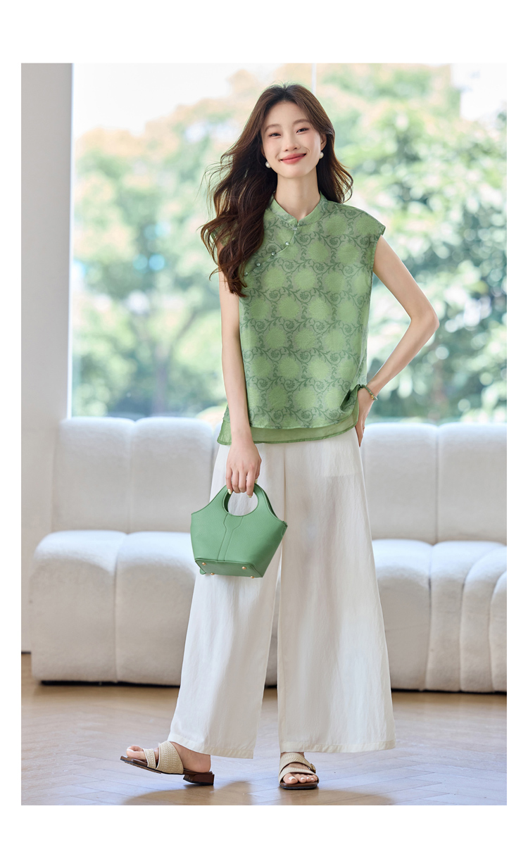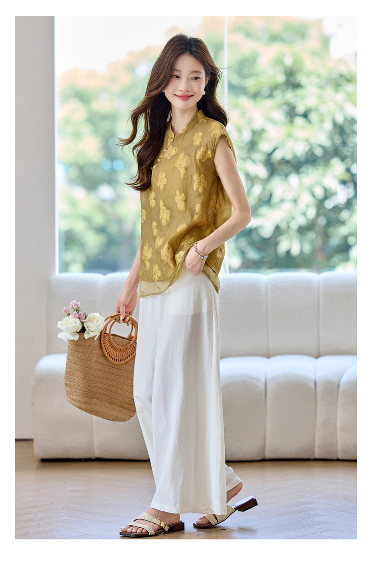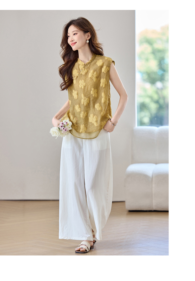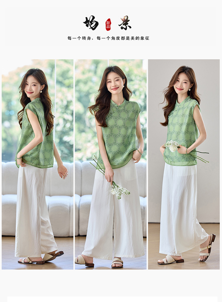 新中式民族风无袖刺绣,盘扣上衣阔腿裤两件套装HR-JYJ2579