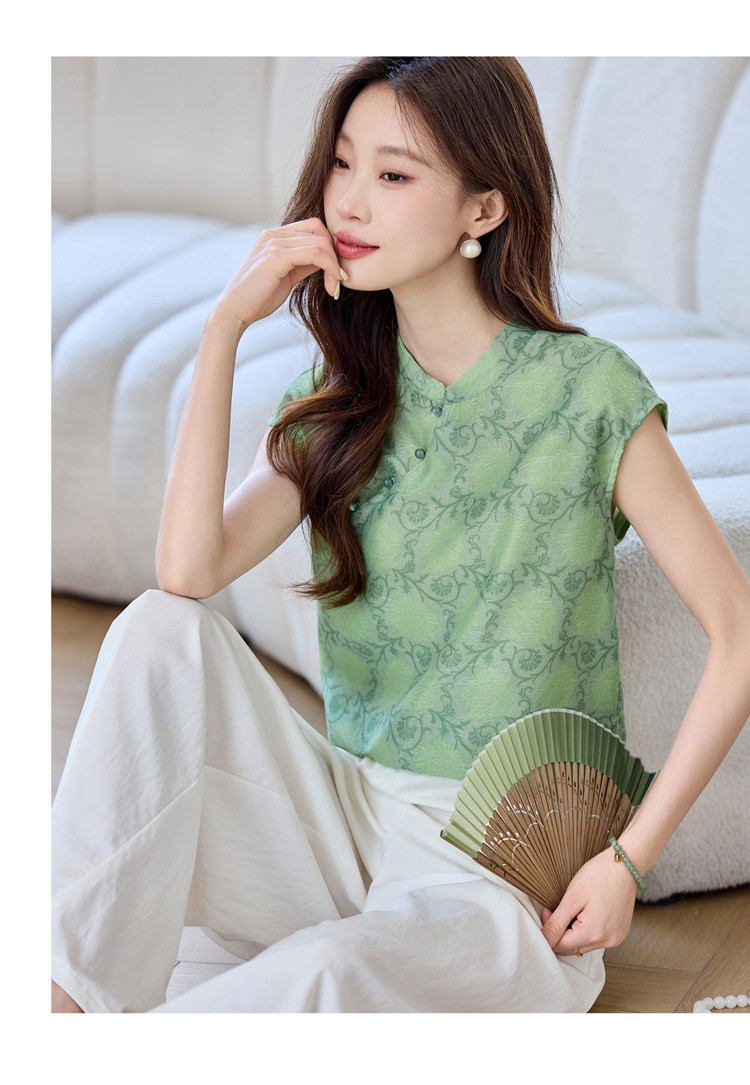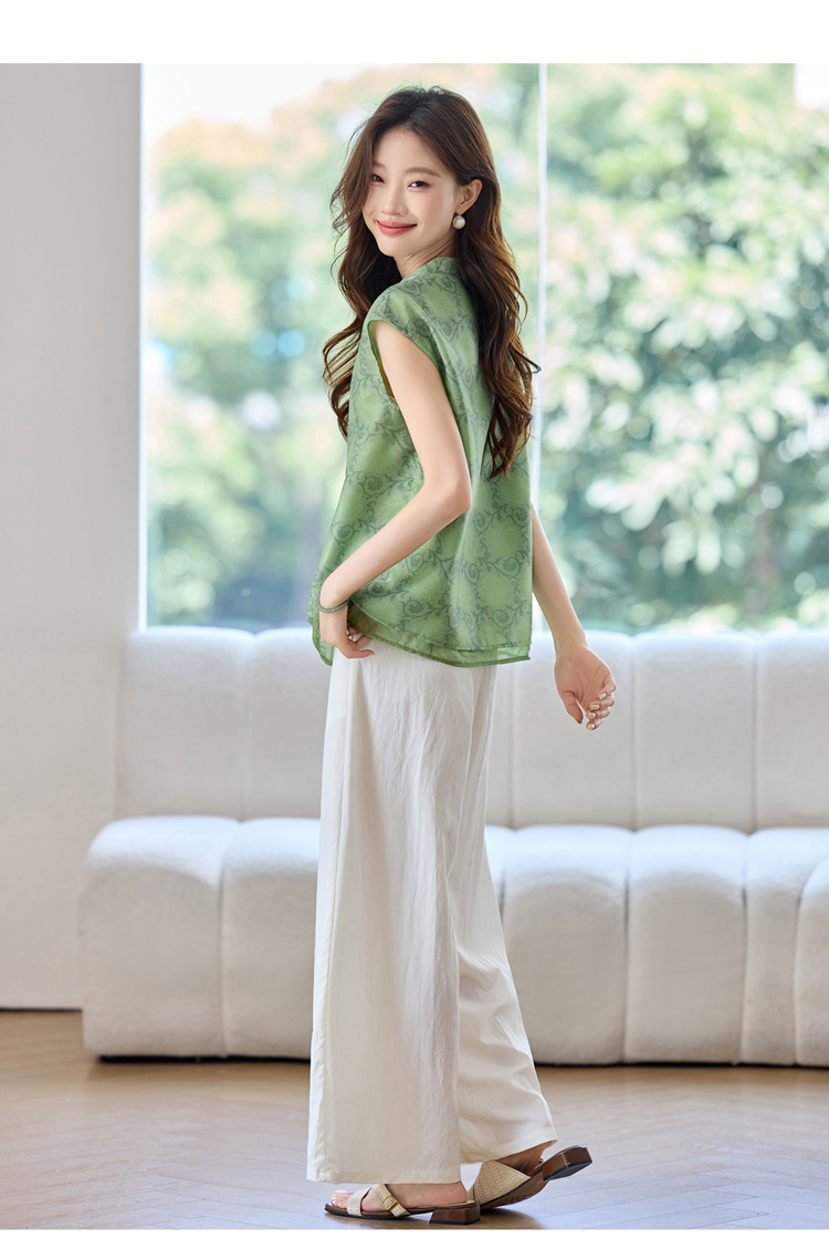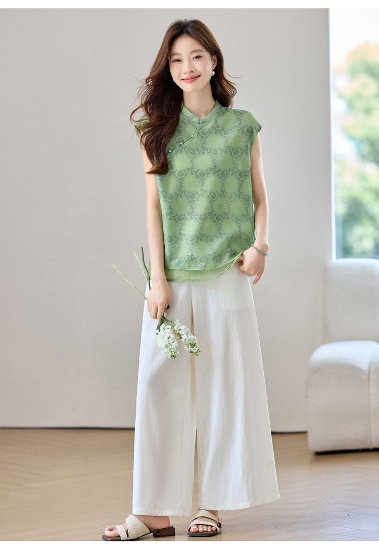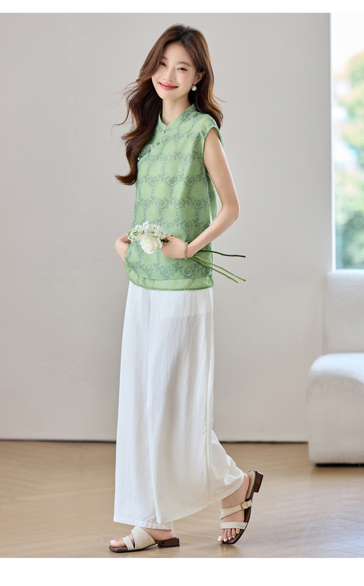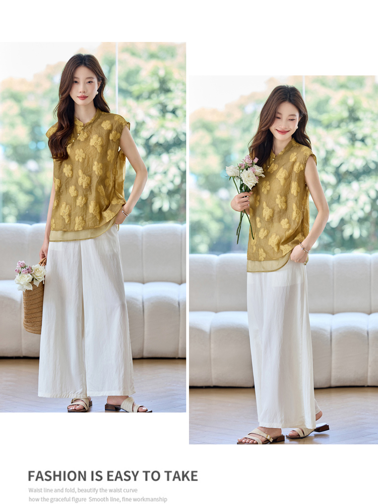 新中式民族风无袖刺绣,盘扣上衣阔腿裤两件套装HR-JYJ2579