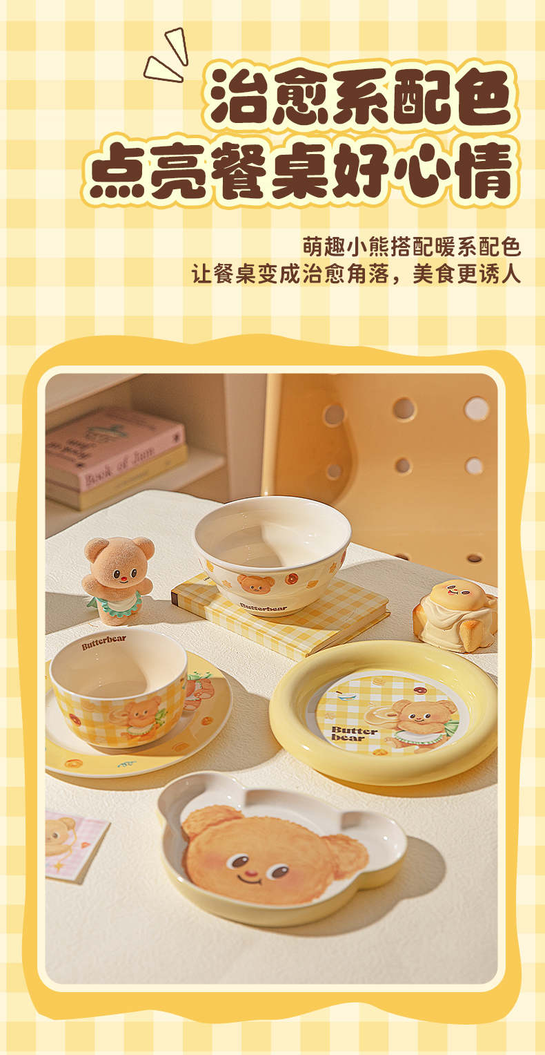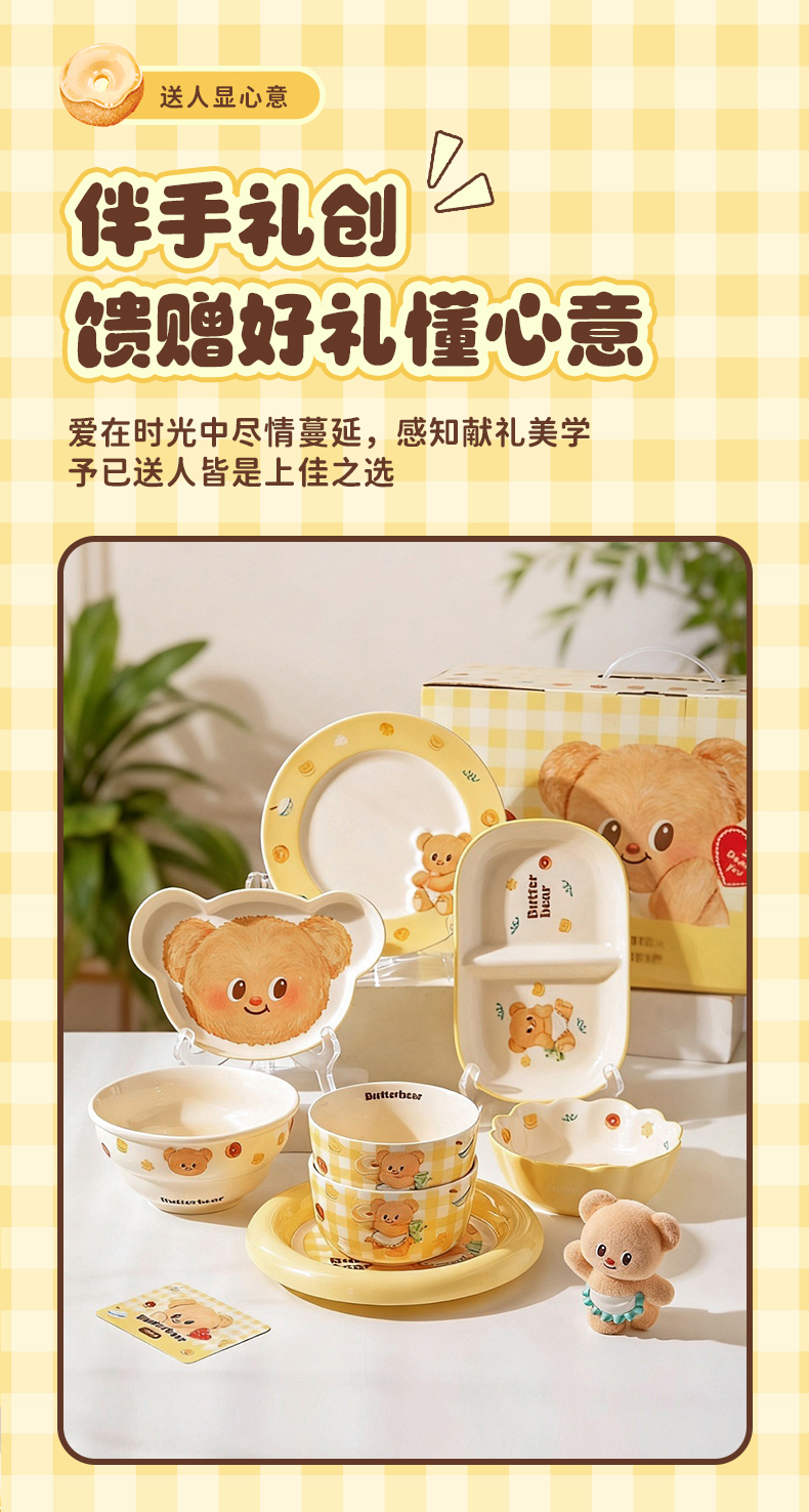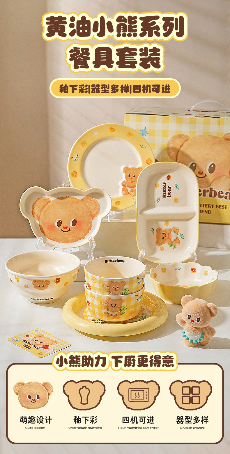 【摩登主妇&黄油小熊】釉下彩餐具泡面碗儿童碗家用碗具碗盘套裝