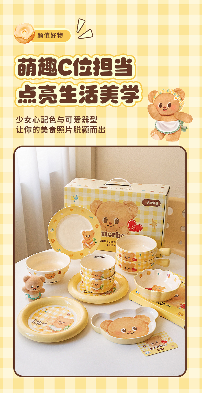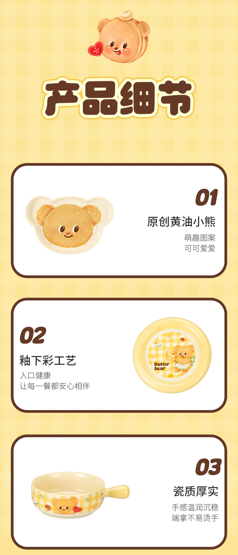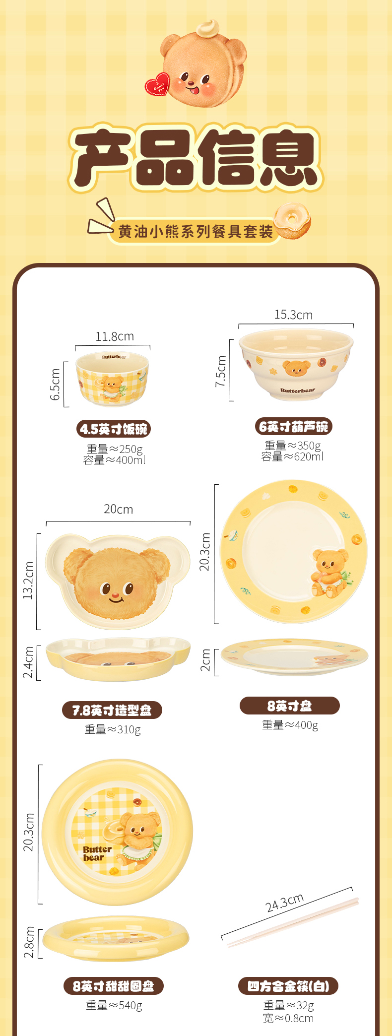 【摩登主妇&黄油小熊】釉下彩餐具泡面碗儿童碗家用碗具碗盘套裝