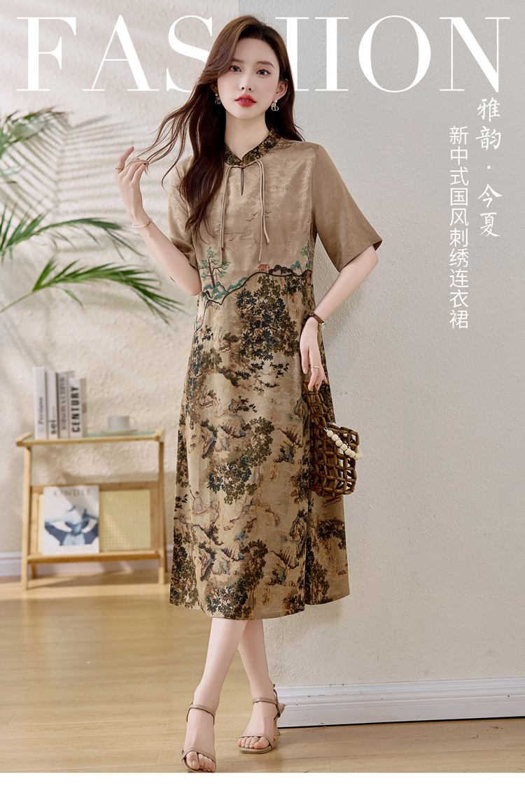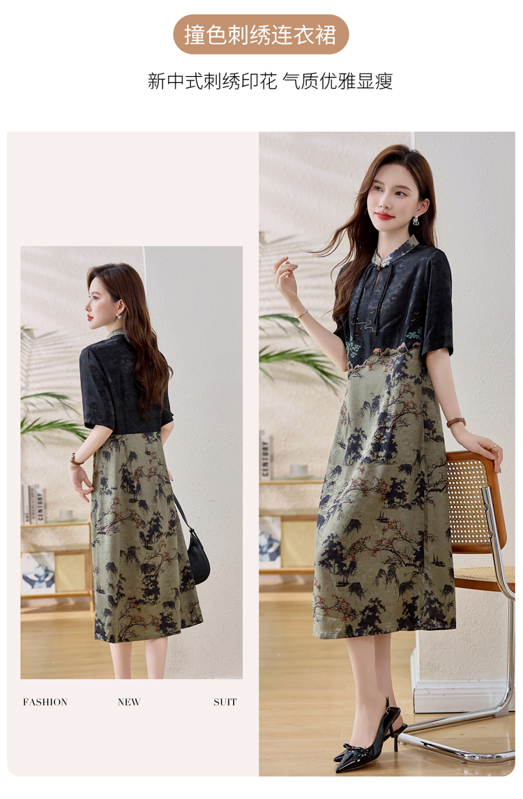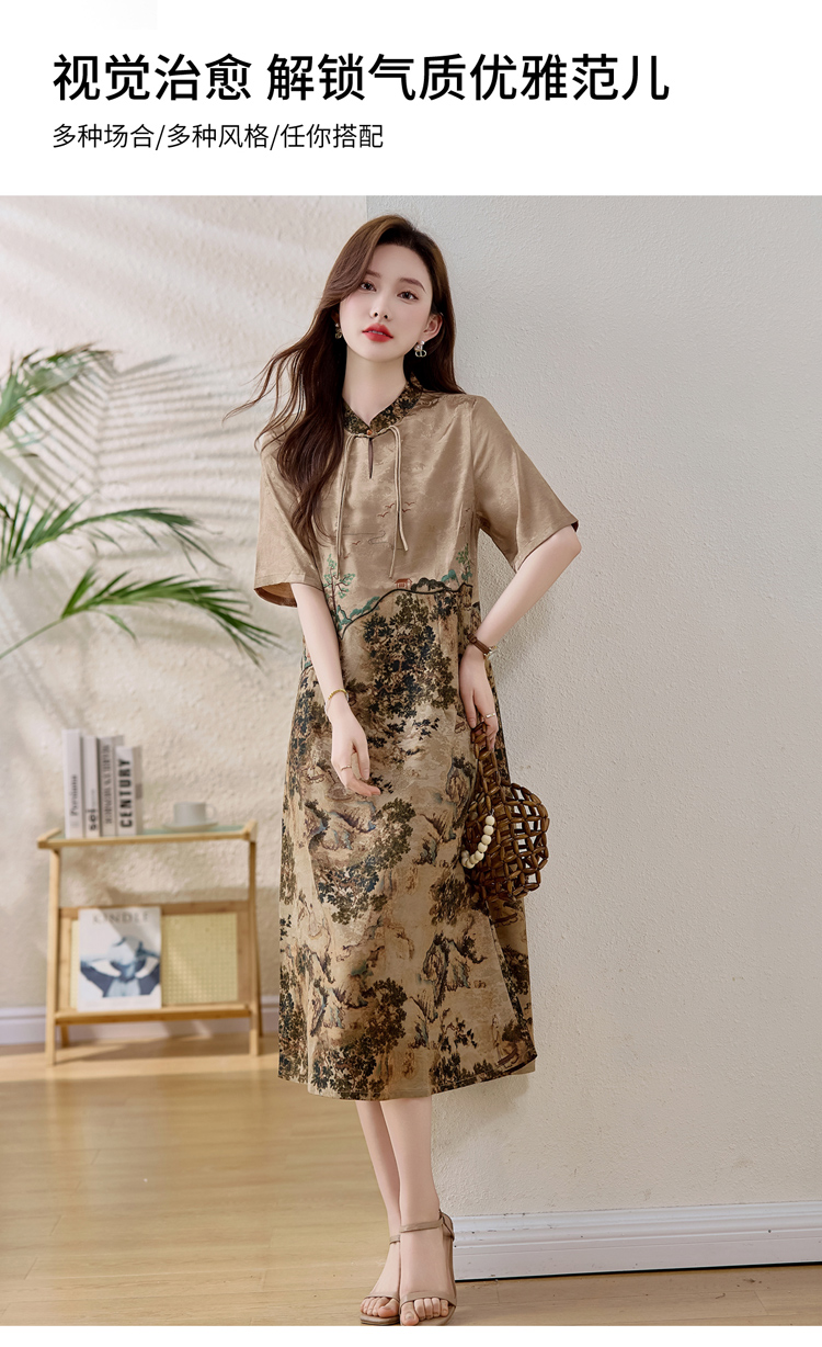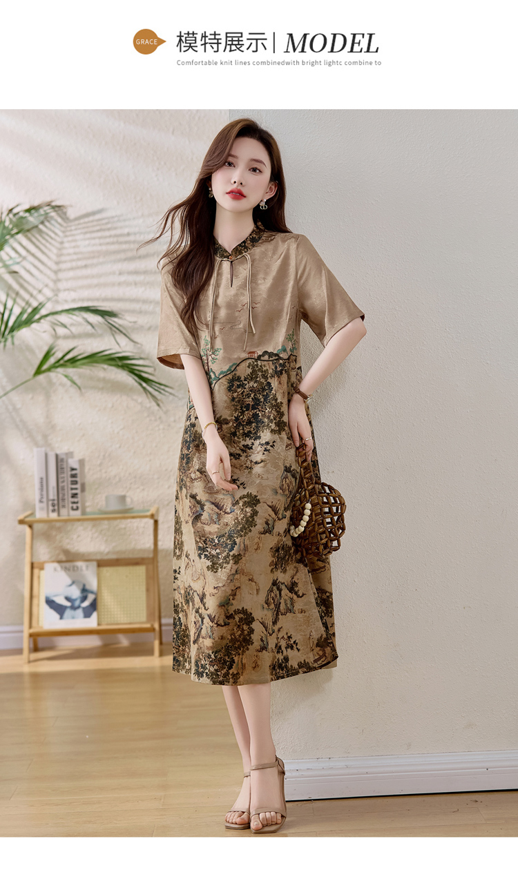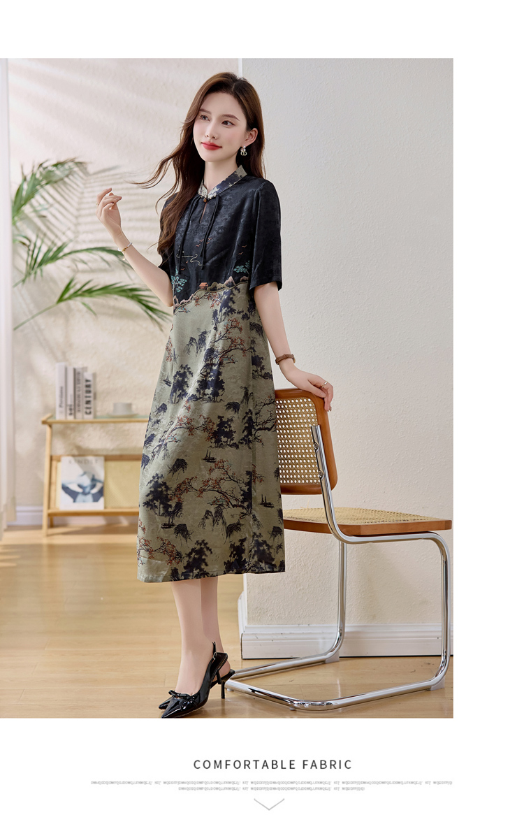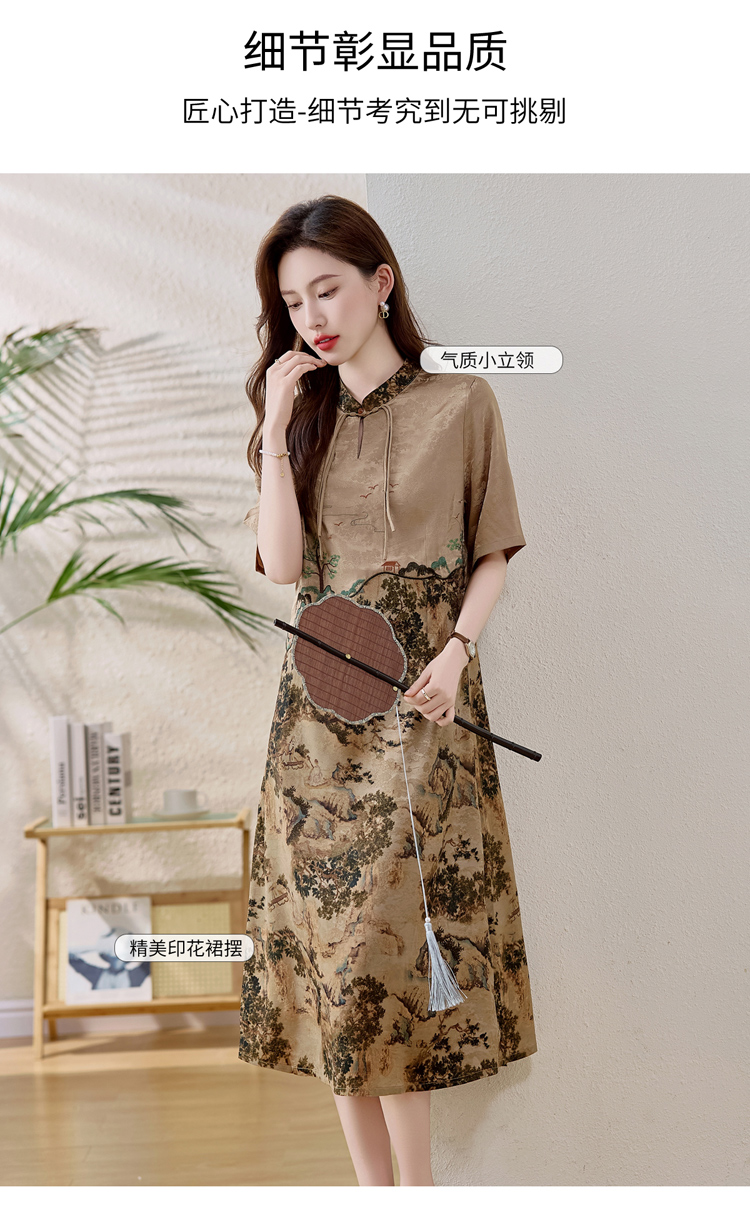 国风印花短袖,气质优雅显瘦连衣裙HR-YYG82955